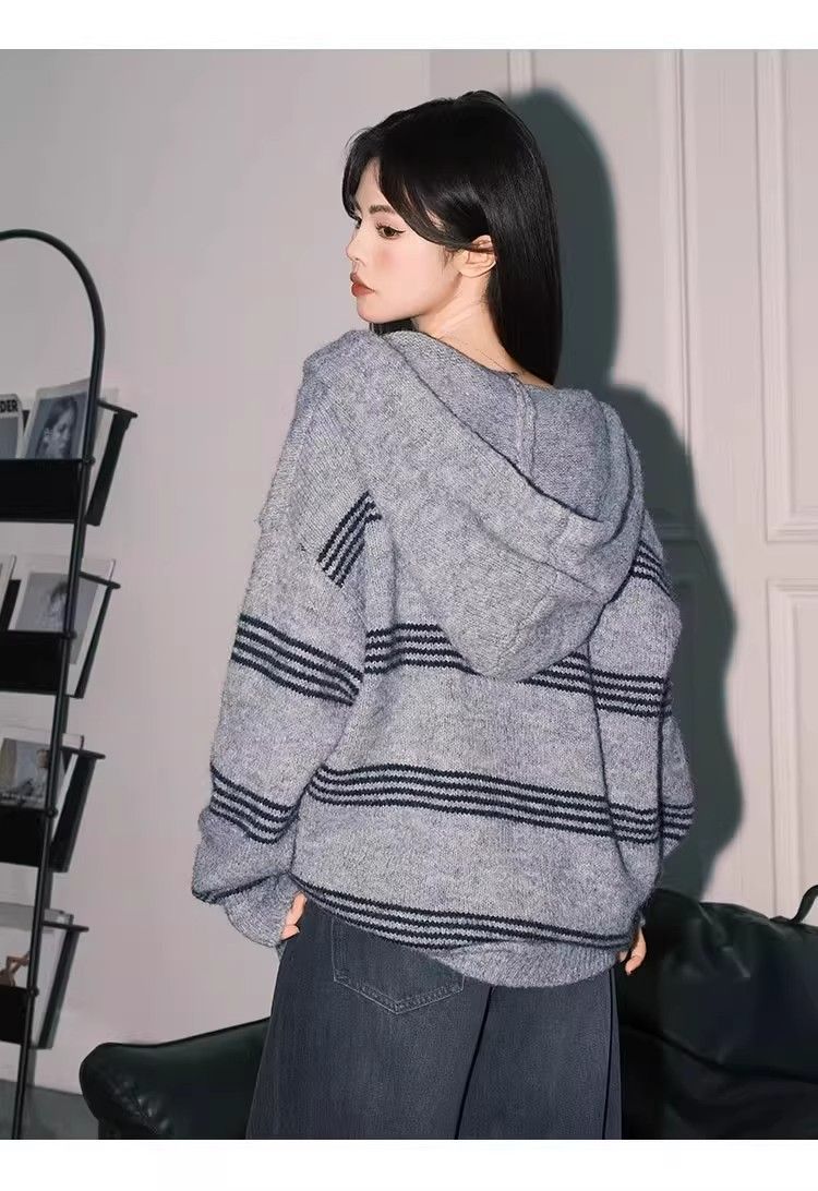 出大货 假两件半拉链撞色长袖毛衣女秋冬新款针织减龄宽松上衣