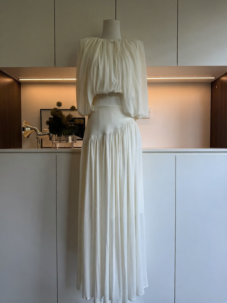 kubiliv心动缪斯设计感压褶斗篷无袖上衣高腰百褶伞裙两件套