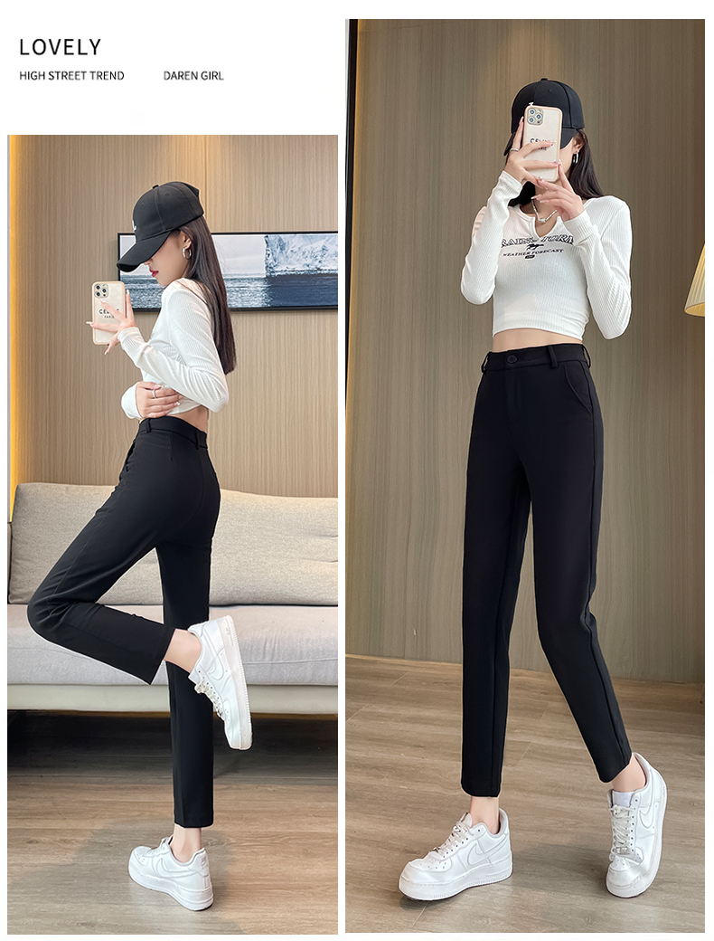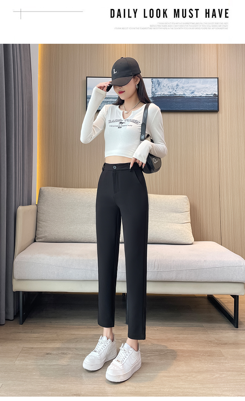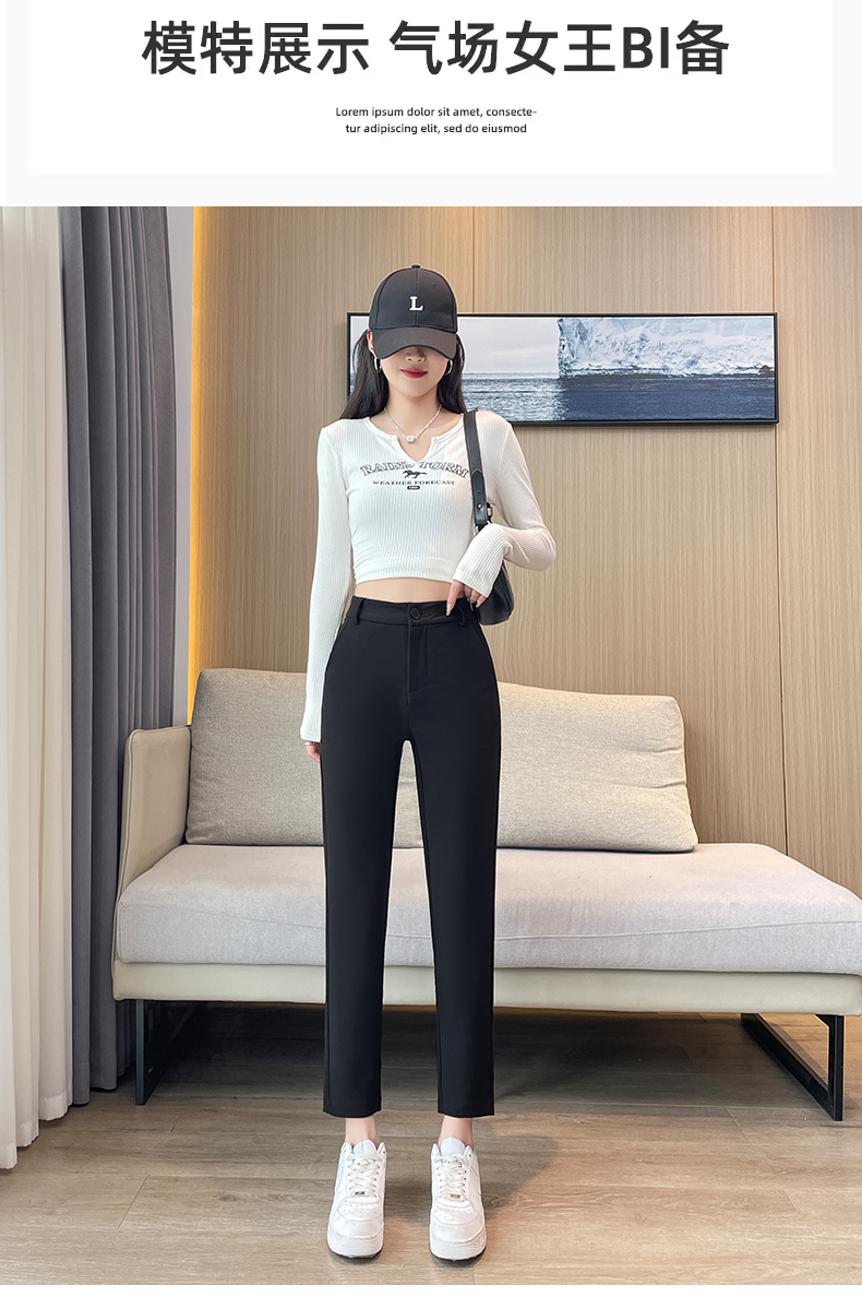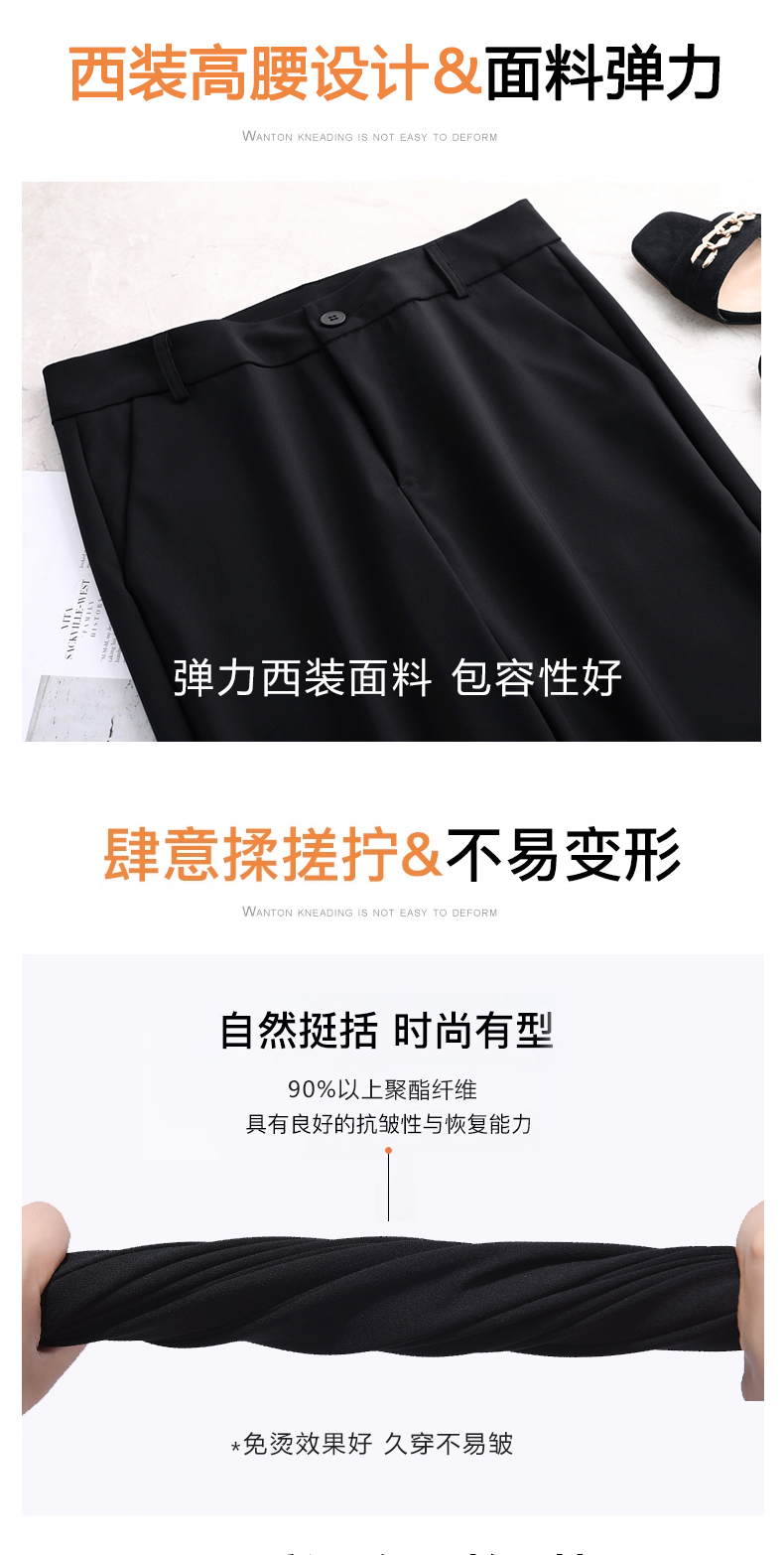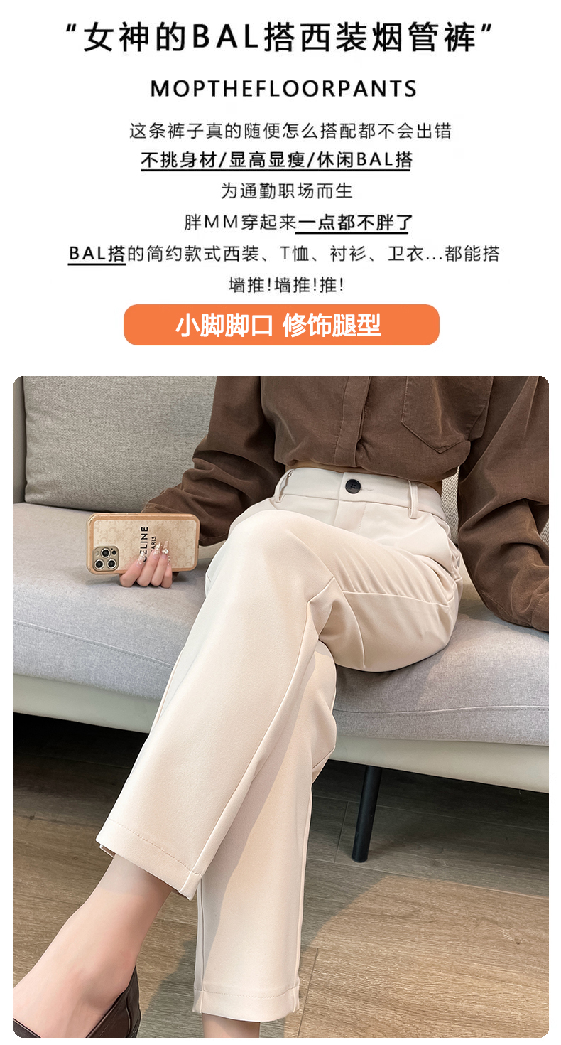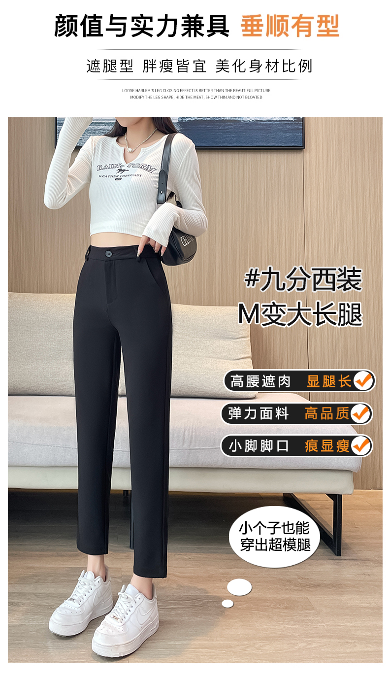 实拍#春夏新款直筒小西装裤女黑色大码高腰小个子弹力九分烟管裤