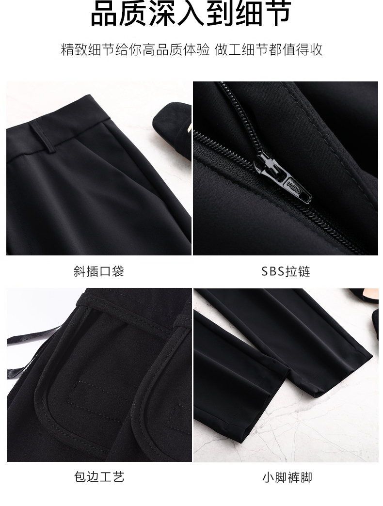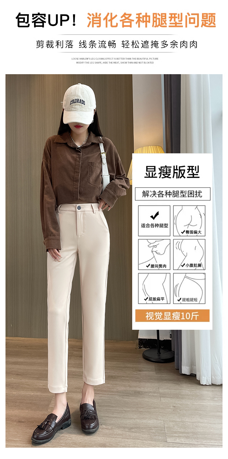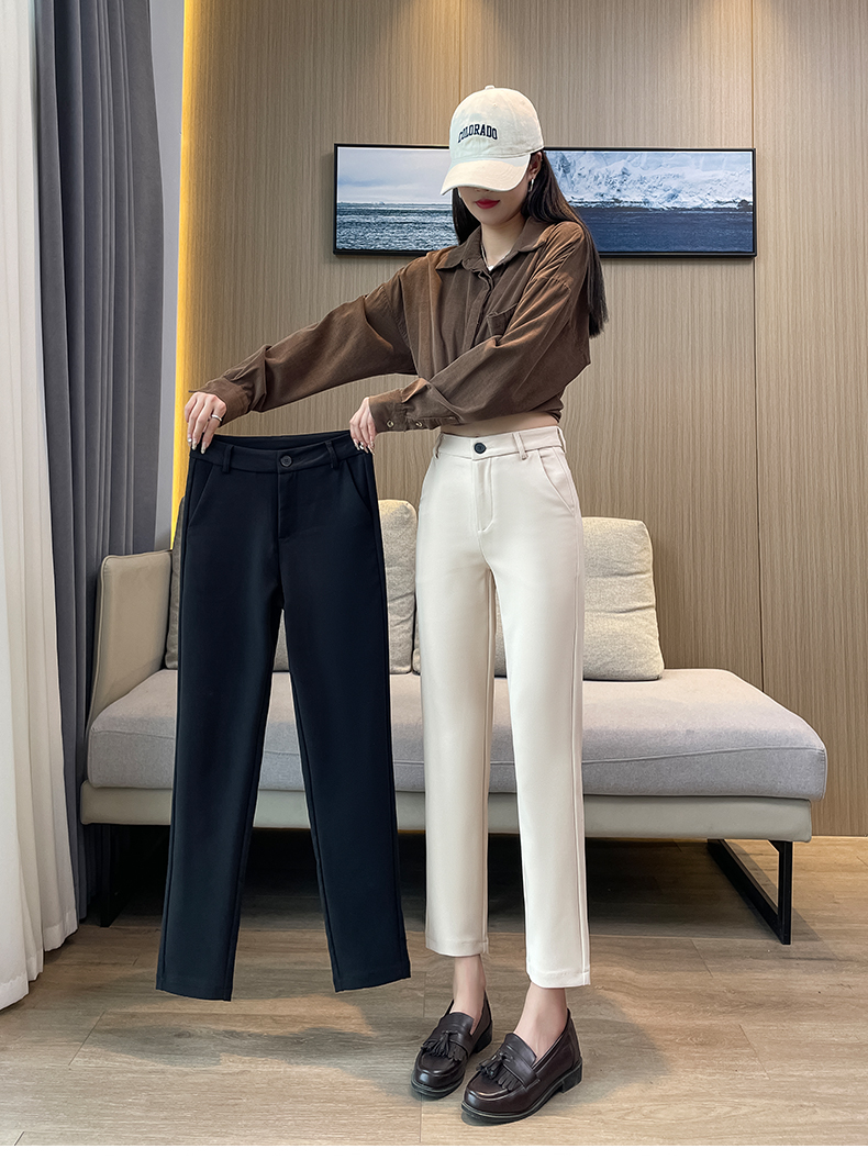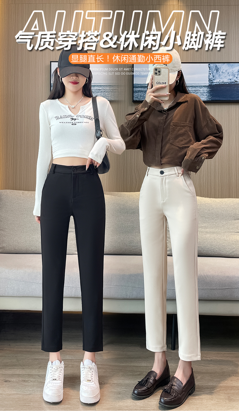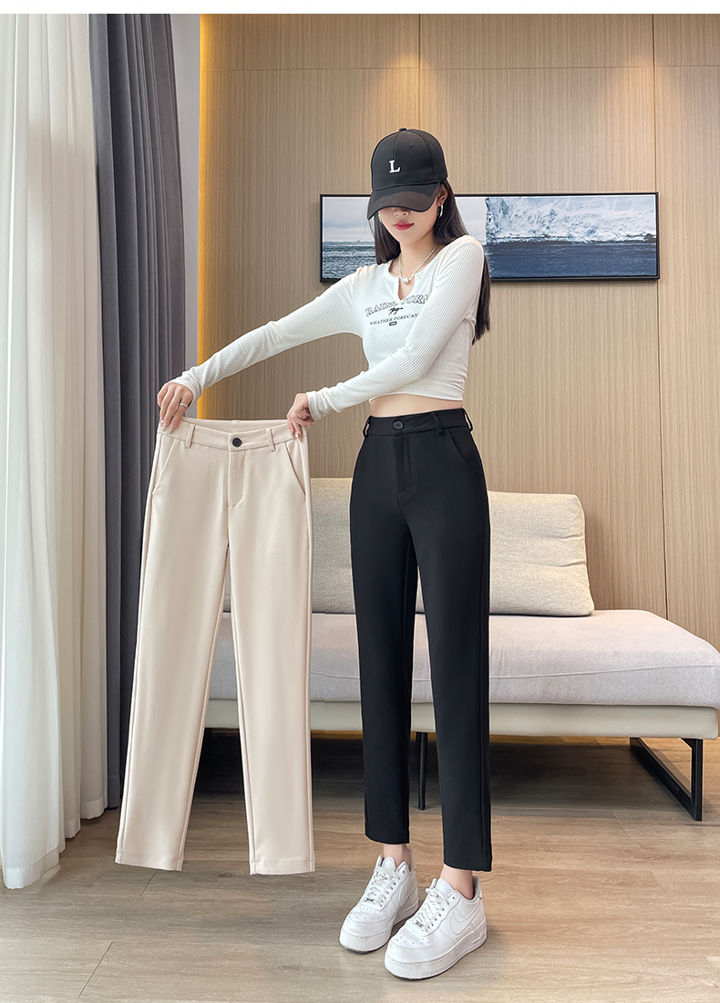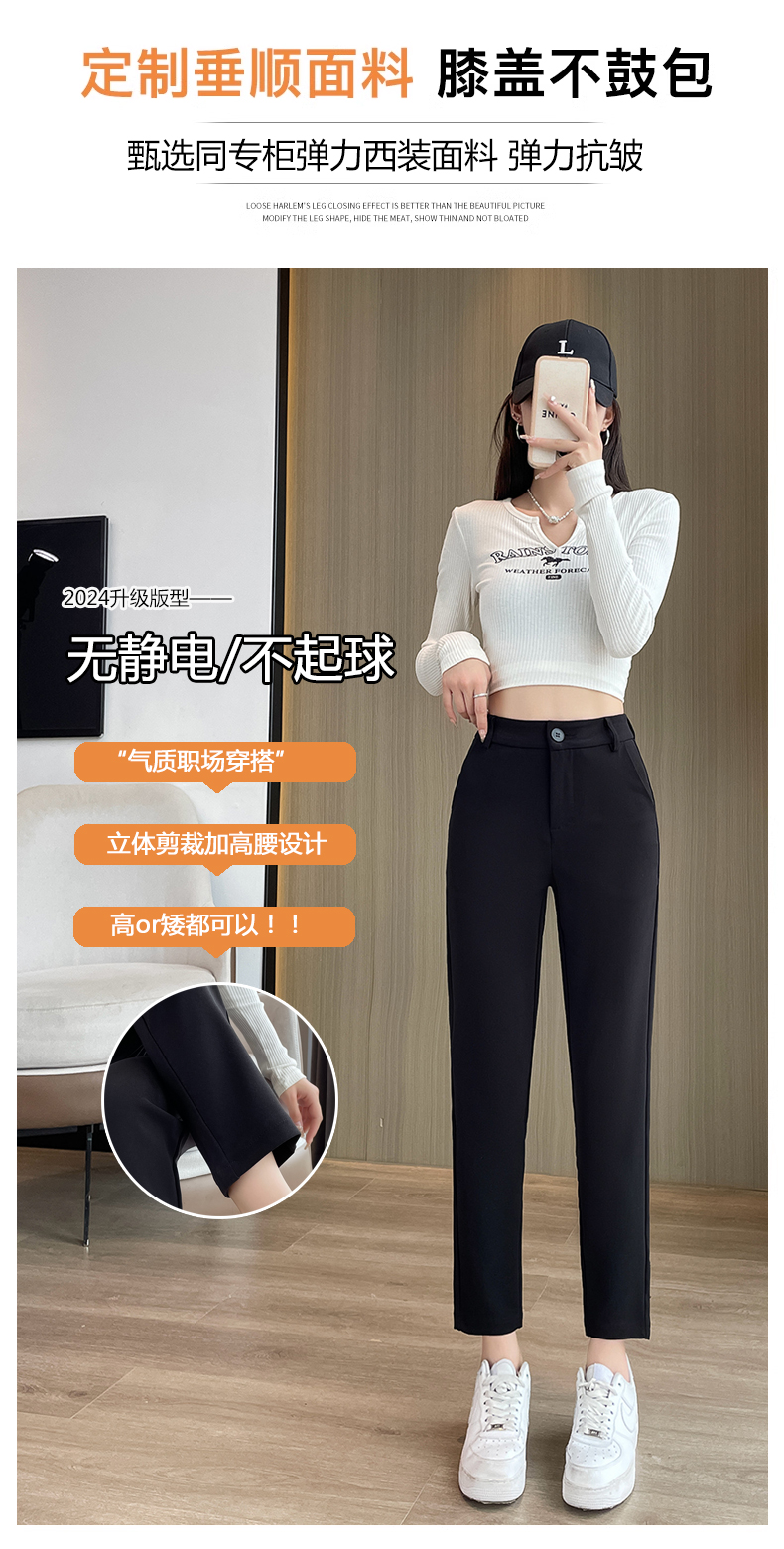 实拍#春夏新款直筒小西装裤女黑色大码高腰小个子弹力九分烟管裤