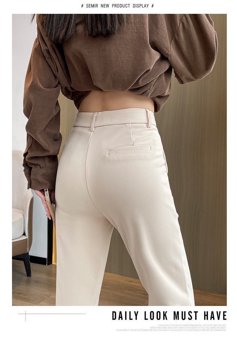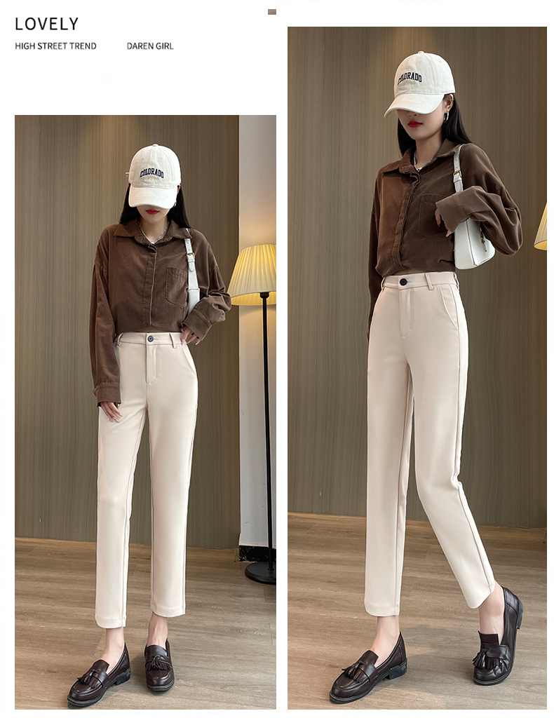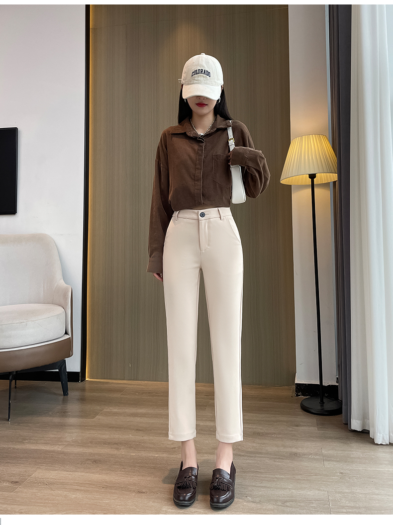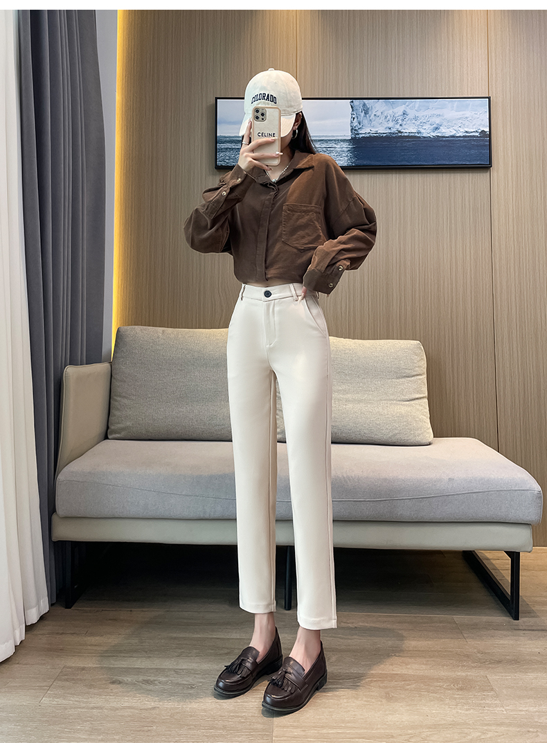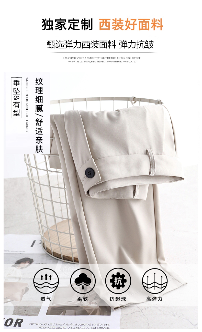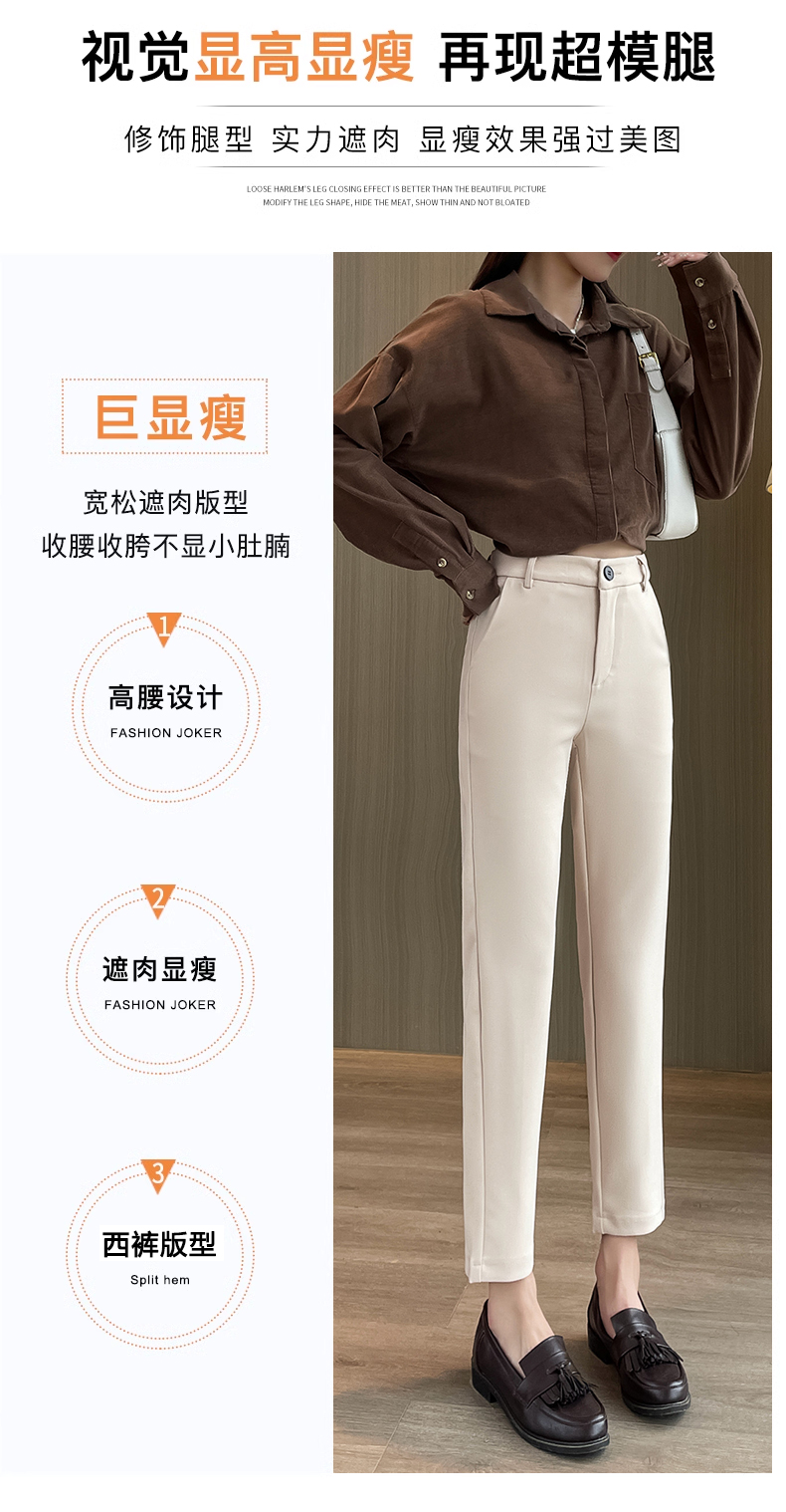 实拍#春夏新款直筒小西装裤女黑色大码高腰小个子弹力九分烟管裤