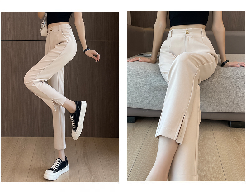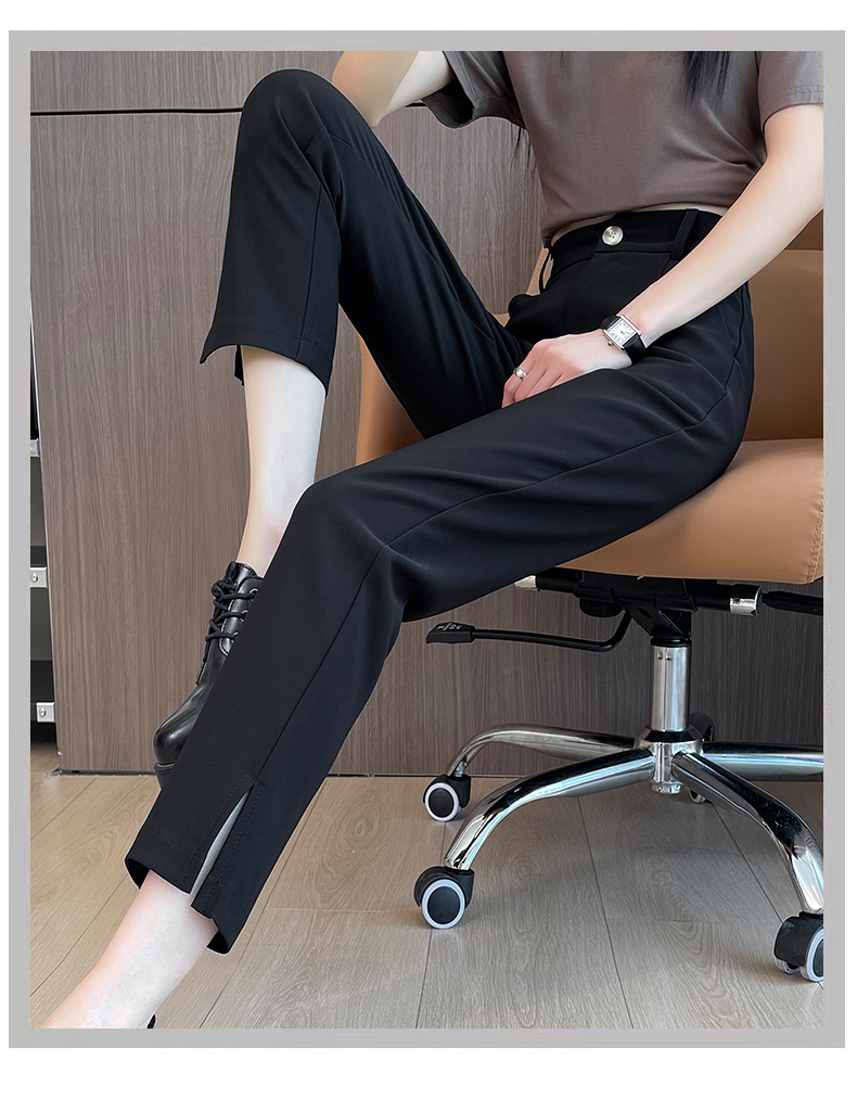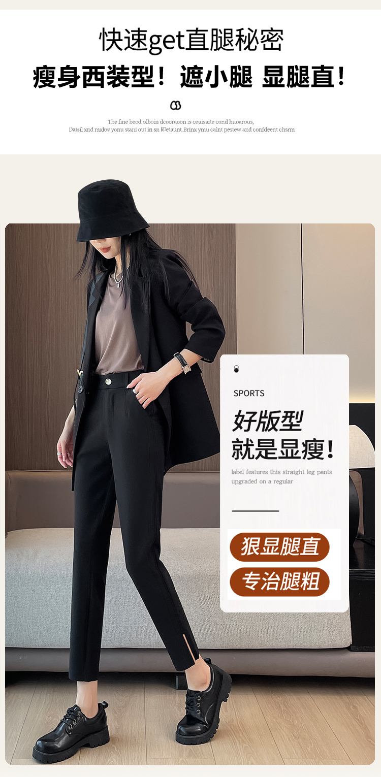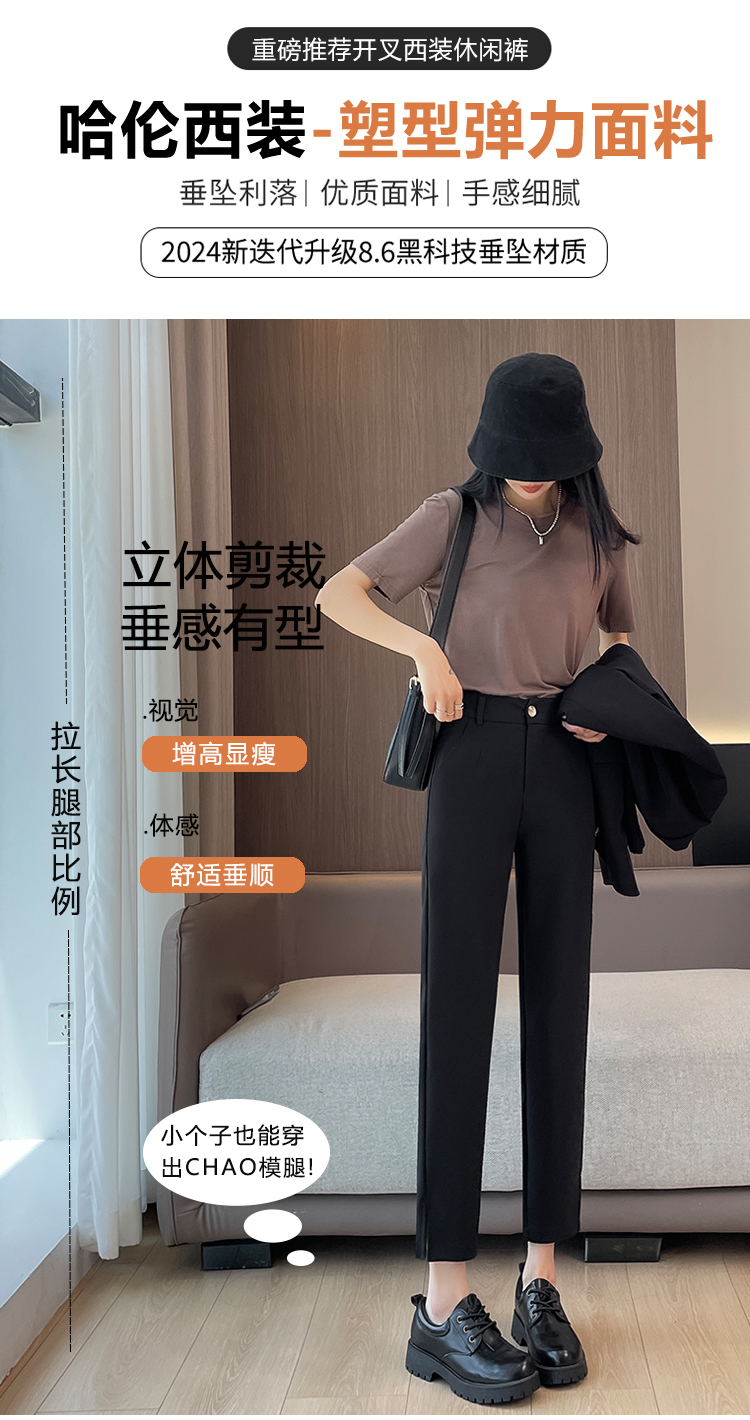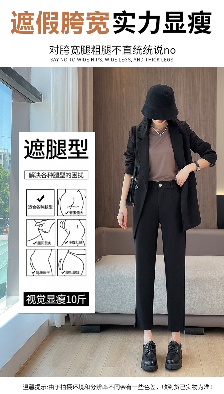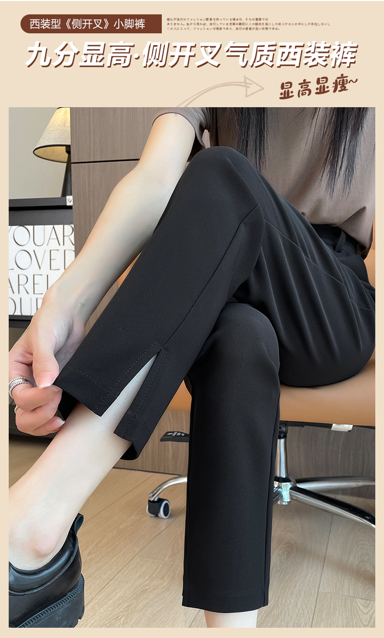 实拍#早秋春款黑色小脚开叉西装裤女小个子九分裤直筒烟管休闲裤