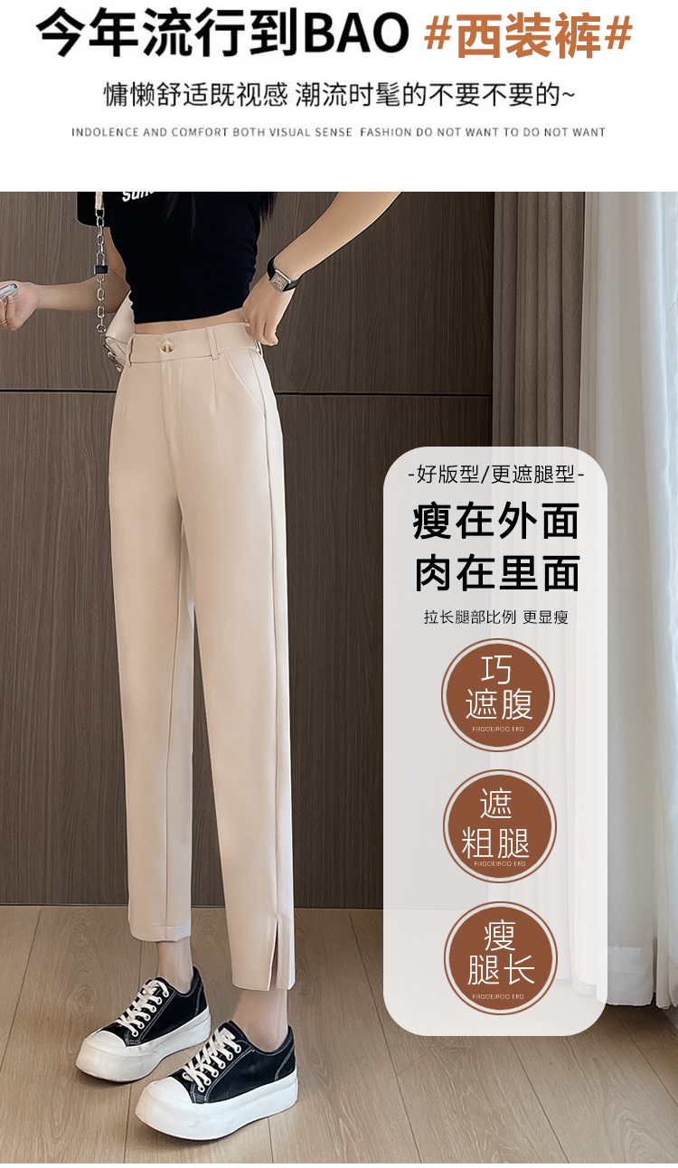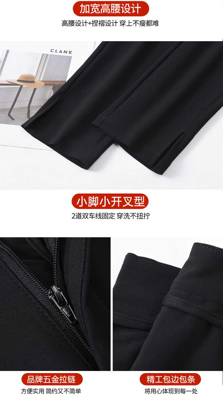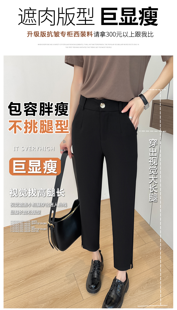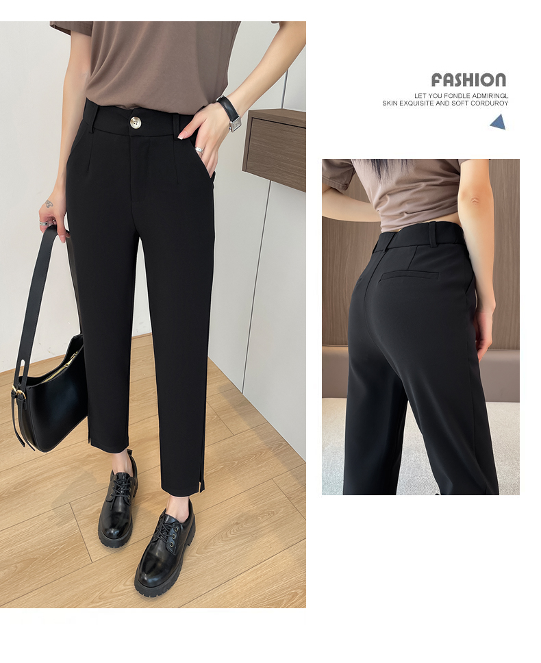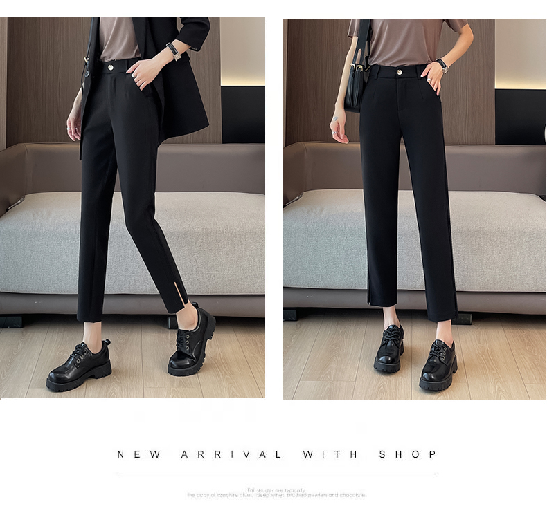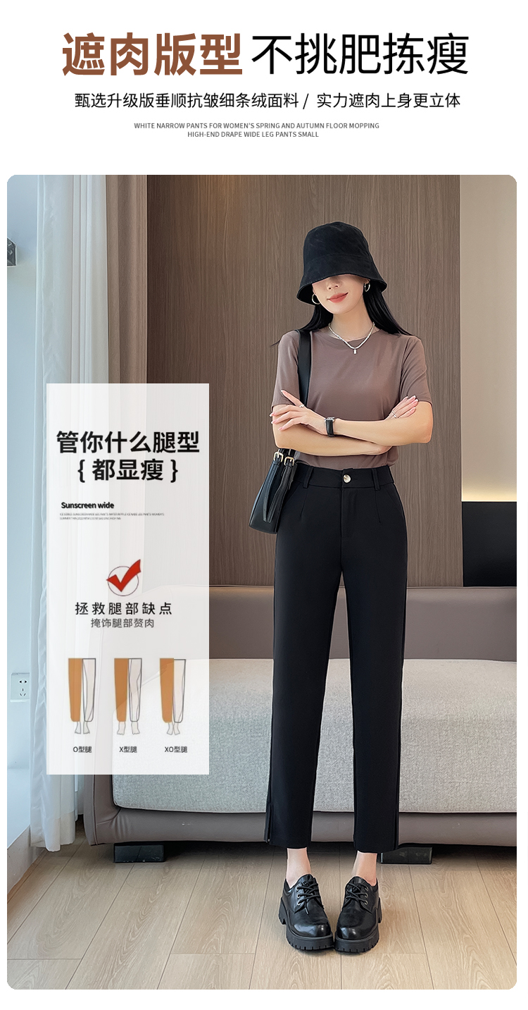 实拍#早秋春款黑色小脚开叉西装裤女小个子九分裤直筒烟管休闲裤