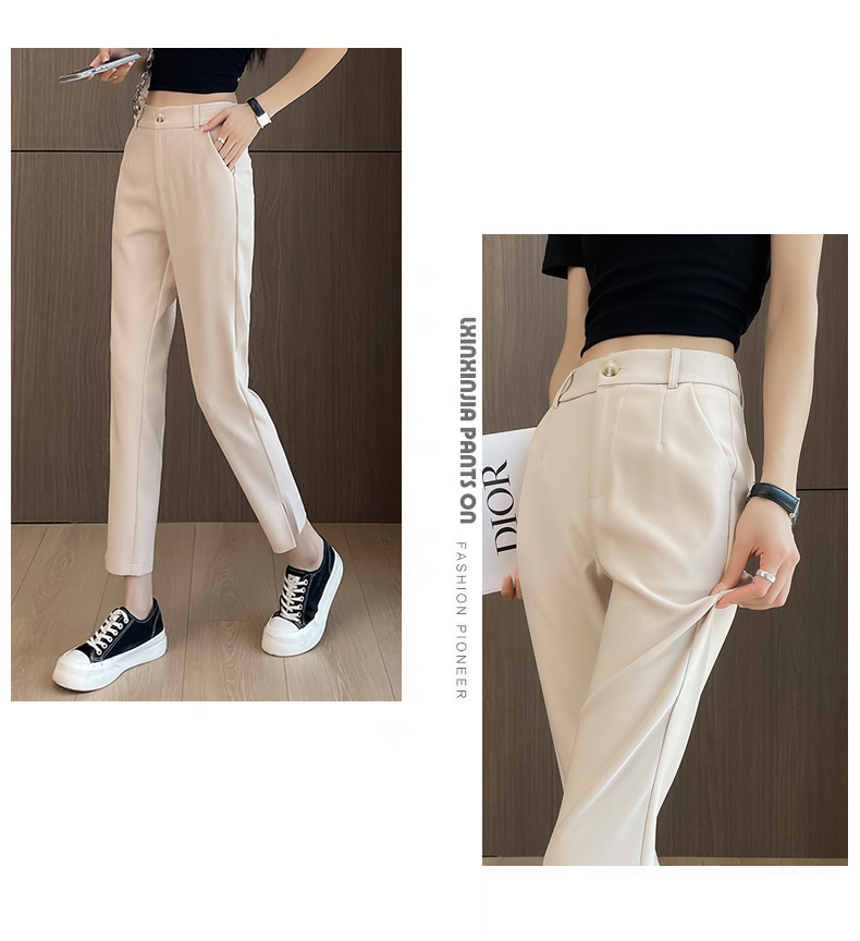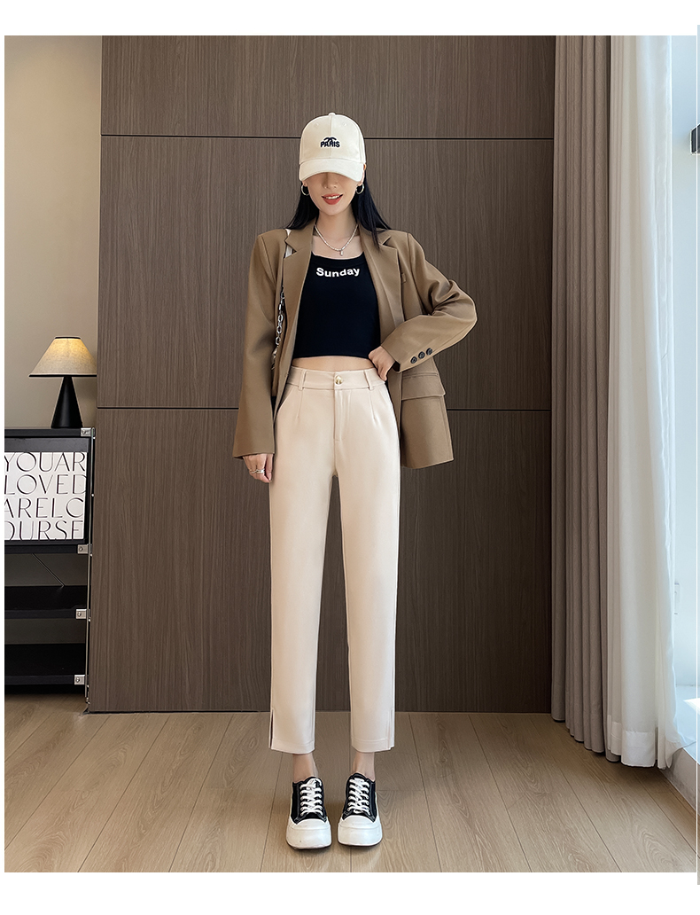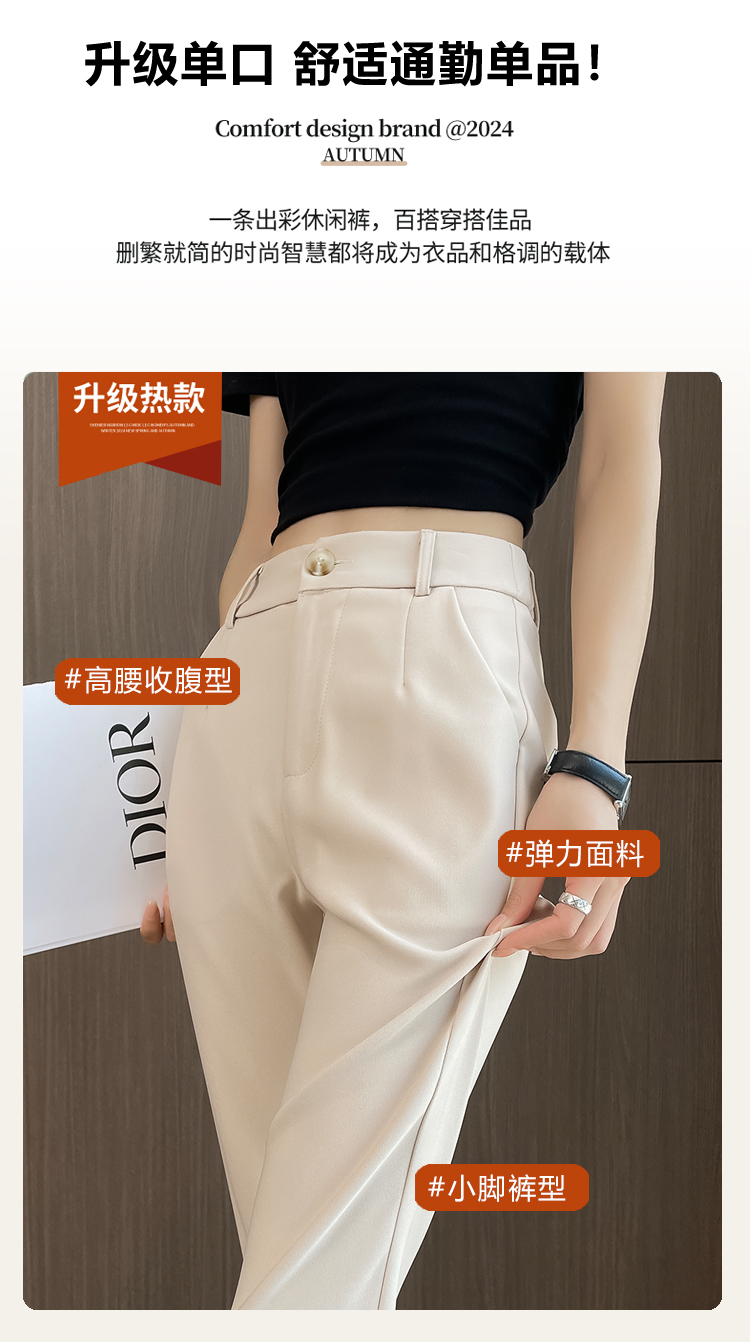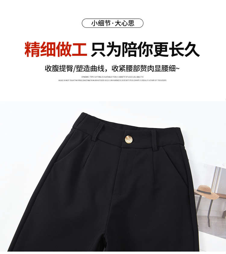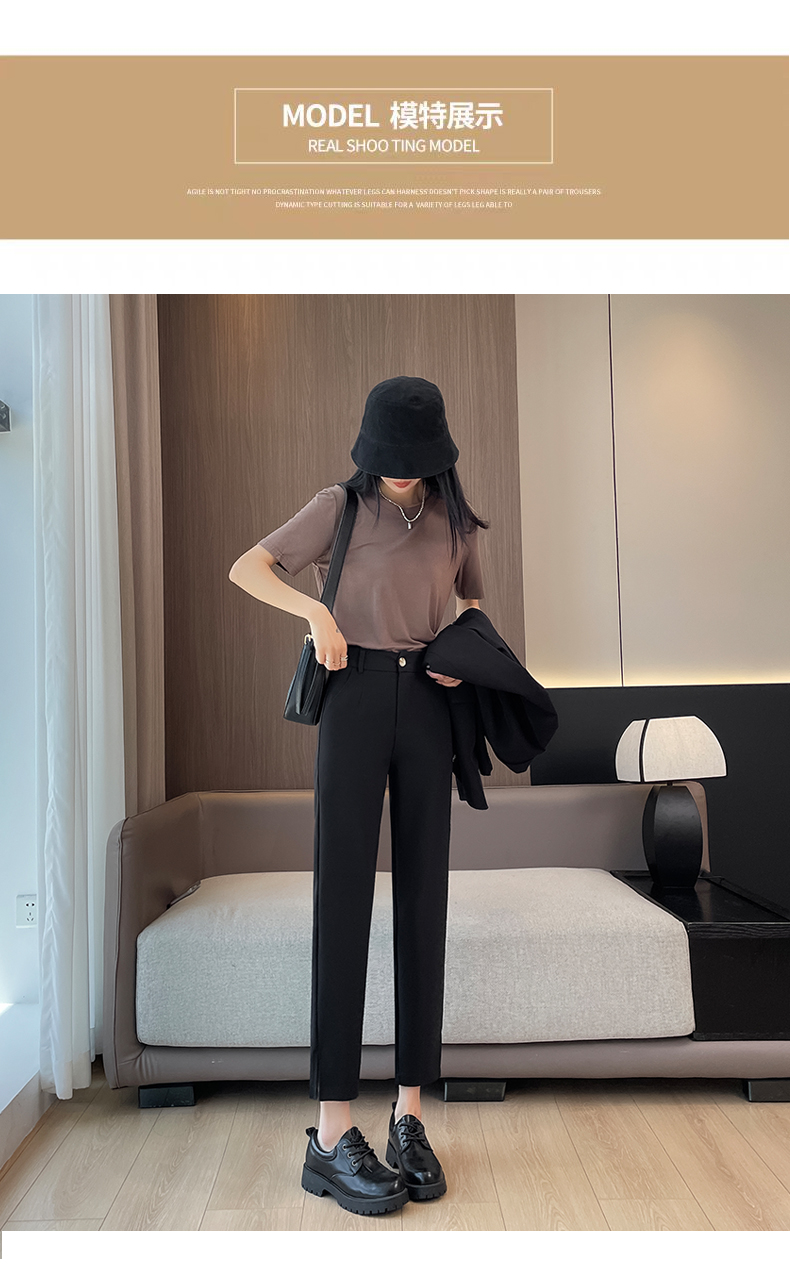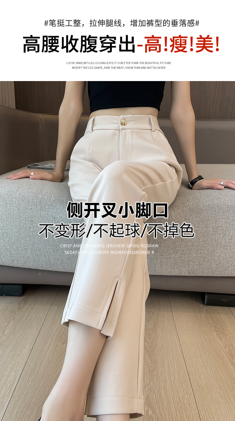 实拍#早秋春款黑色小脚开叉西装裤女小个子九分裤直筒烟管休闲裤