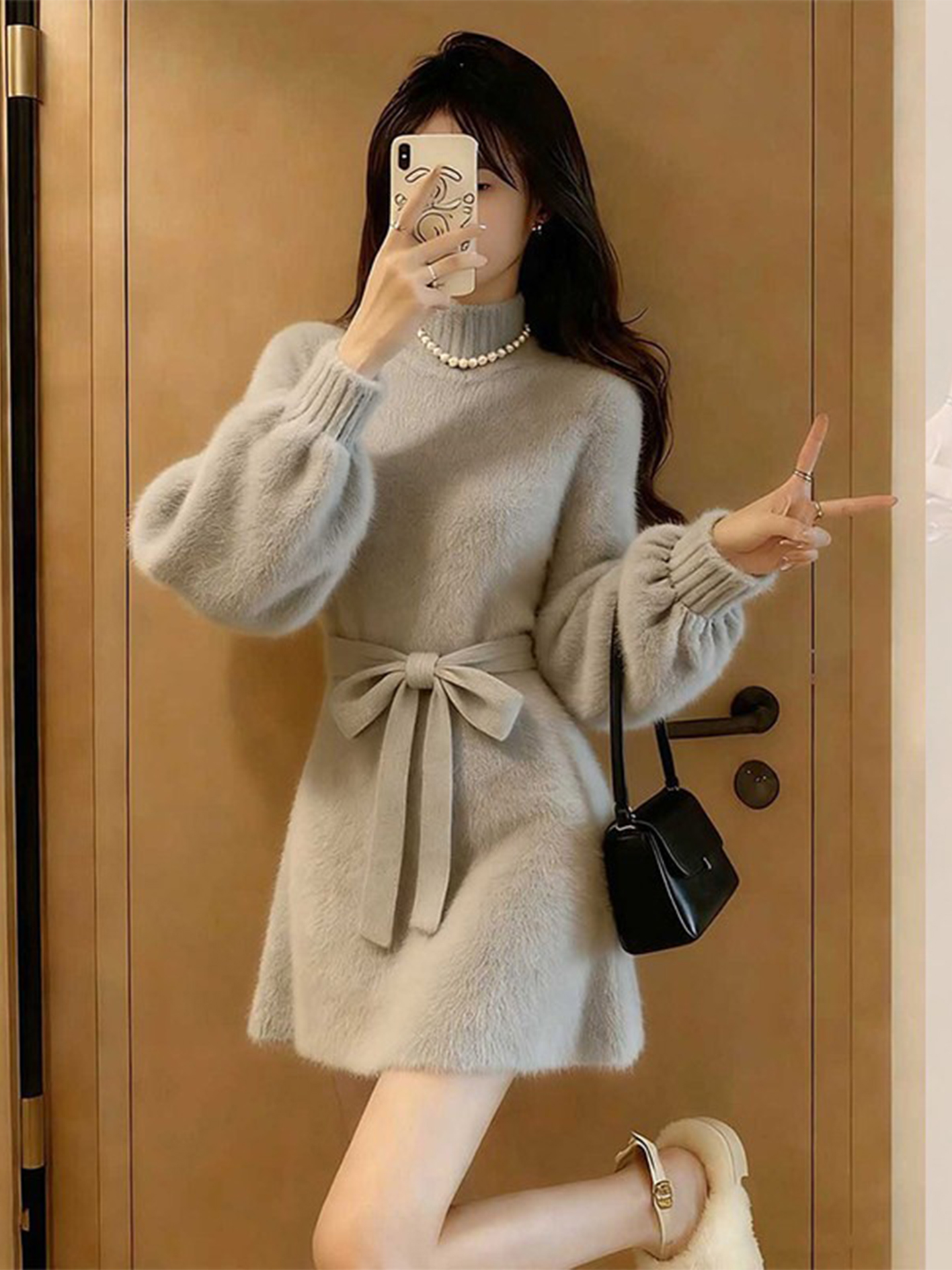 小个子香风灰色毛衣针织连衣裙子女秋冬季2026新款巨好看收腰短裙
