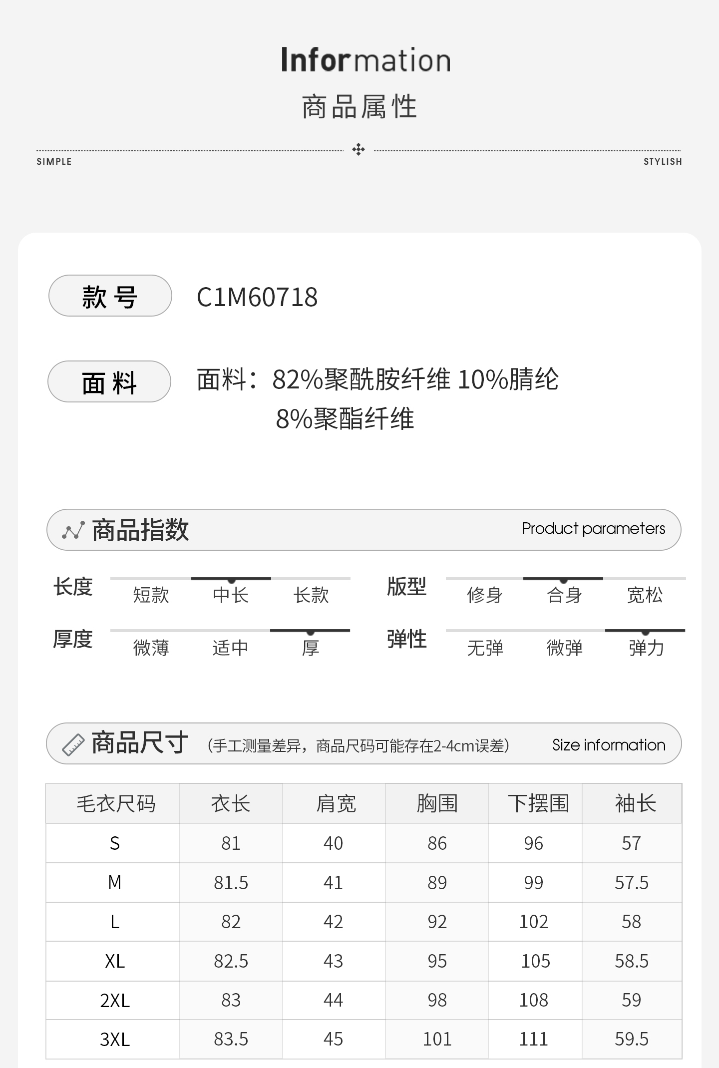 腈纶10%;锦纶/尼龙82%;聚酯纤维/涤纶8%