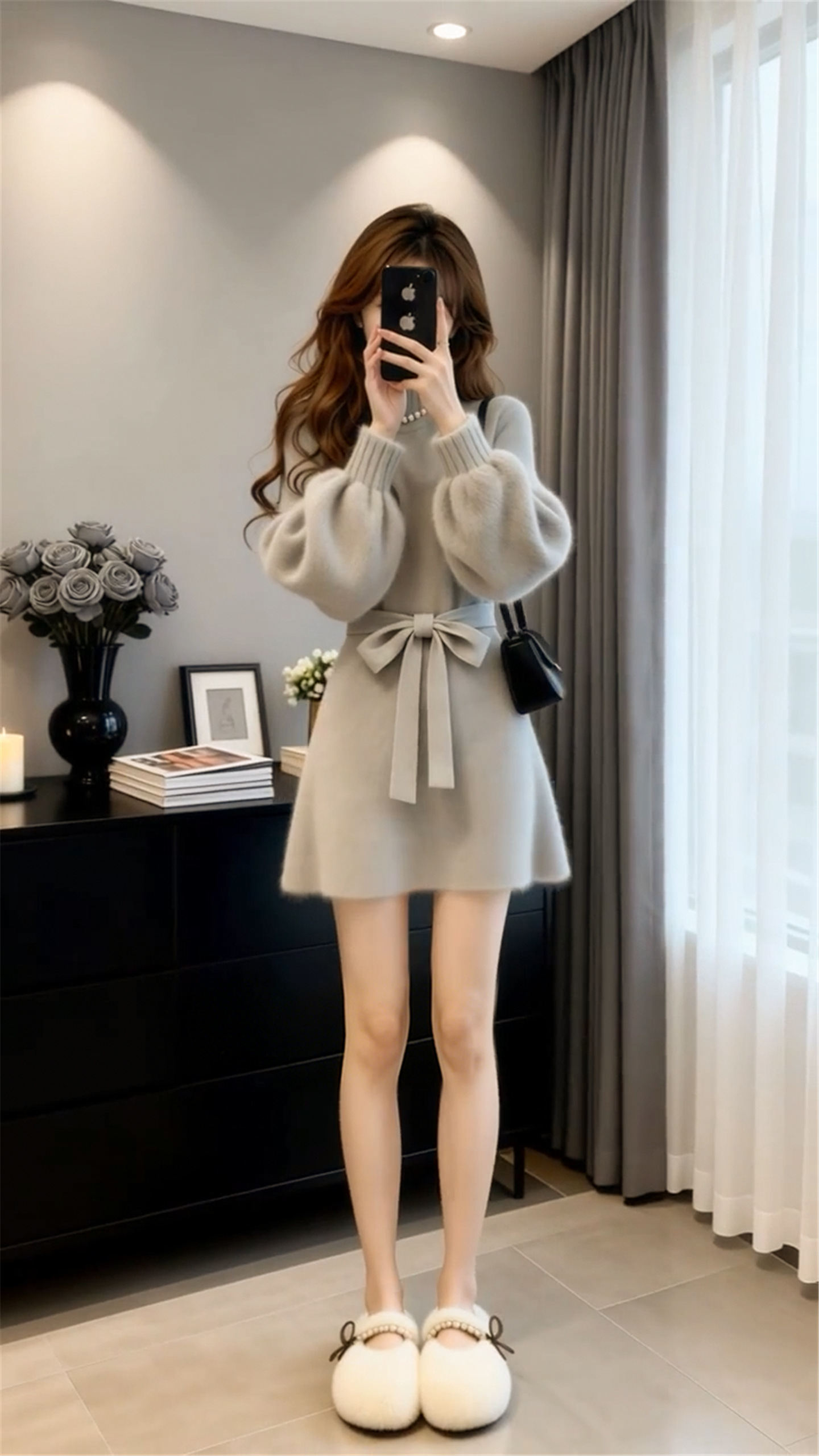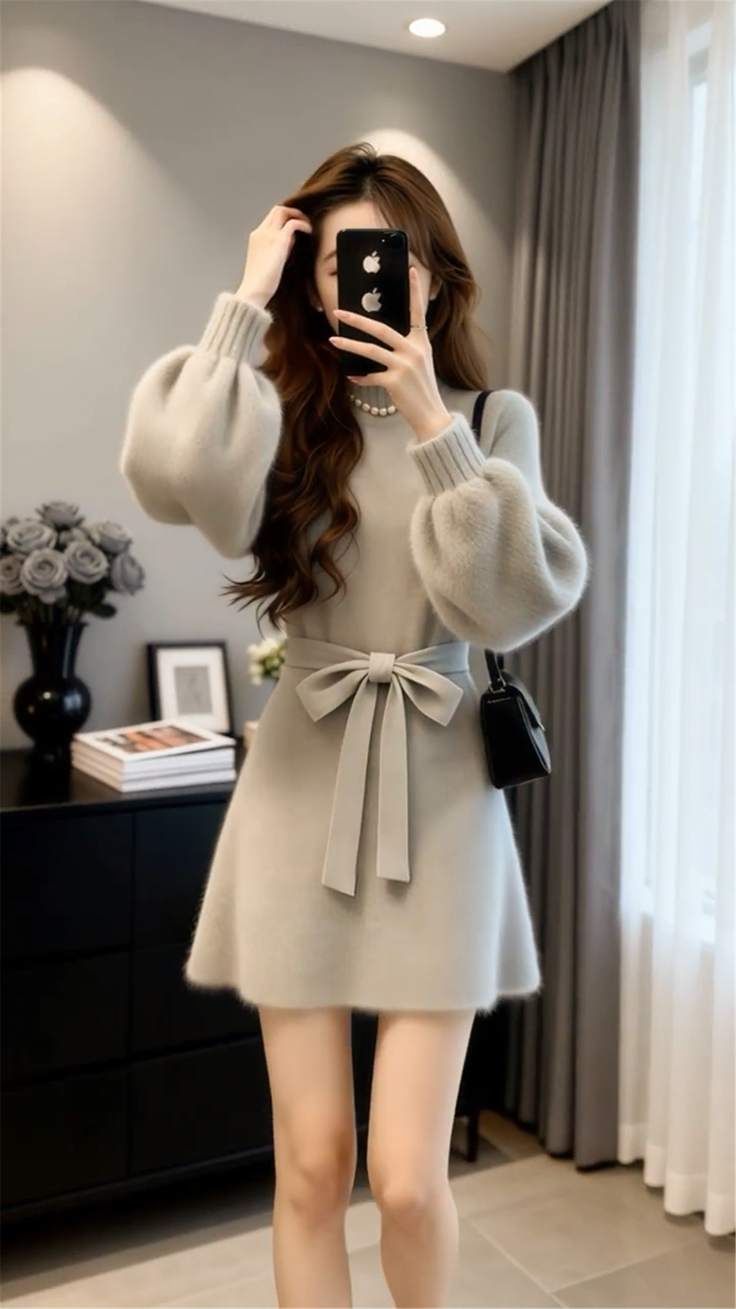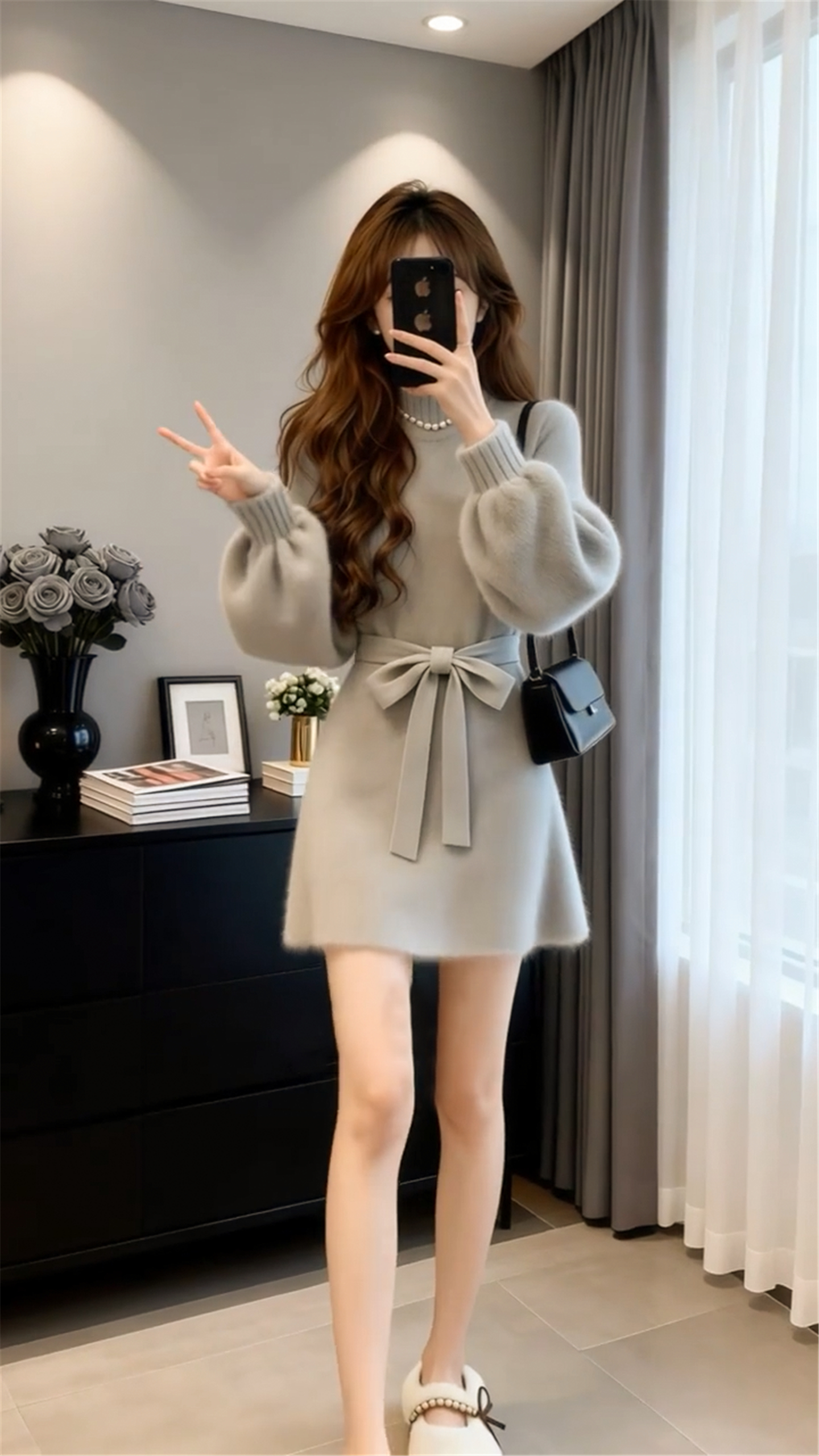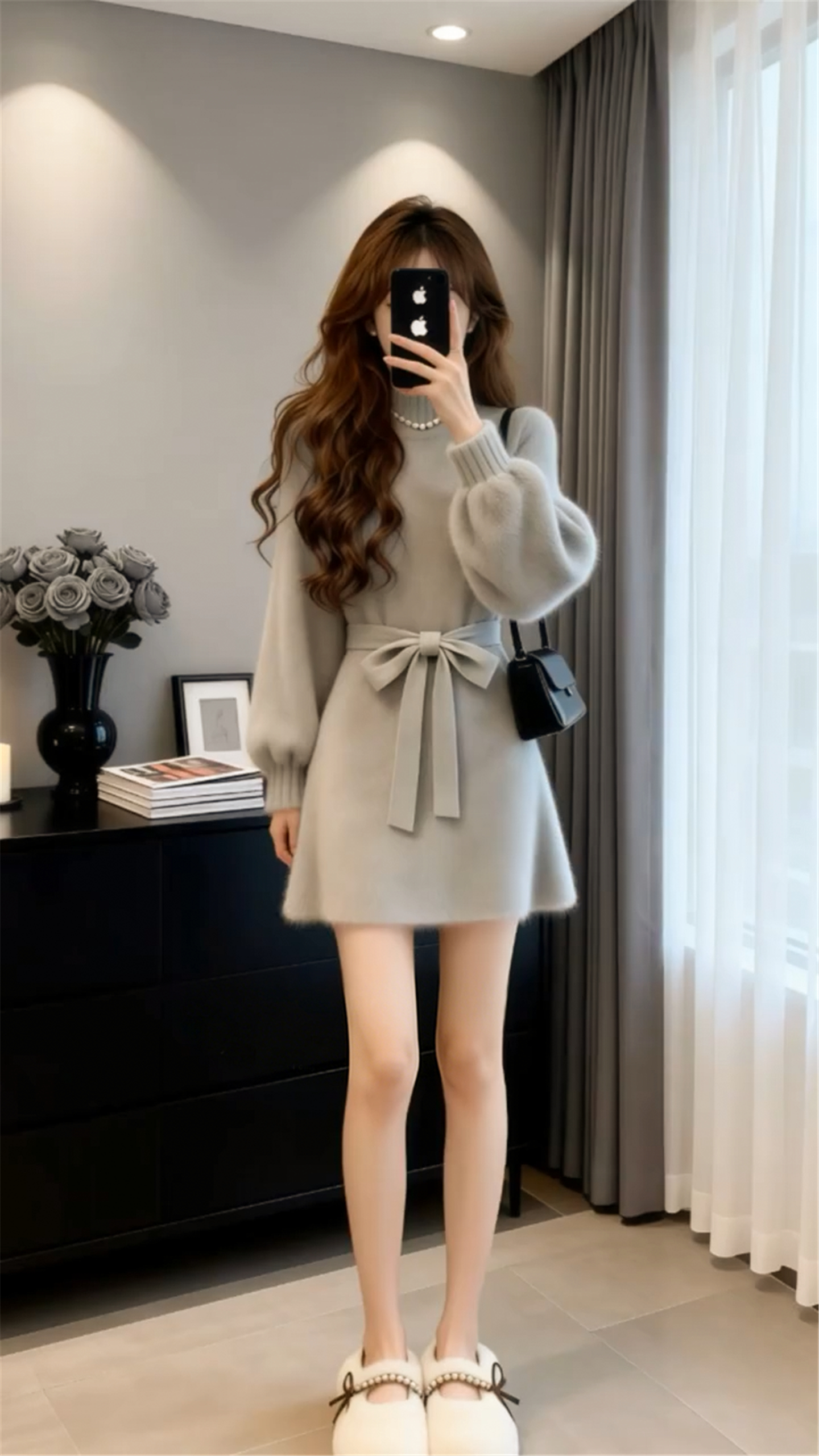 小个子香风灰色毛衣针织连衣裙子女秋冬季2026新款巨好看收腰短裙