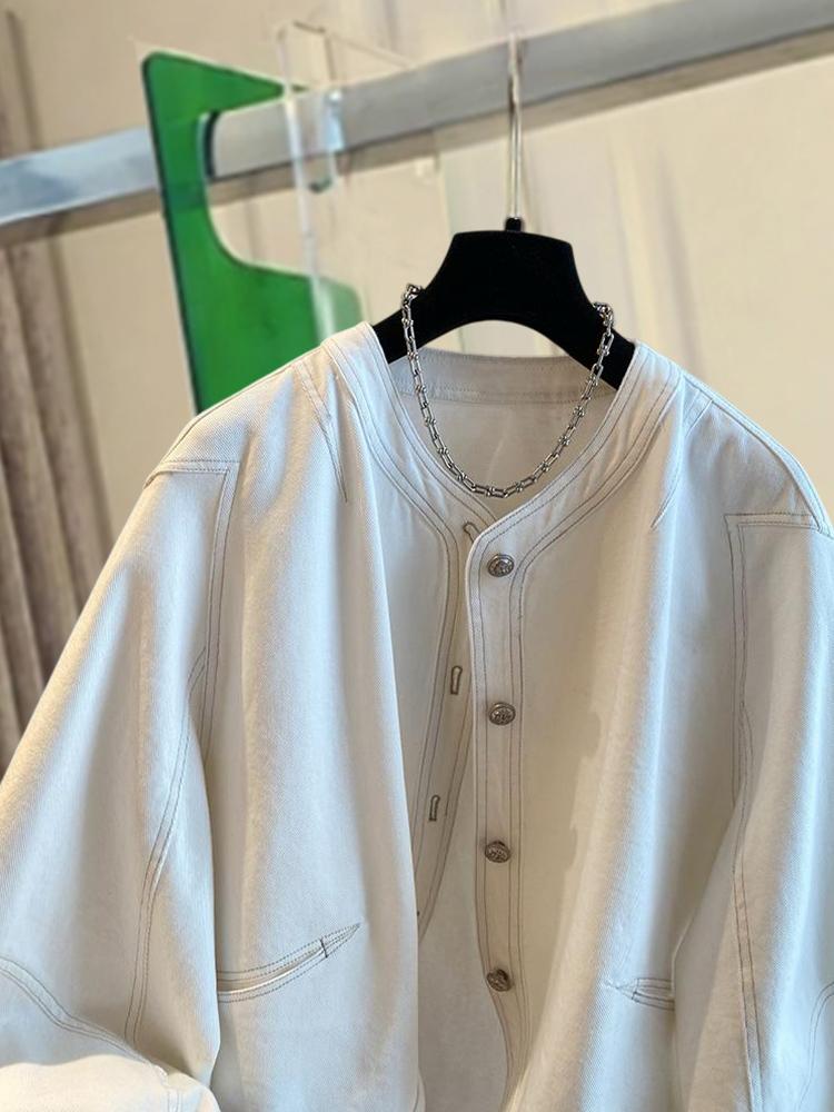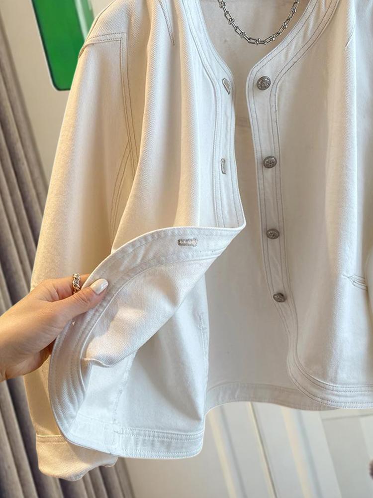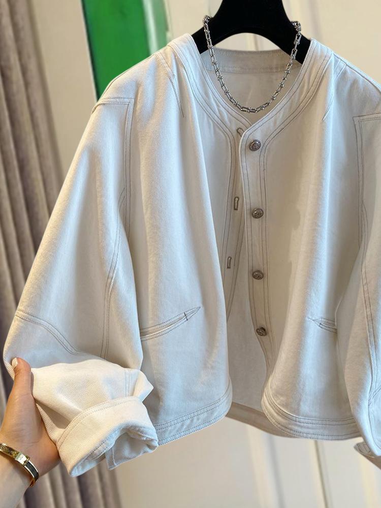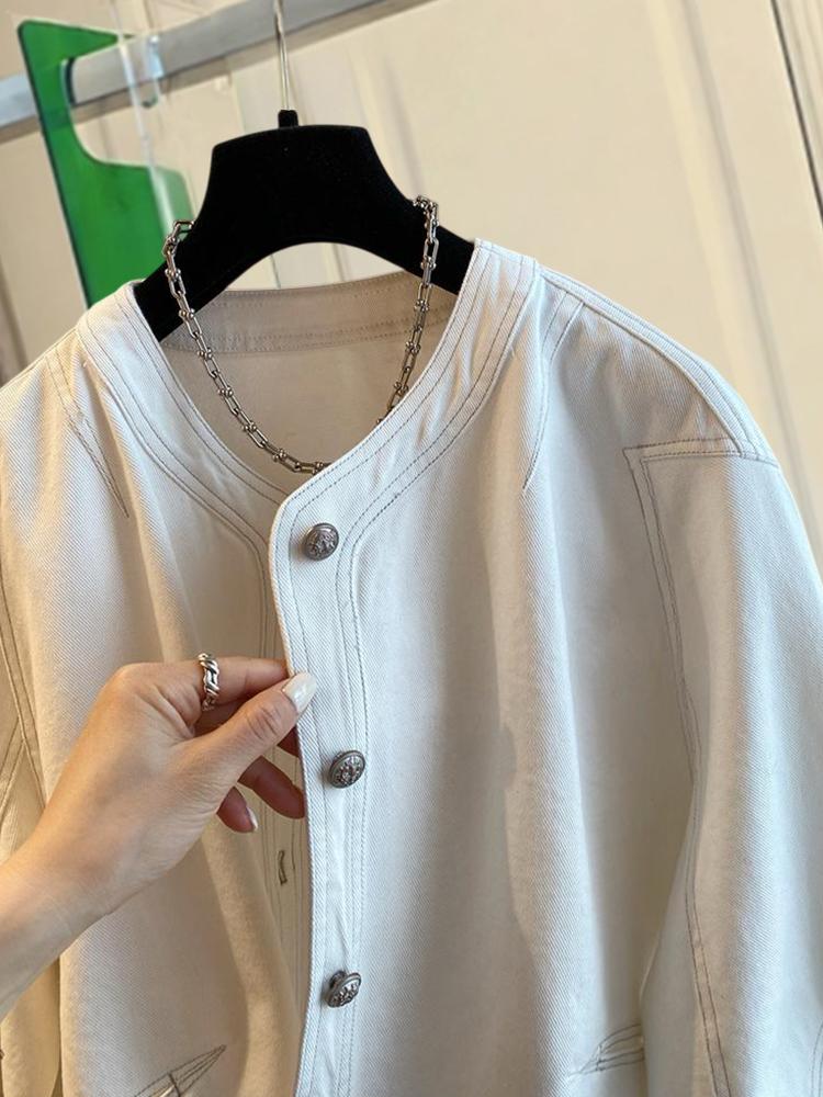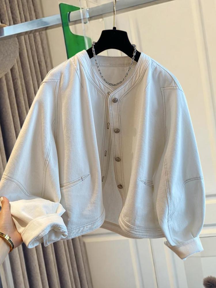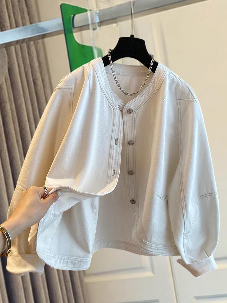 高级感明线黑色牛仔外套女春秋2026新款宽松休闲无领薄款夹克上衣