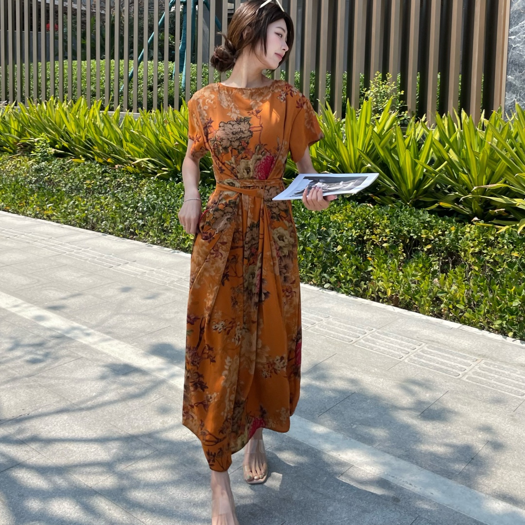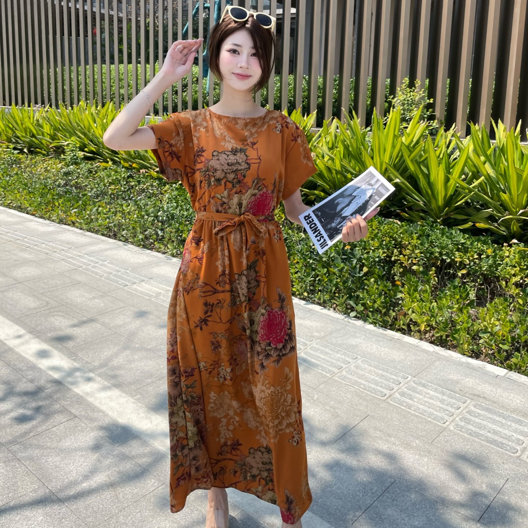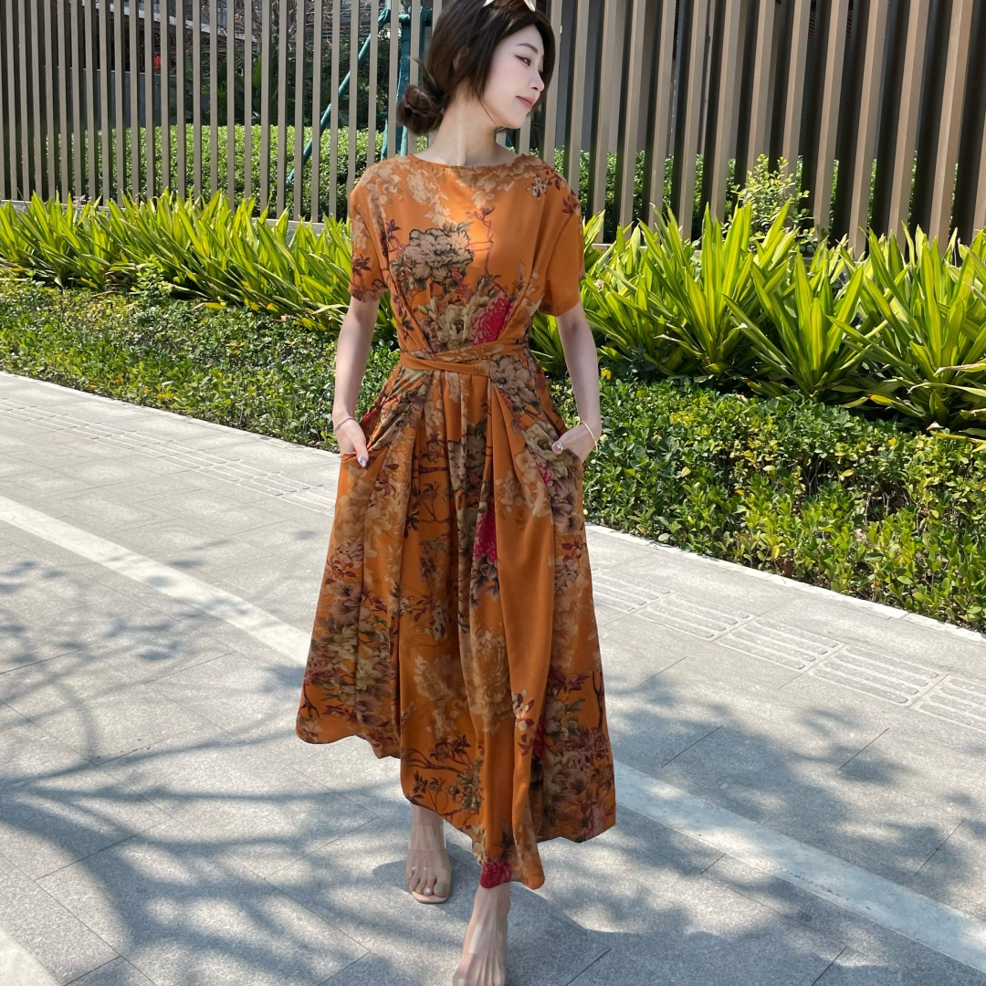 短袖连衣裙女夏季2026新款高端气质减龄宽松大码休闲碎花裙子