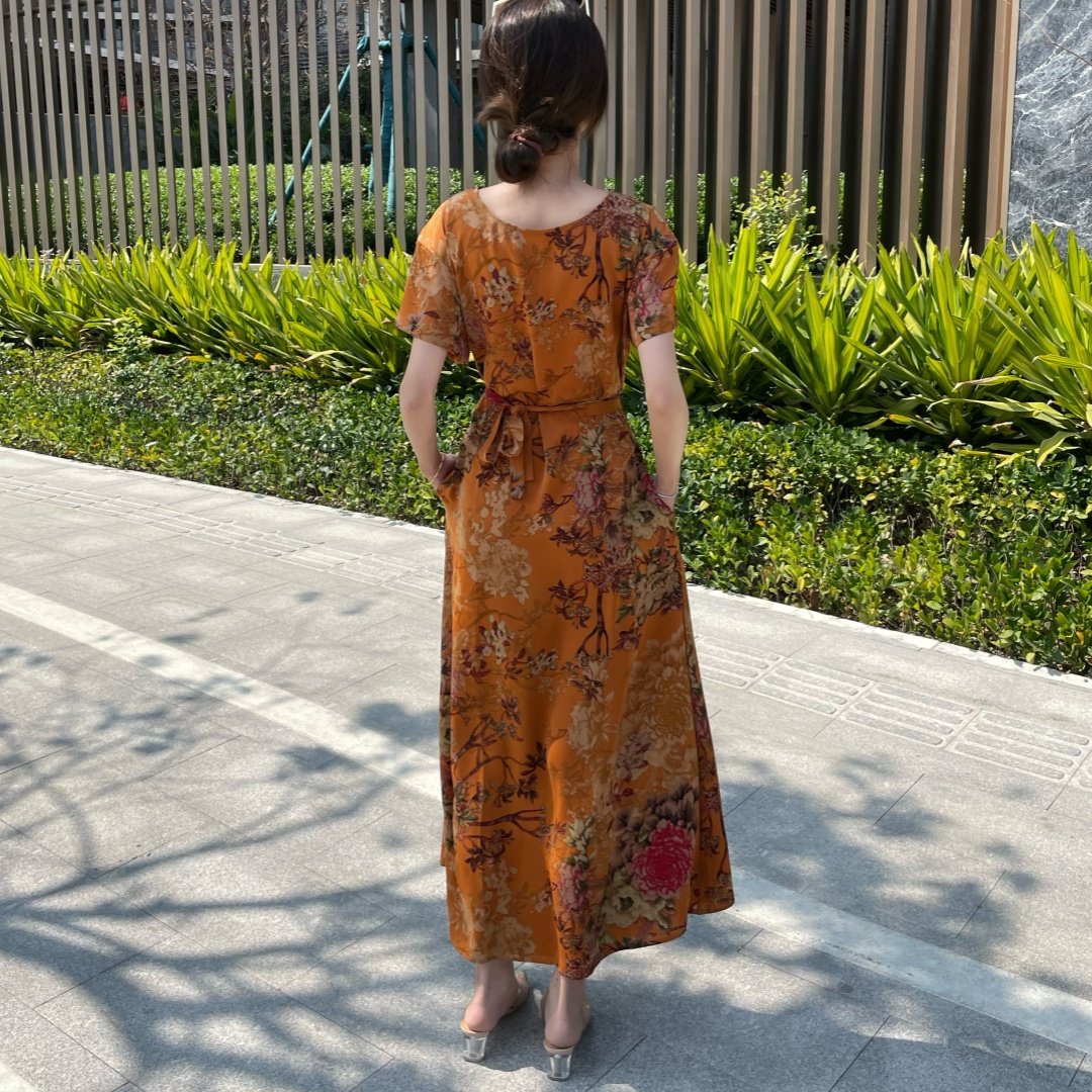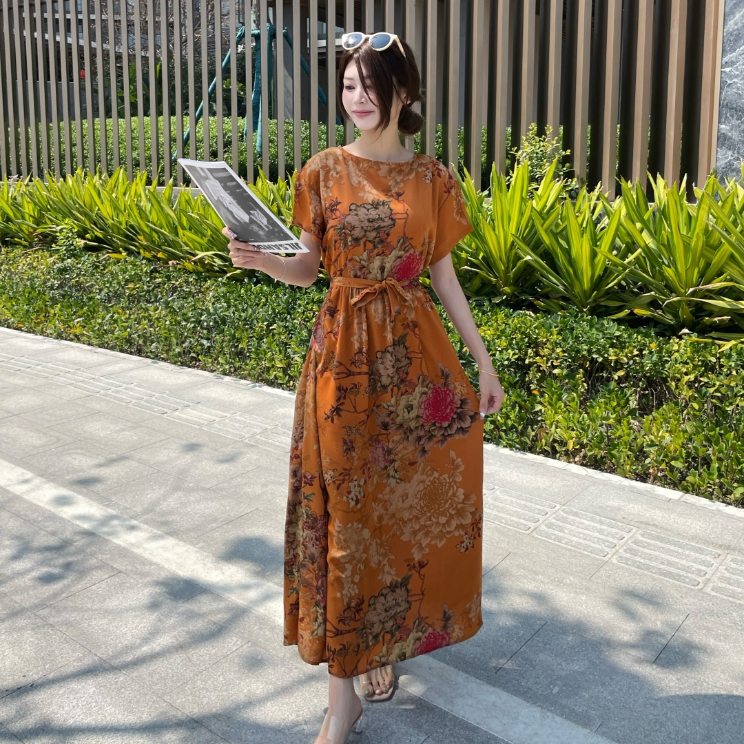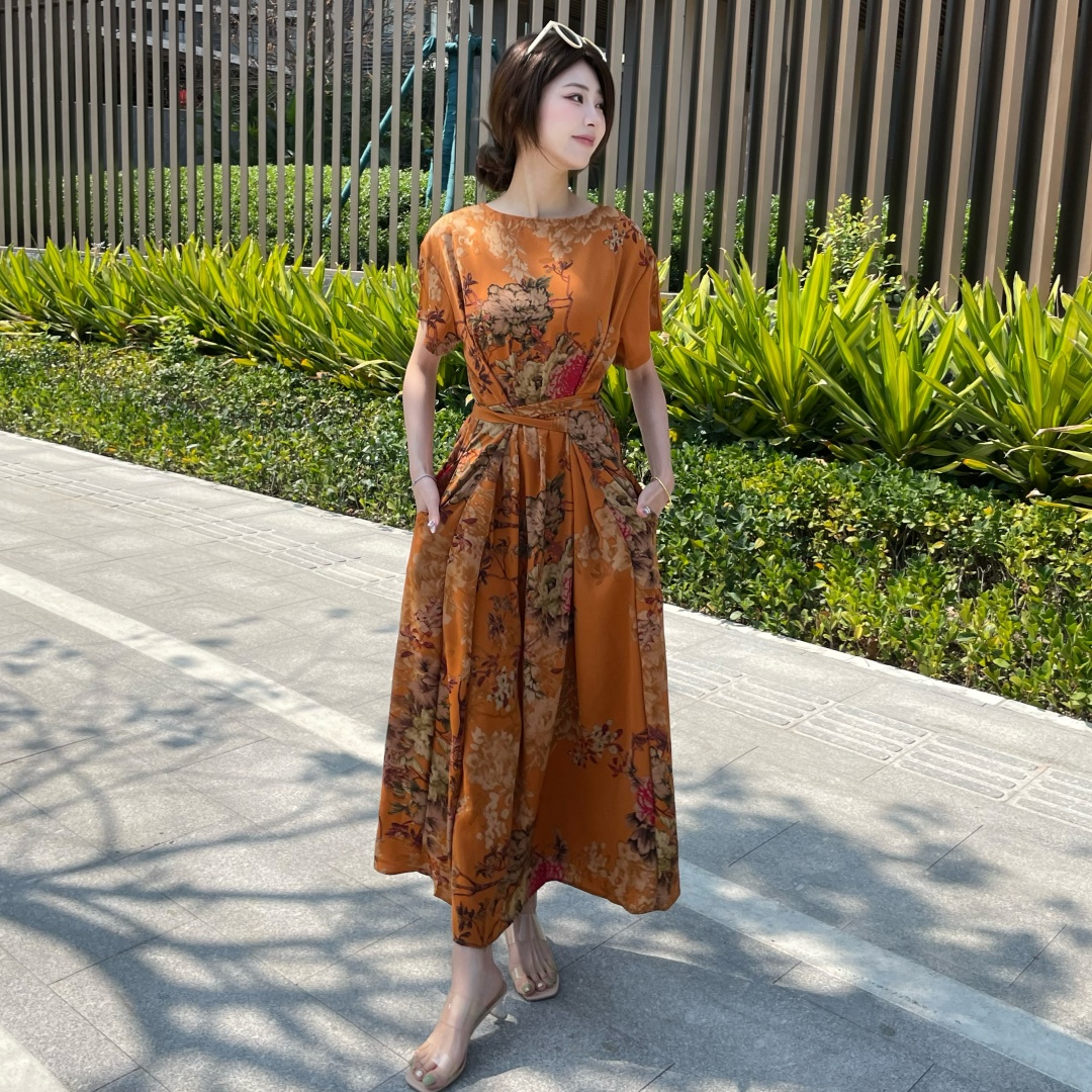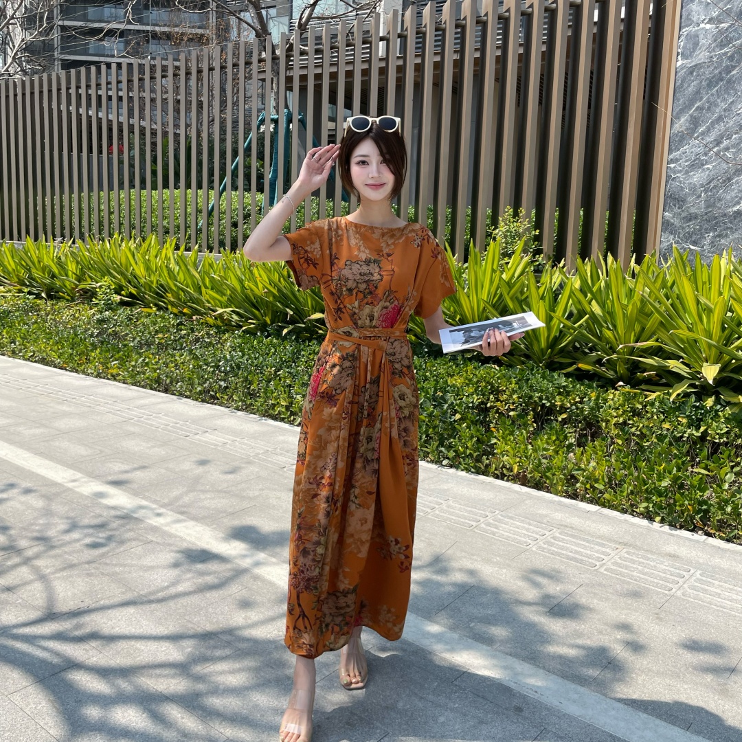 短袖连衣裙女夏季2026新款高端气质减龄宽松大码休闲碎花裙子