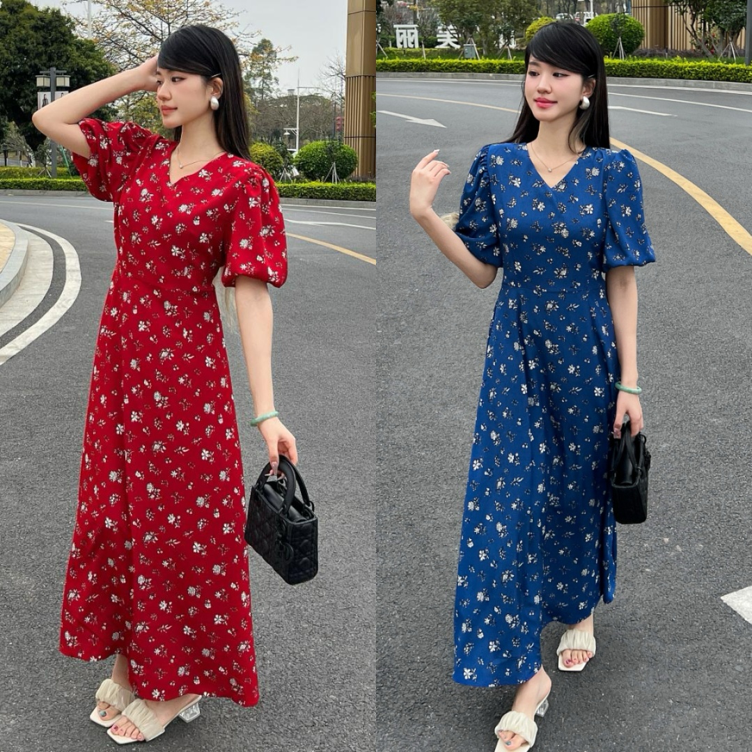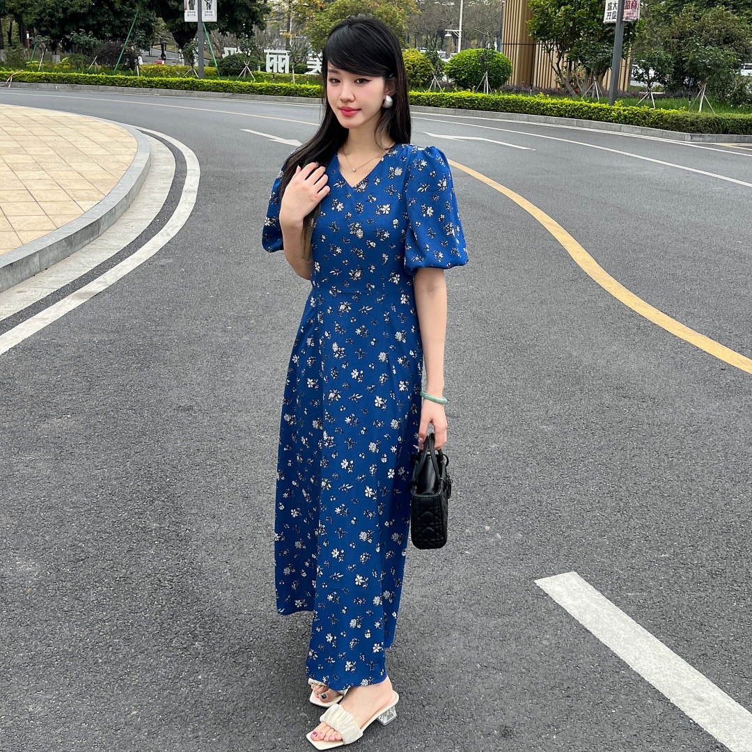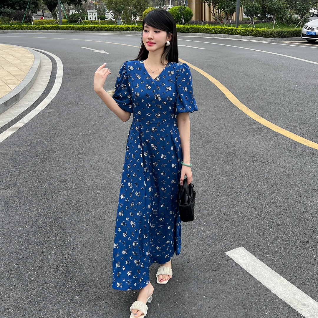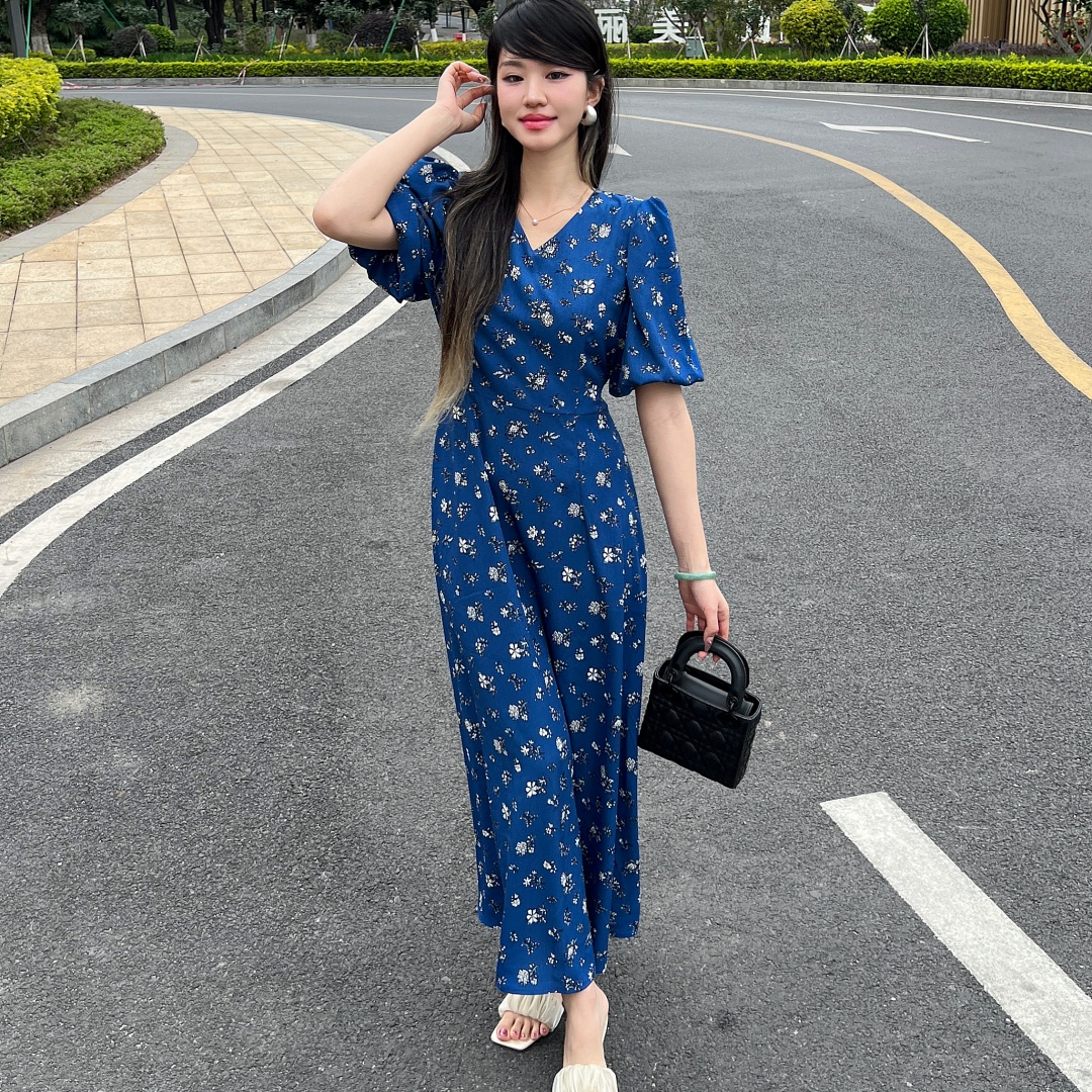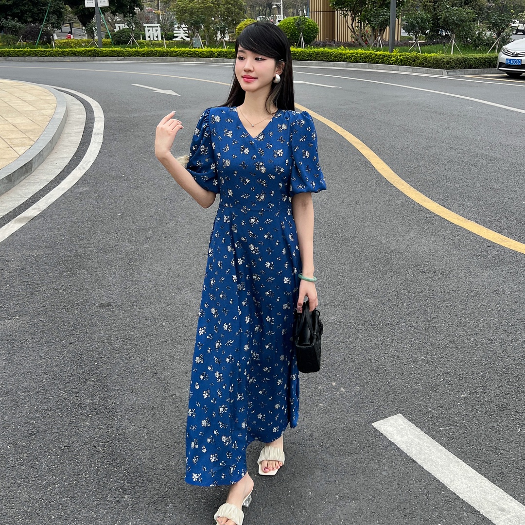 实拍 夏季新款红色碎花连衣裙法式复古设计感气质显瘦度假长裙