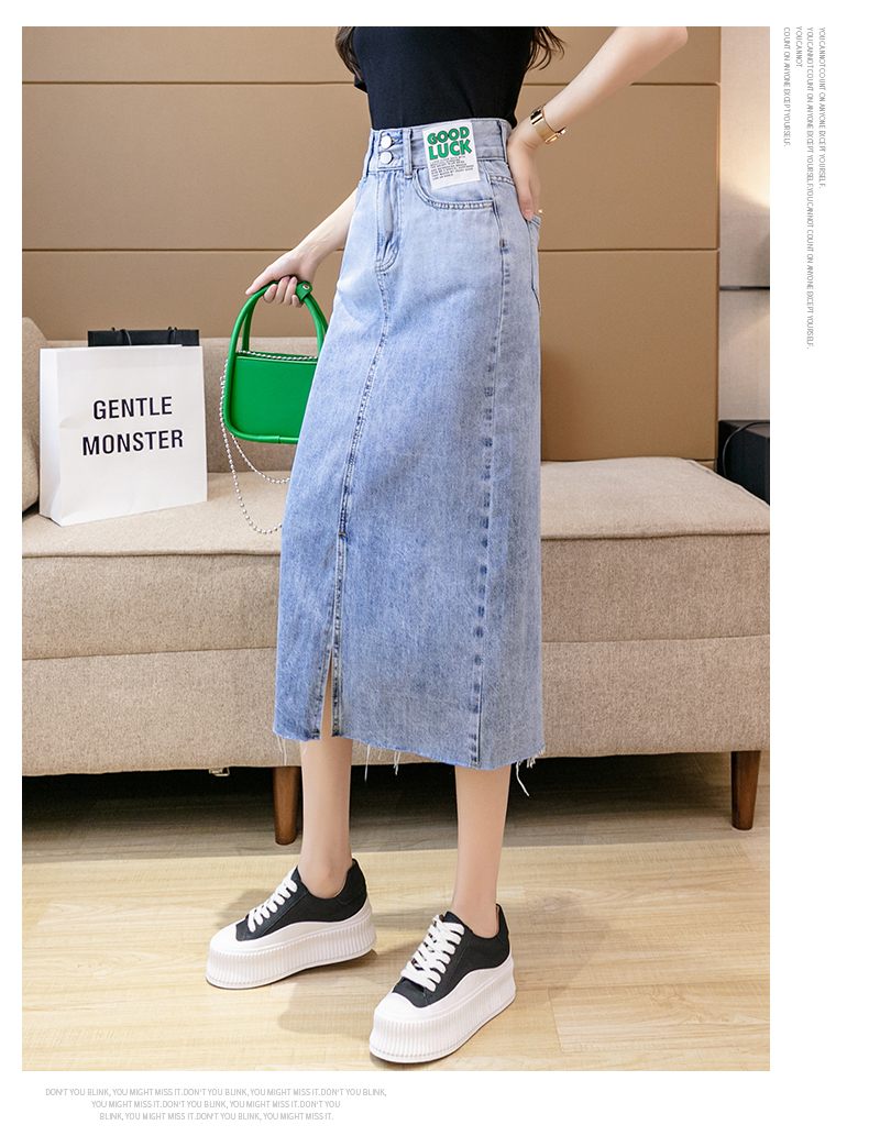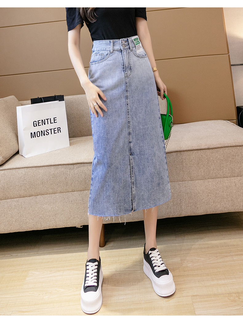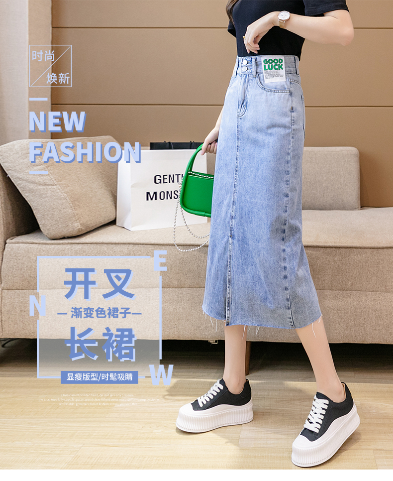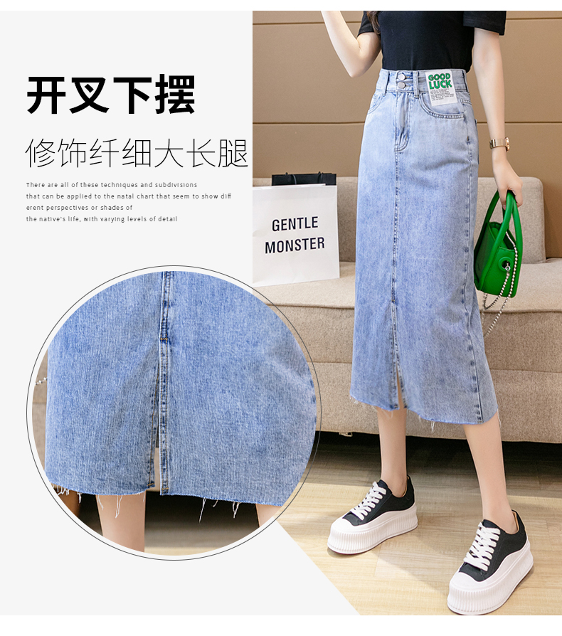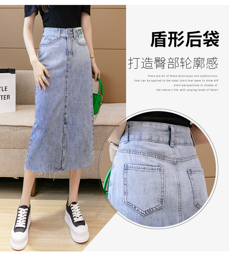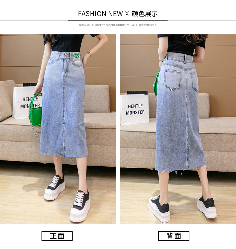 实拍高腰包臀牛仔裙2026春季韩版百搭小个子撞色拼接中长裙一步裙