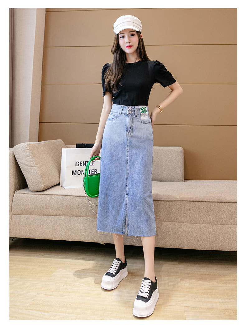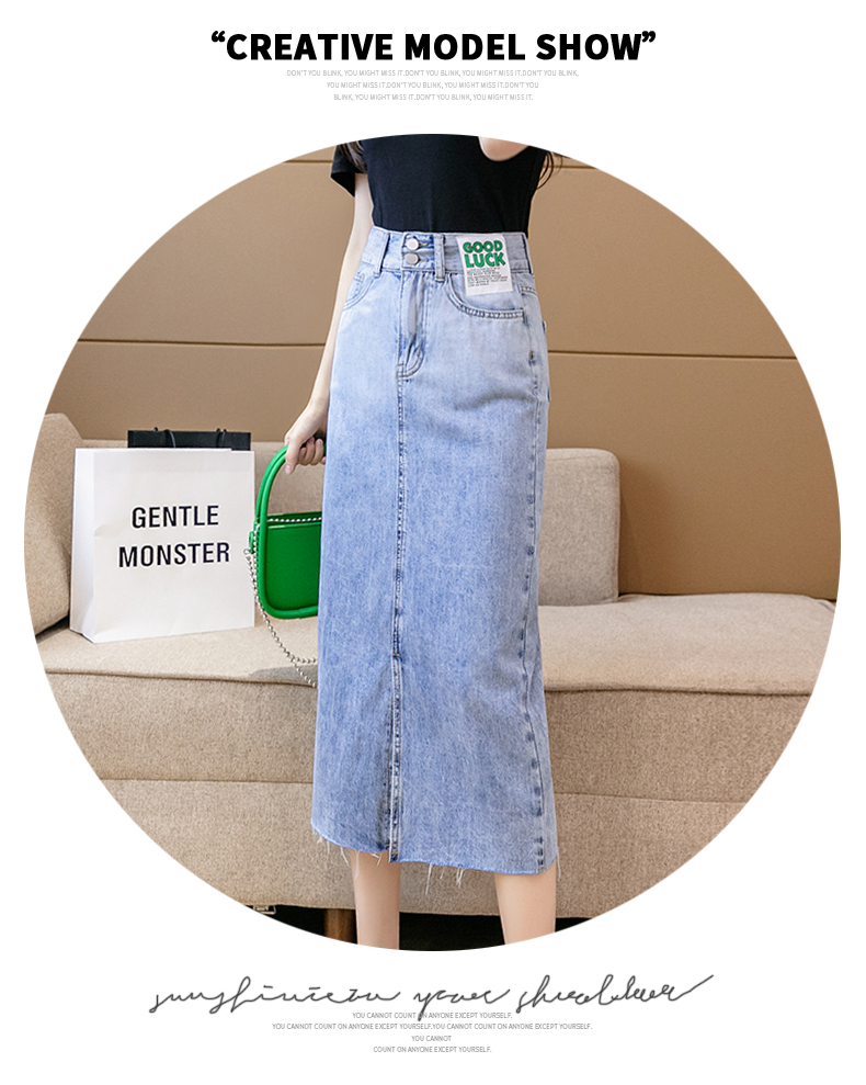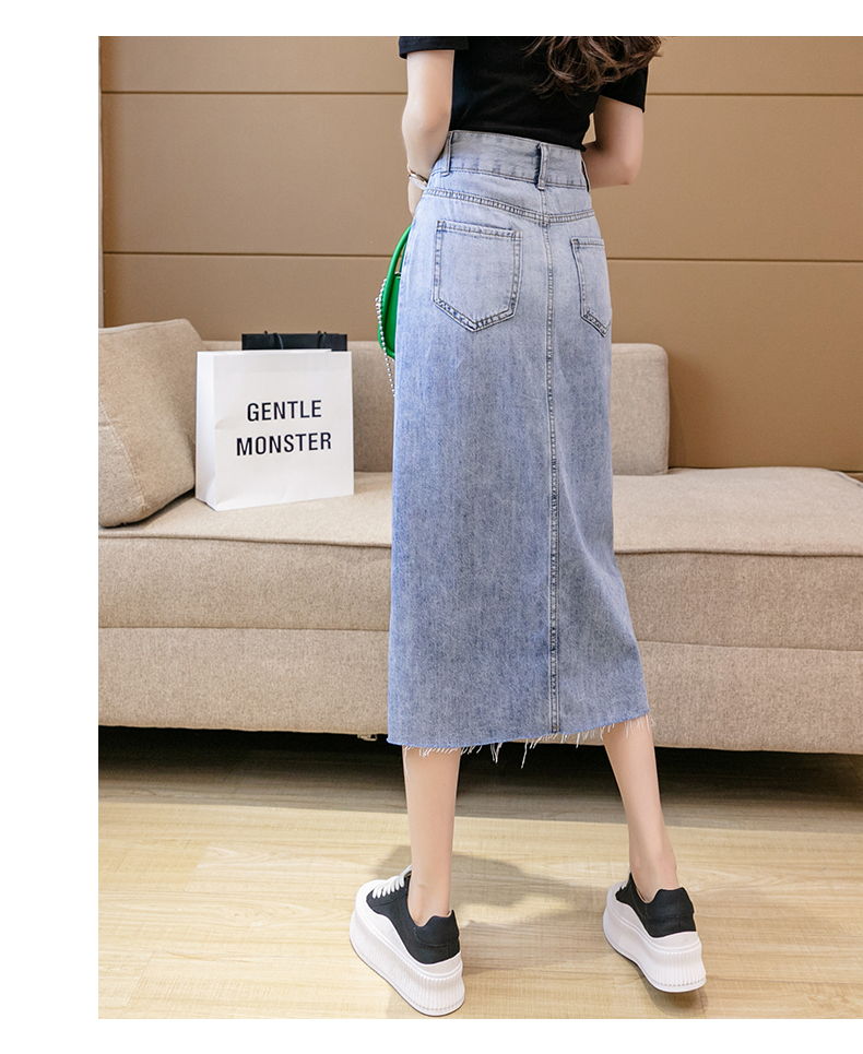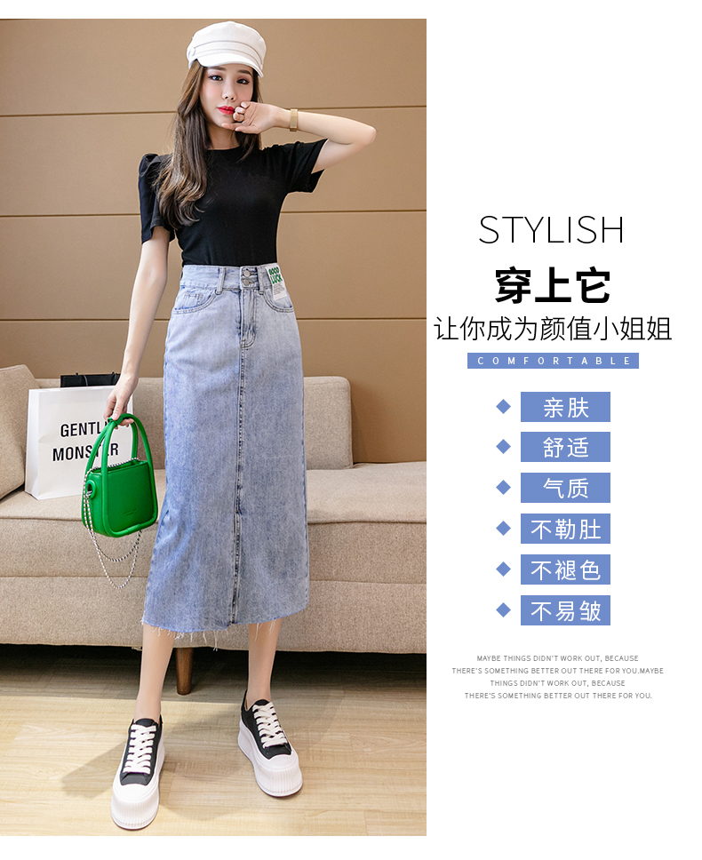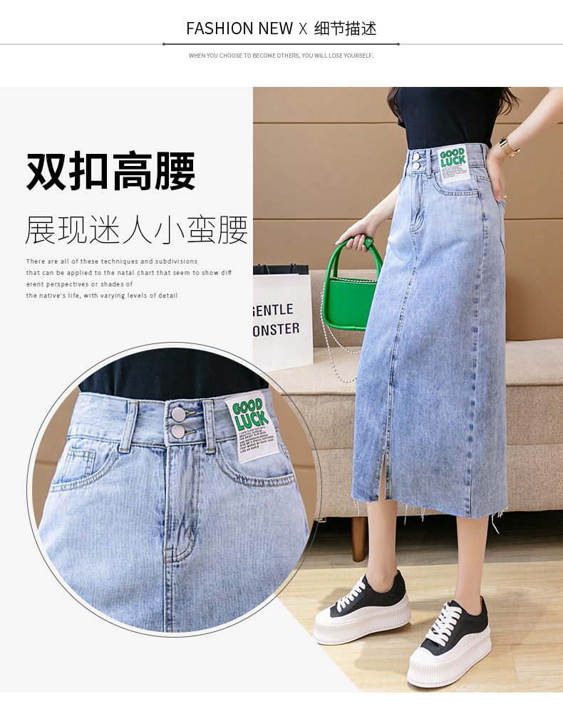 实拍高腰包臀牛仔裙2026春季韩版百搭小个子撞色拼接中长裙一步裙
