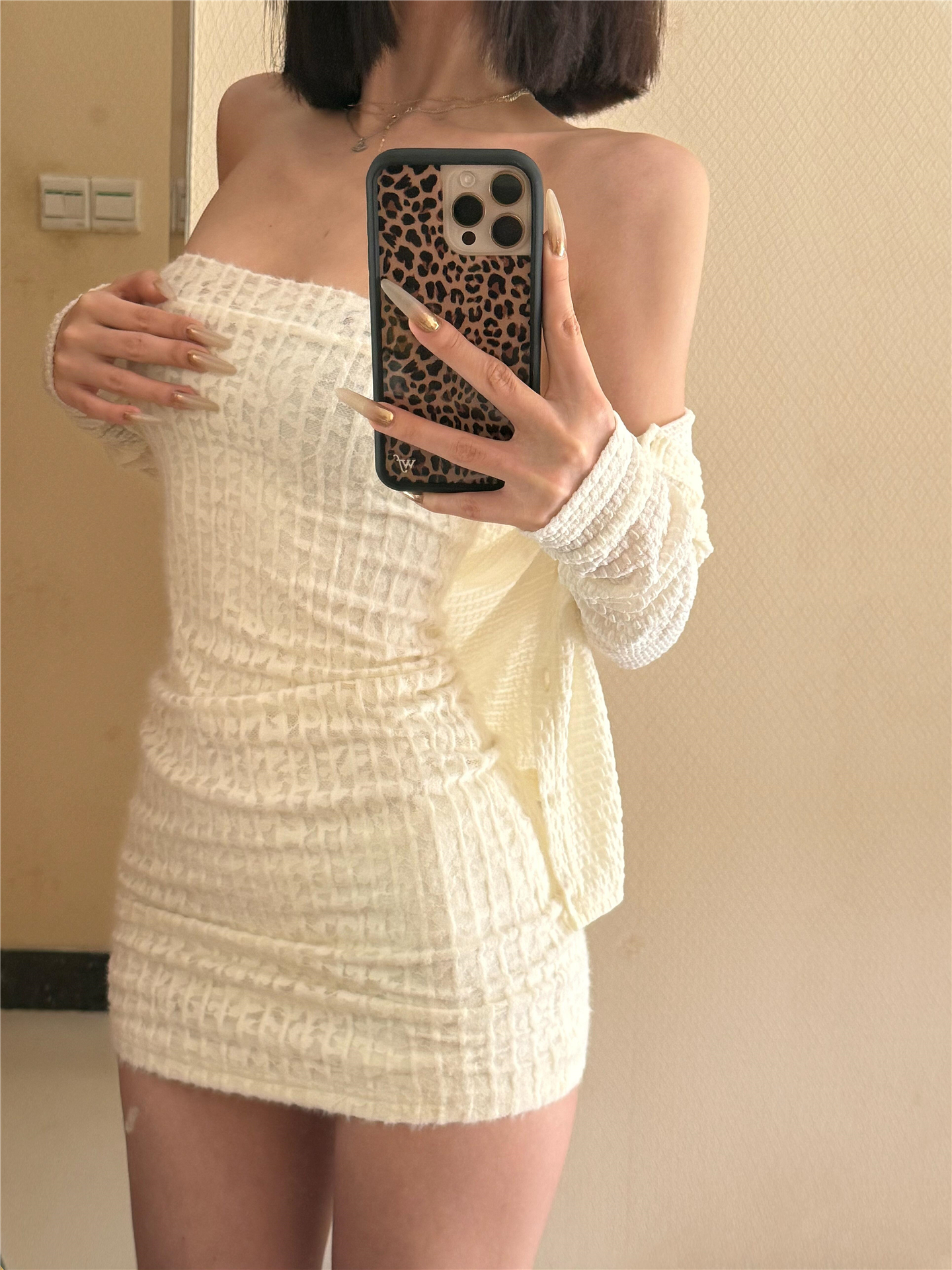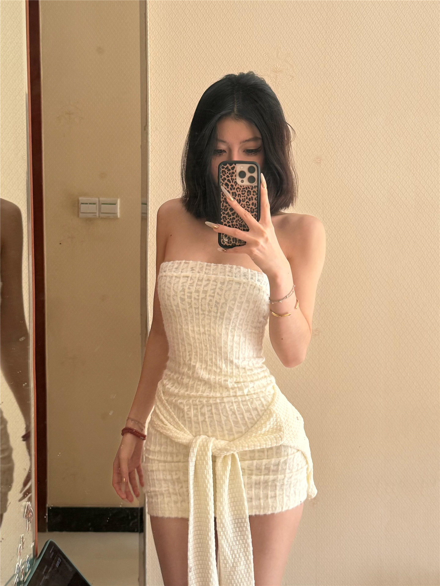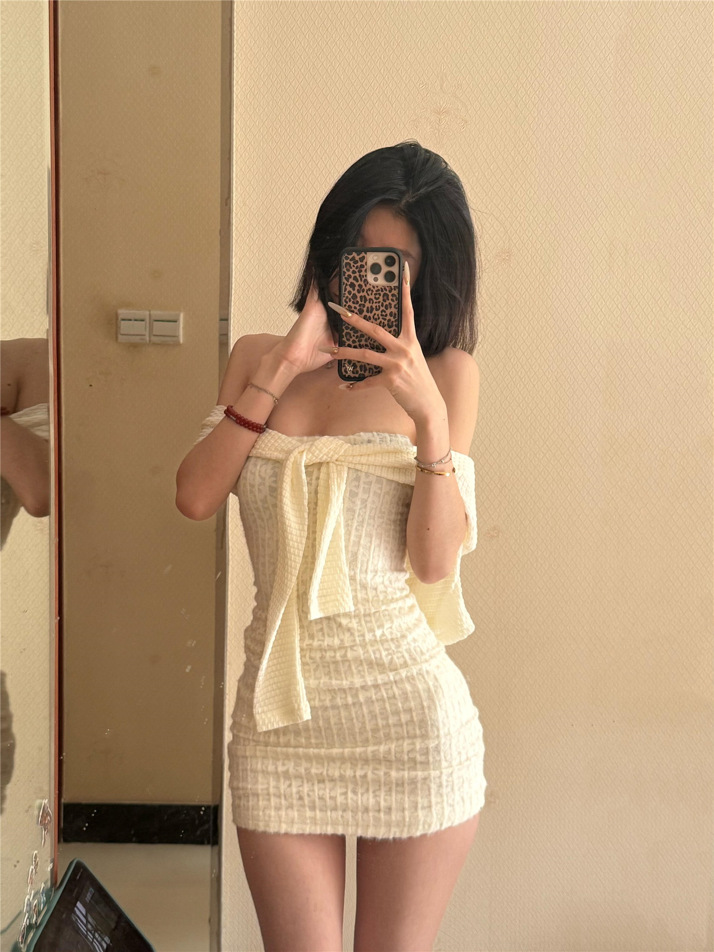 初冬巨好看白色薄纱修身包臀连衣裙女2026新款特别漂亮掐腰小裙子