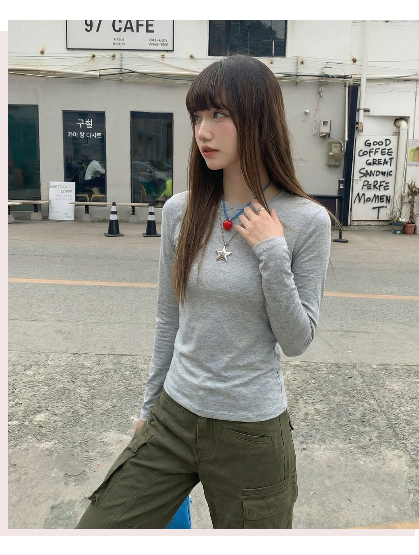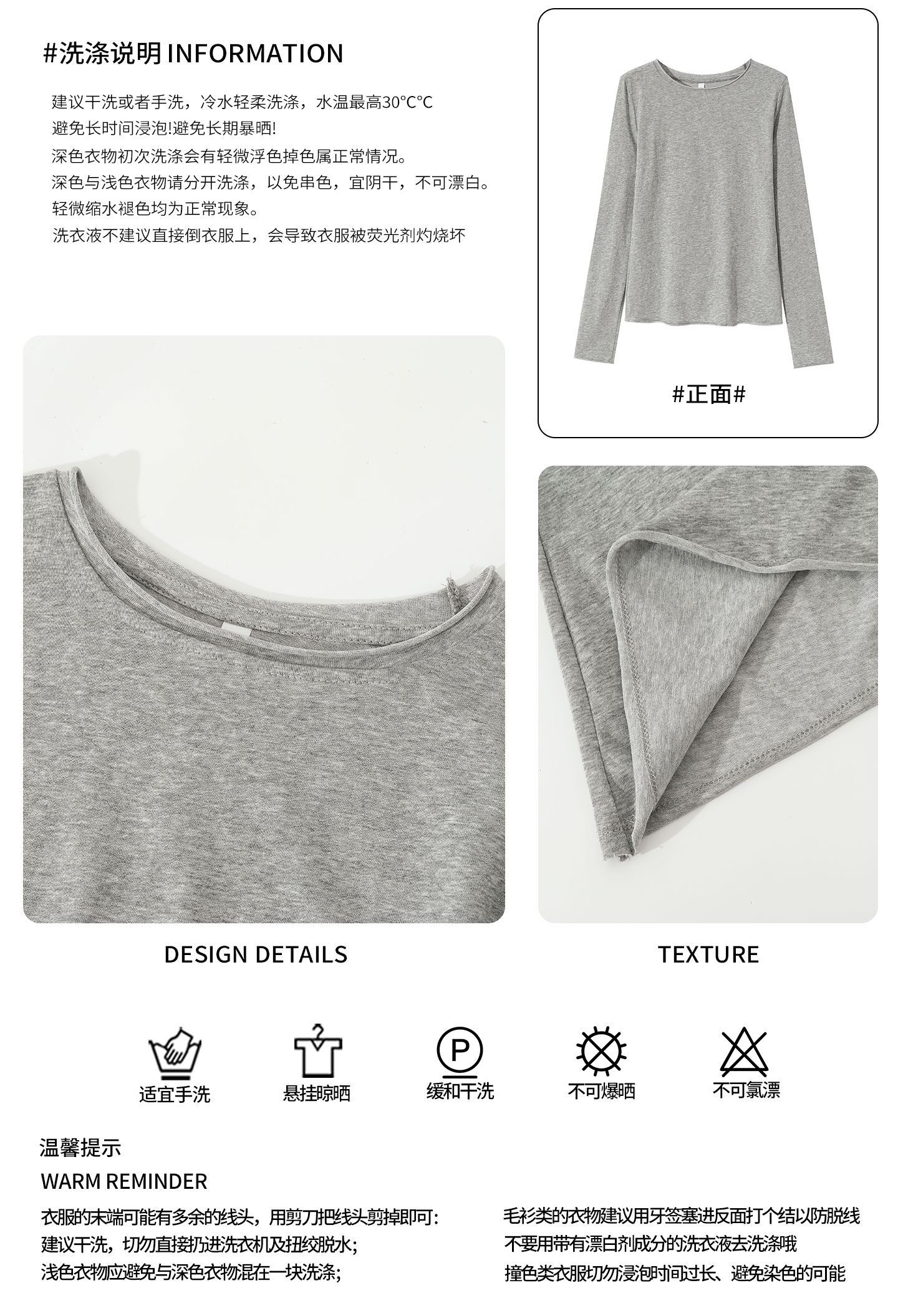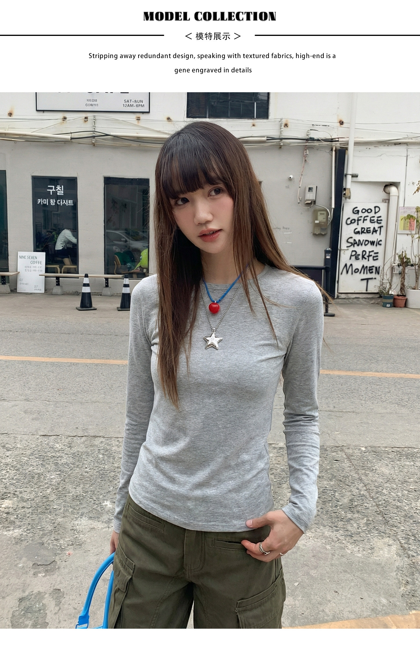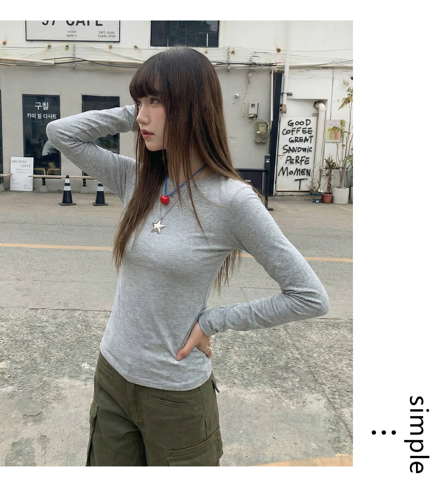 实拍实价正肩卷边长袖t恤女2026春季新款薄款修身显瘦上衣潮