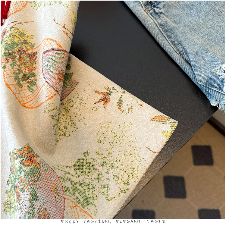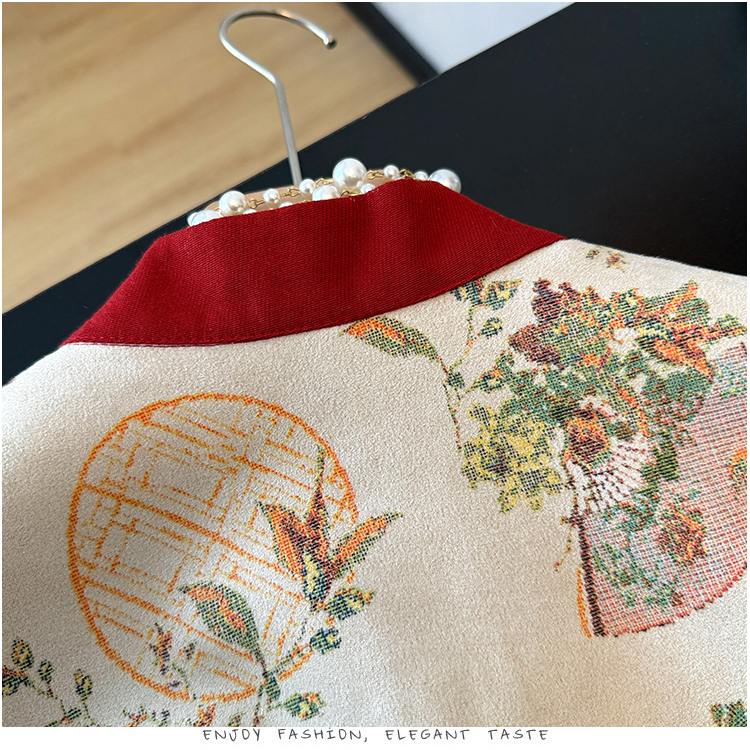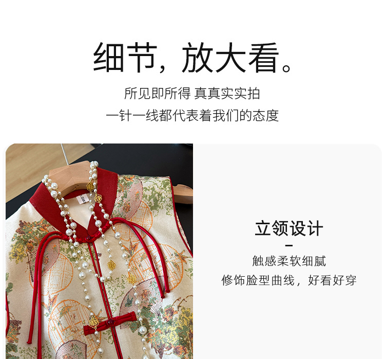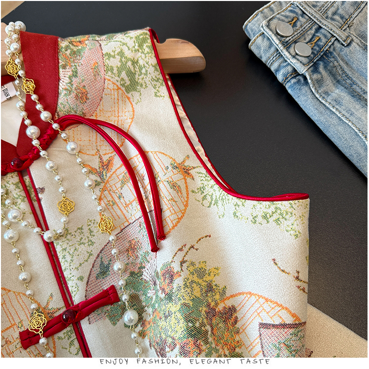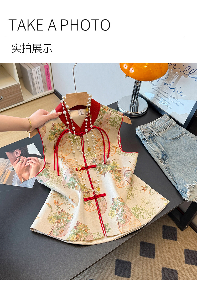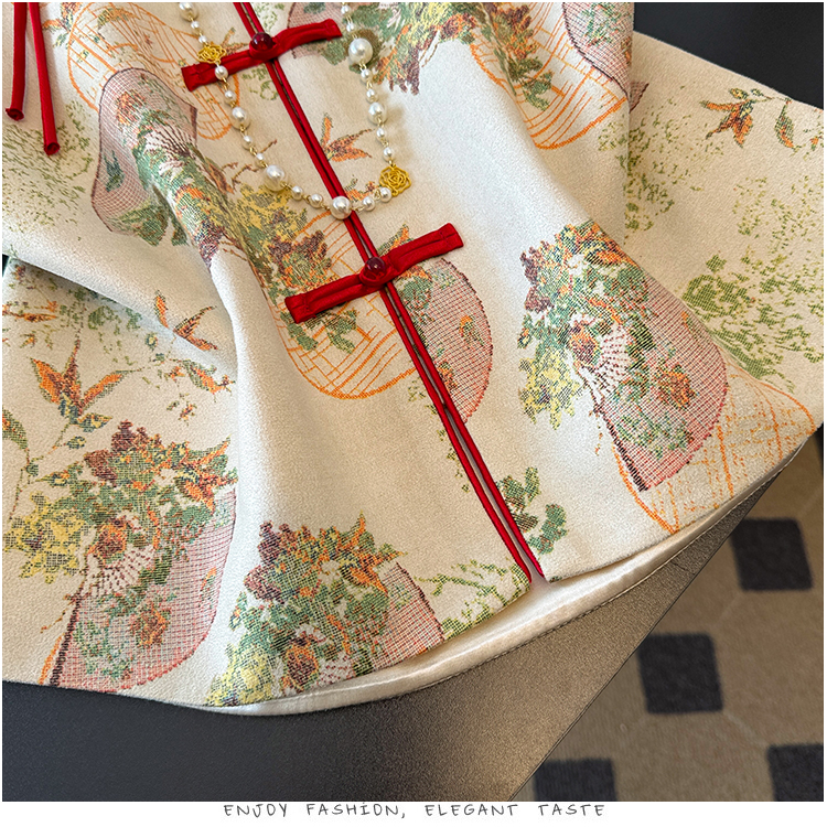 新中式国潮复古小立领盘扣鹿皮绒马甲开衫外套女植物花卉