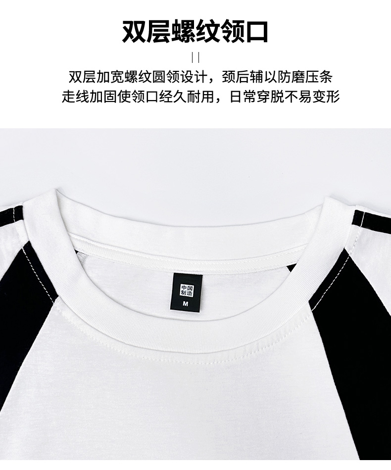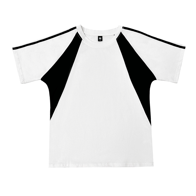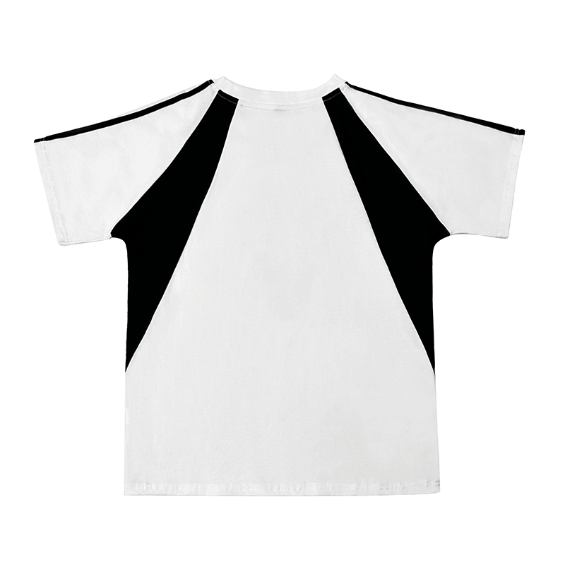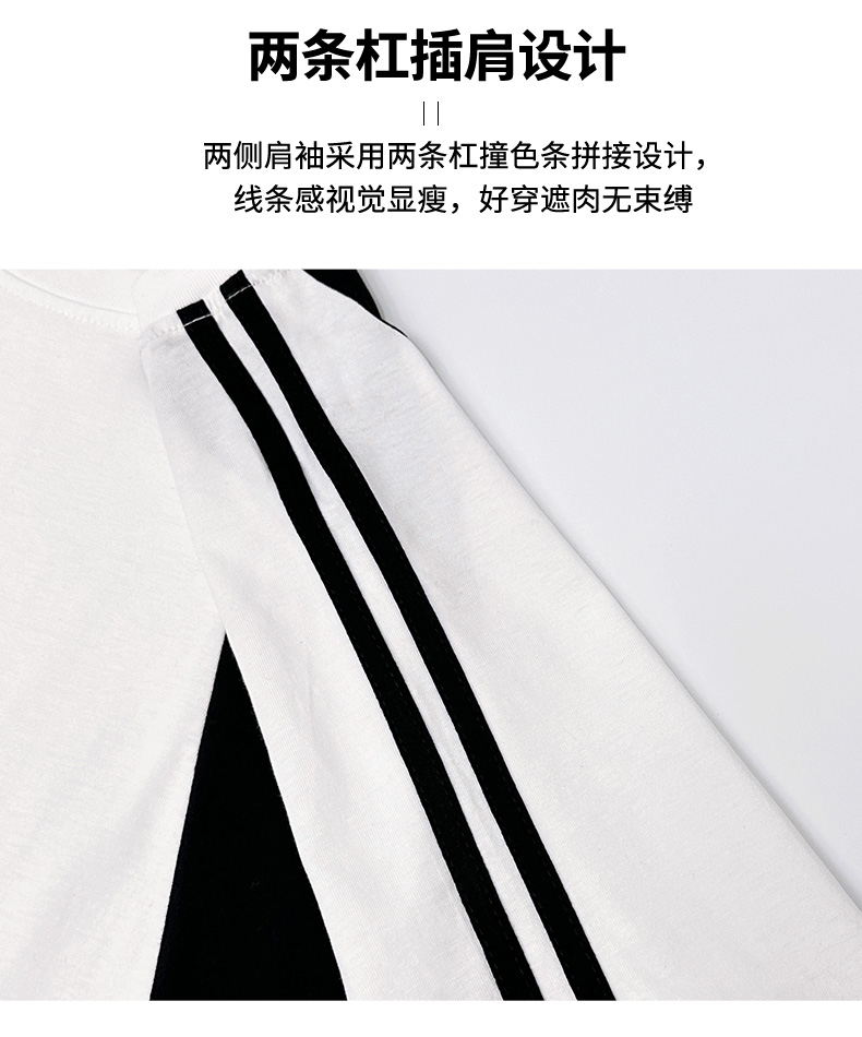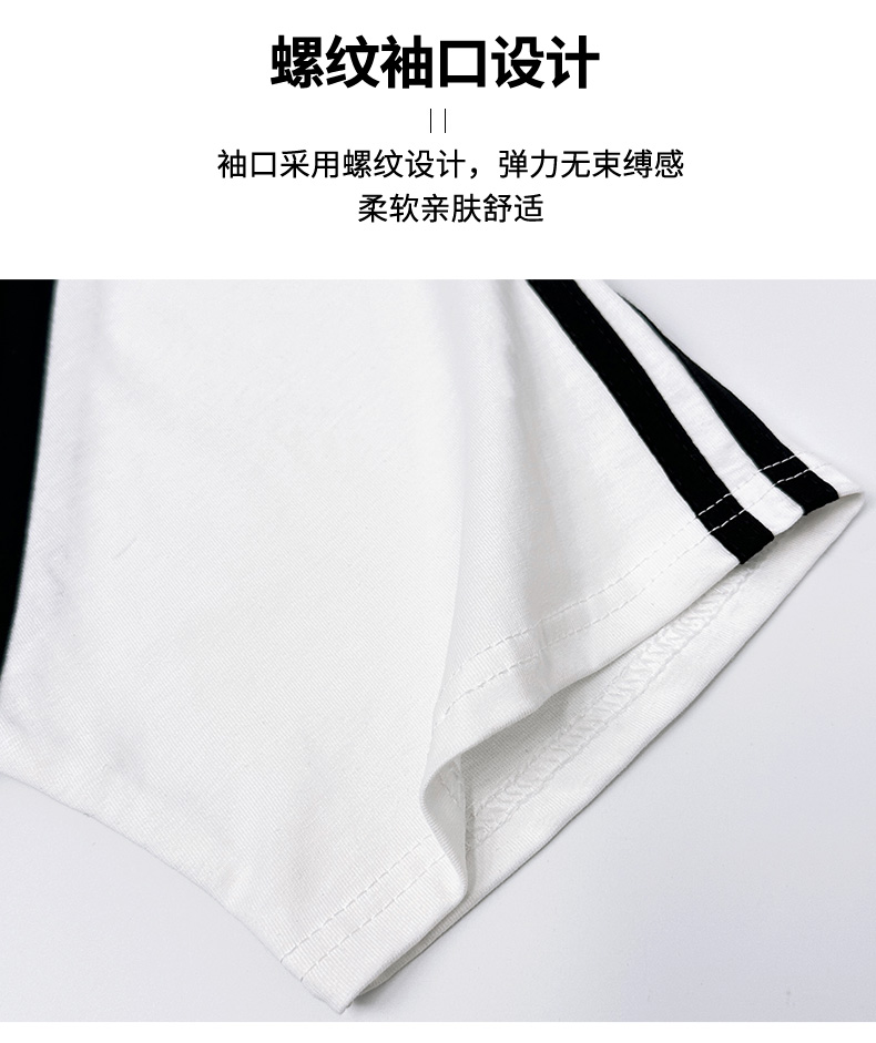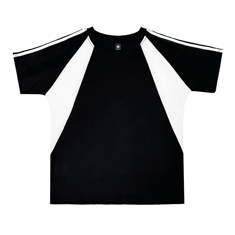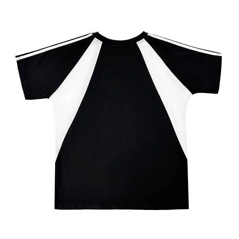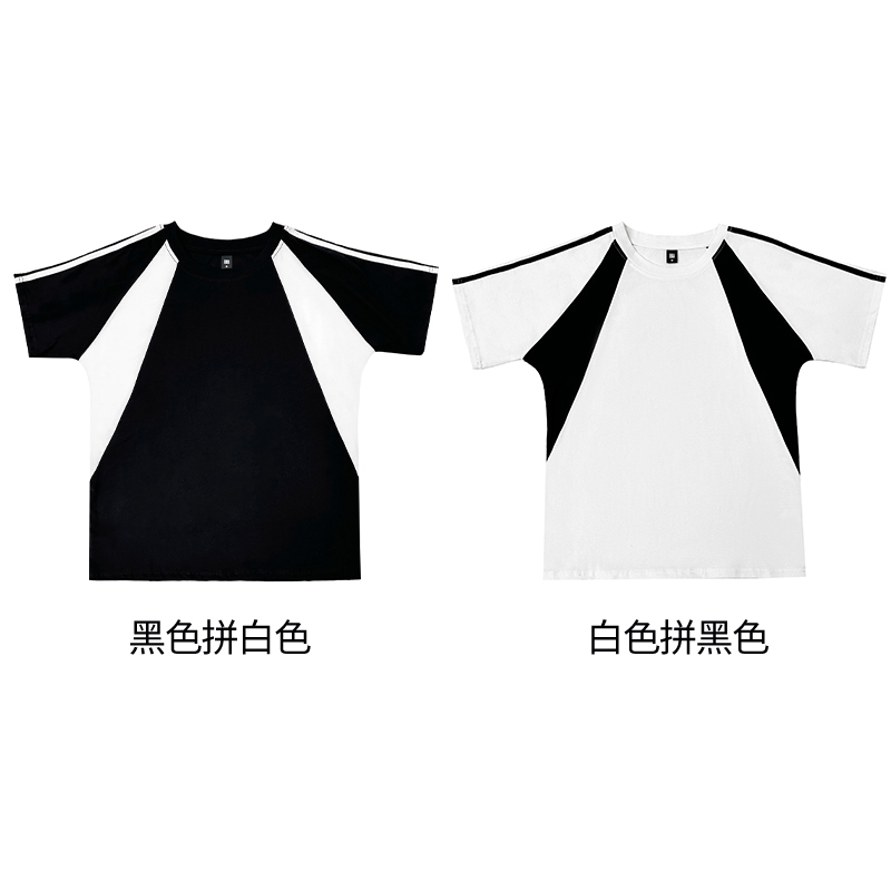 支持退货 230克-T616#圆领黑白拼接两条杠宽松潮牌短袖T恤 100%棉