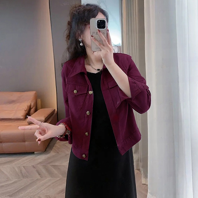 官图 纯棉韩版休闲短外套女2026春秋新款小个子百搭洋气夹克上衣