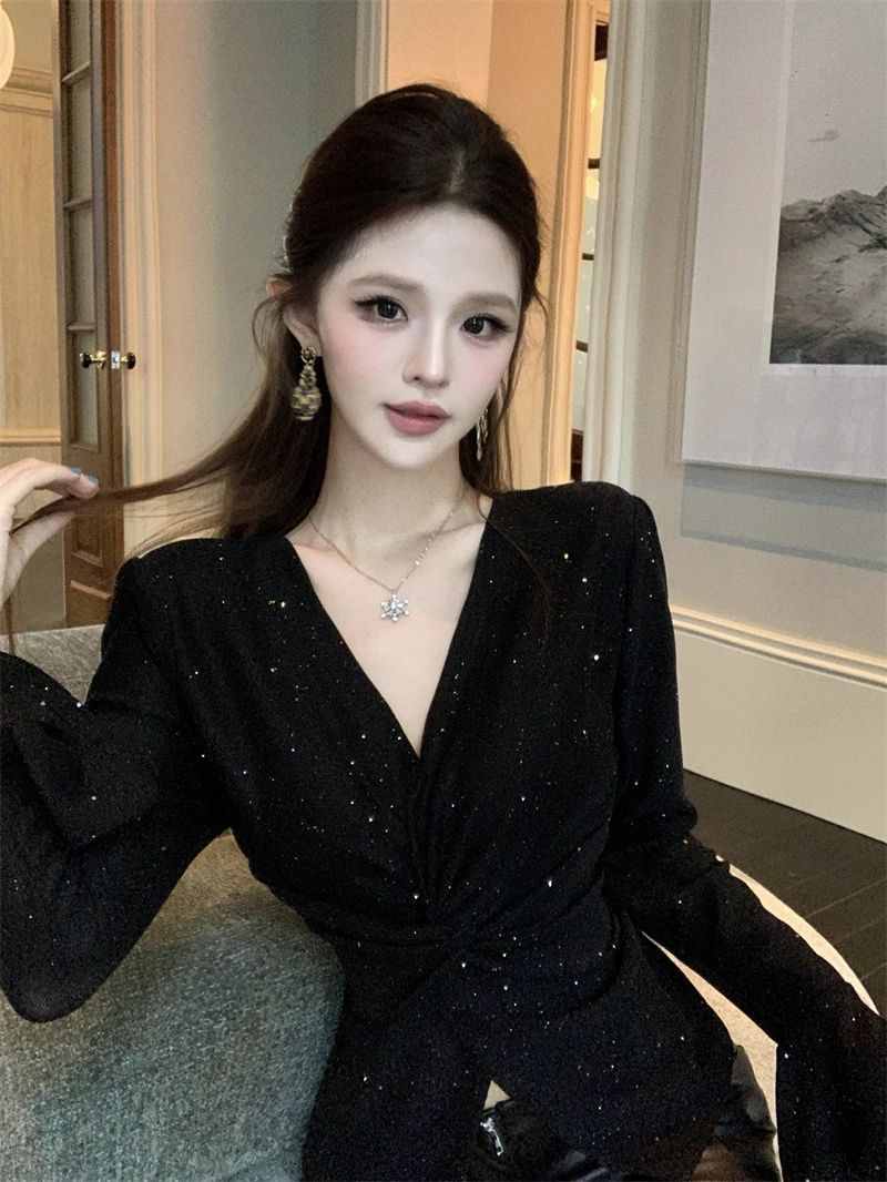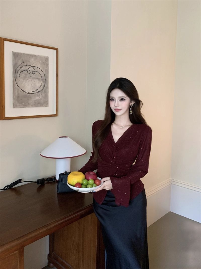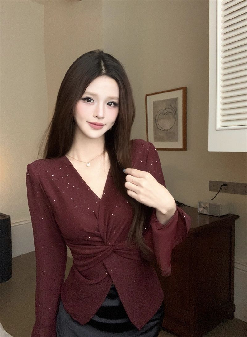 2026年春秋季新高级感气质收腰显瘦长袖T恤上衣女