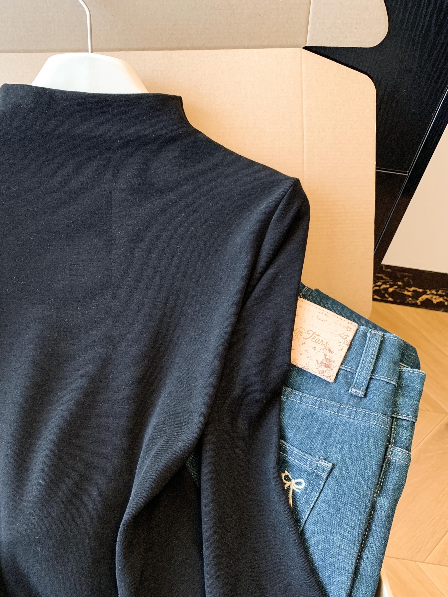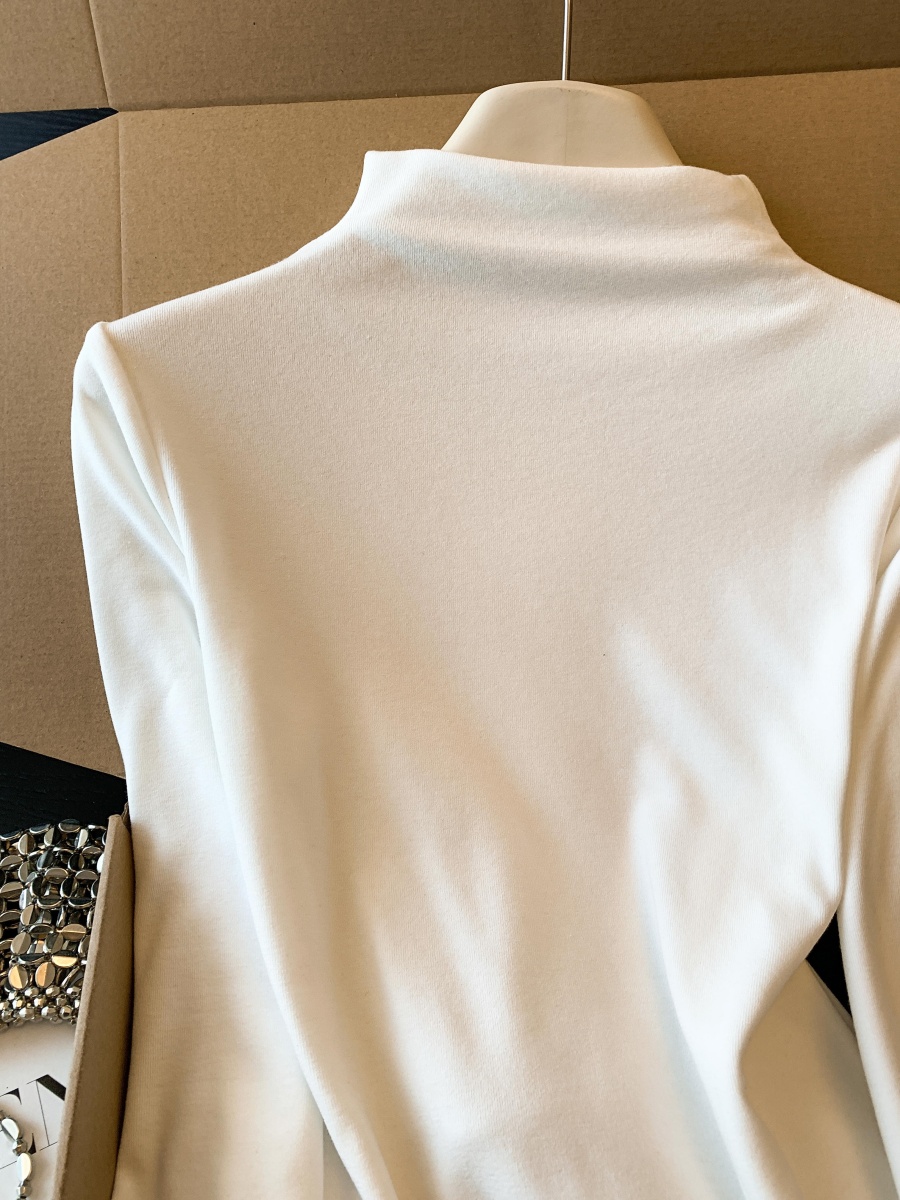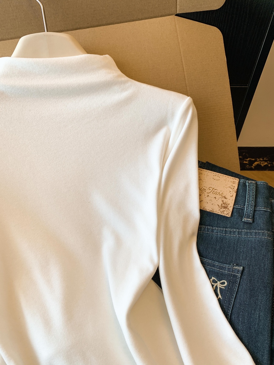 实拍春季设计感袖口毛毛百搭修身长袖上衣女