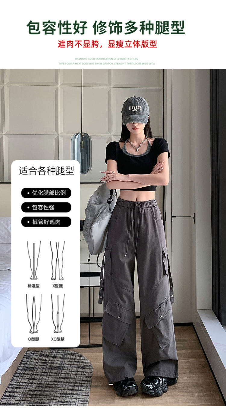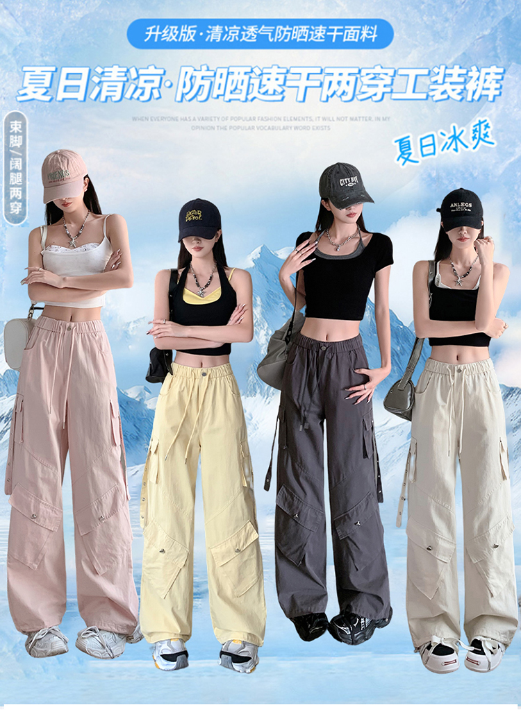 户外防晒美式阔腿伞兵工装裤春季潮牌宽松垂感直筒运动休闲裤男女