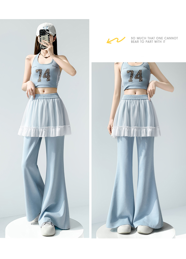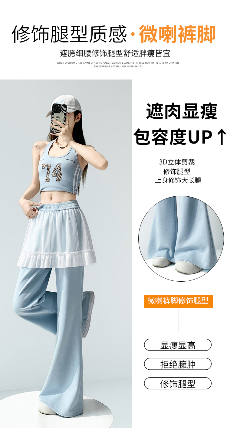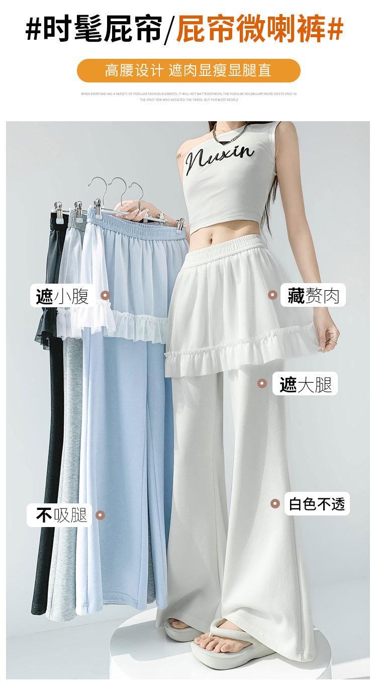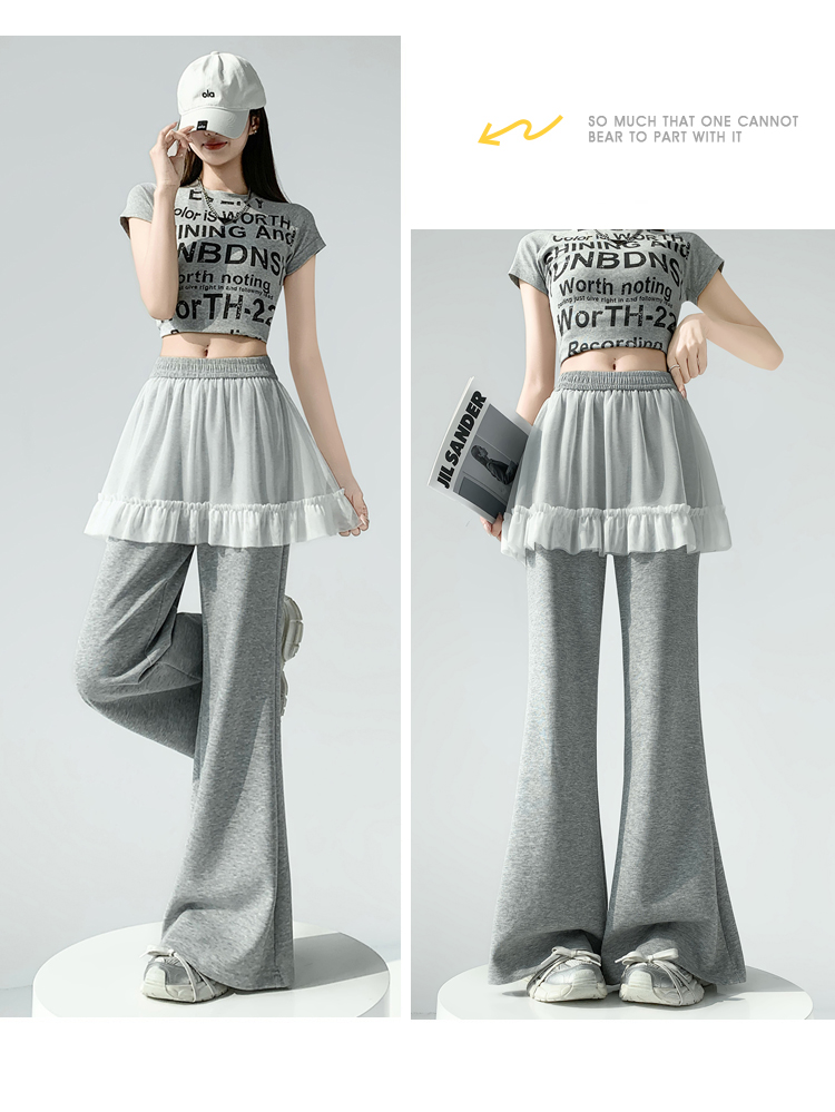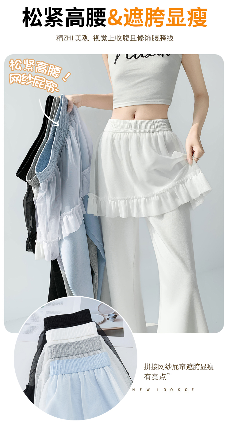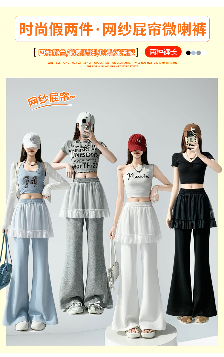 实拍网纱拼接屁帘空气棉微喇裤女2026春夏高腰显瘦休闲拖地喇叭裤