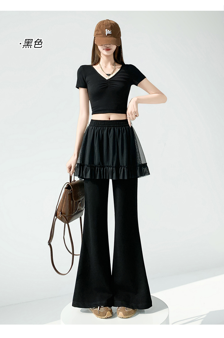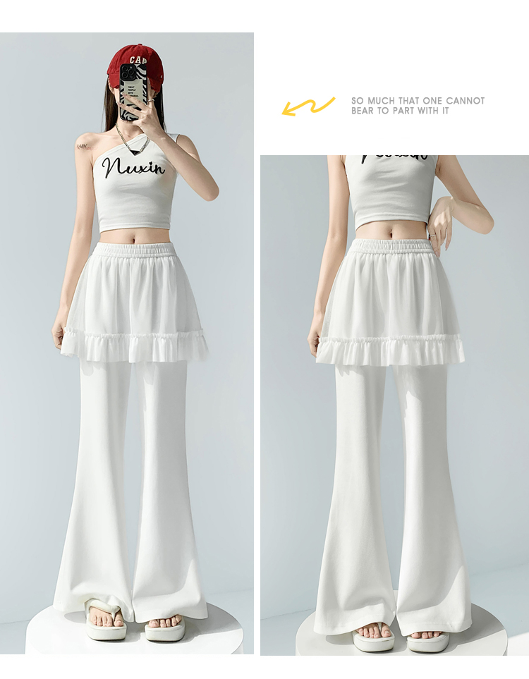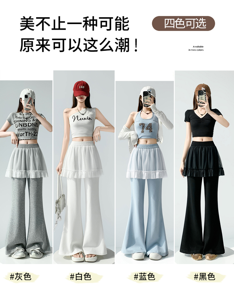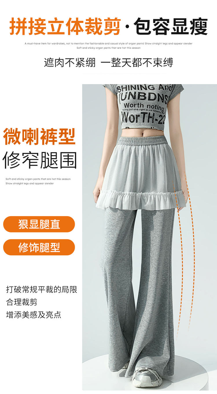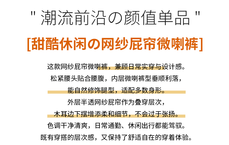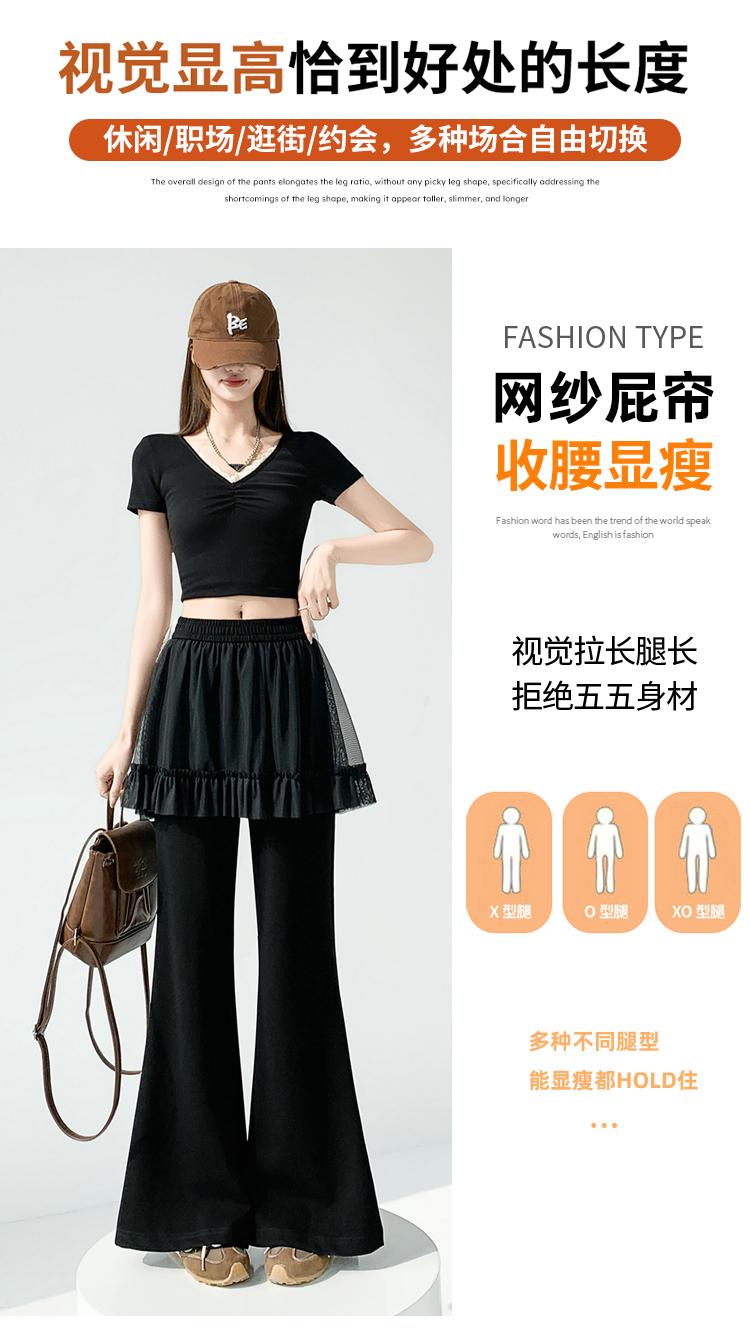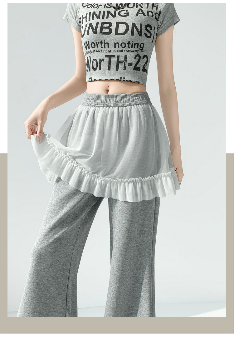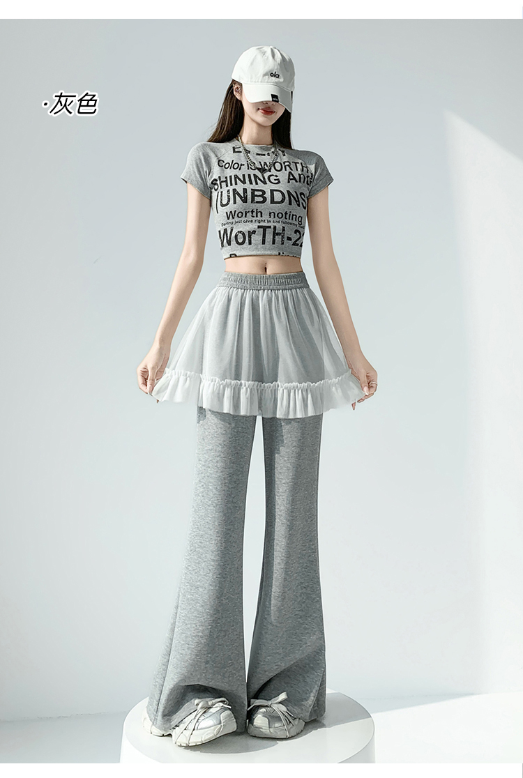 实拍网纱拼接屁帘空气棉微喇裤女2026春夏高腰显瘦休闲拖地喇叭裤