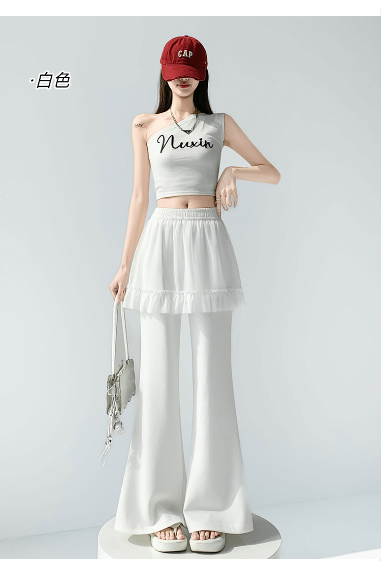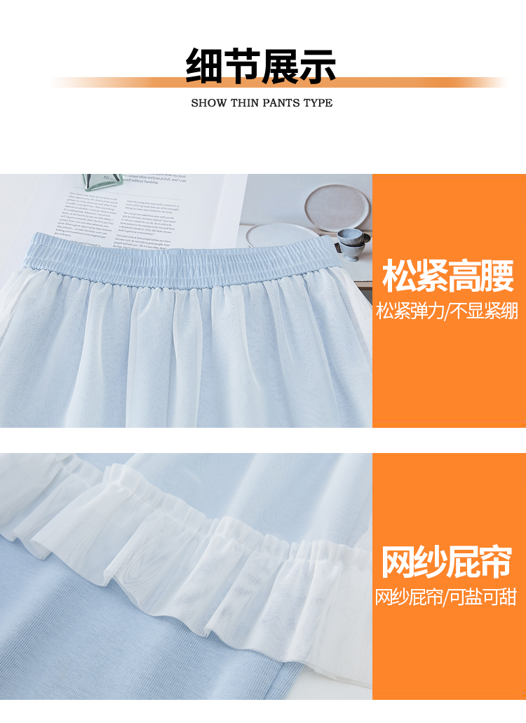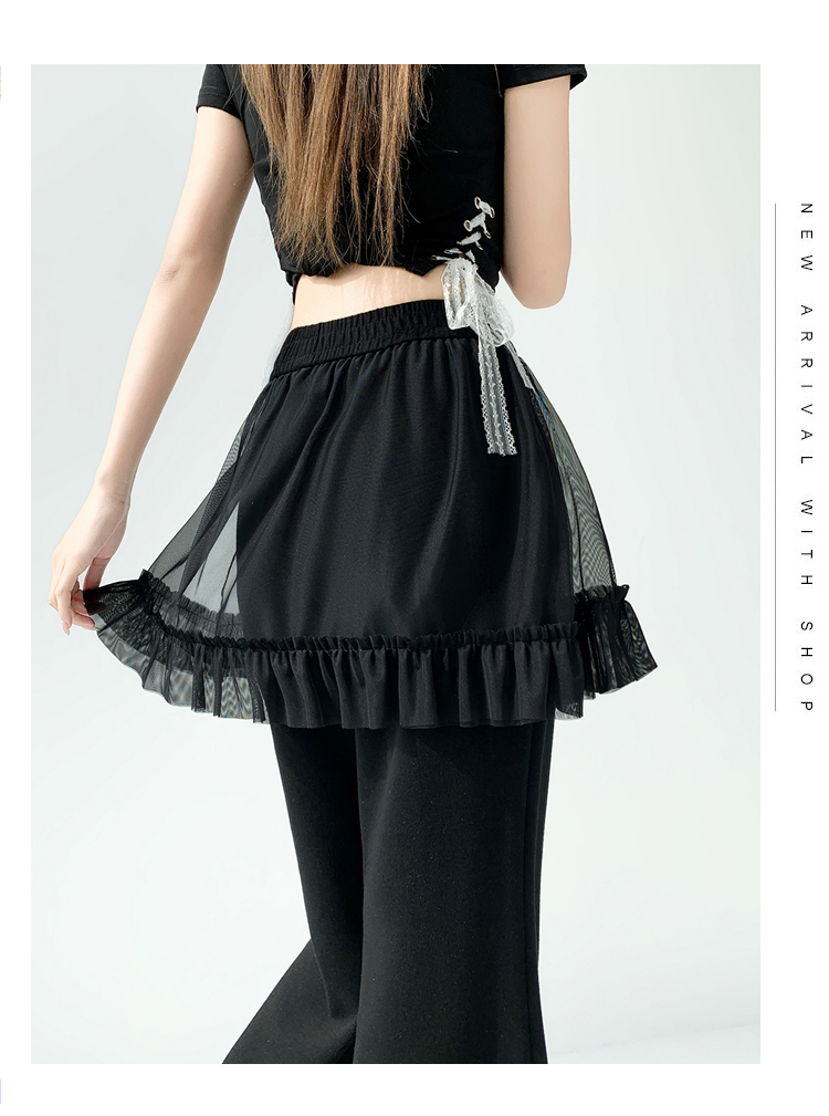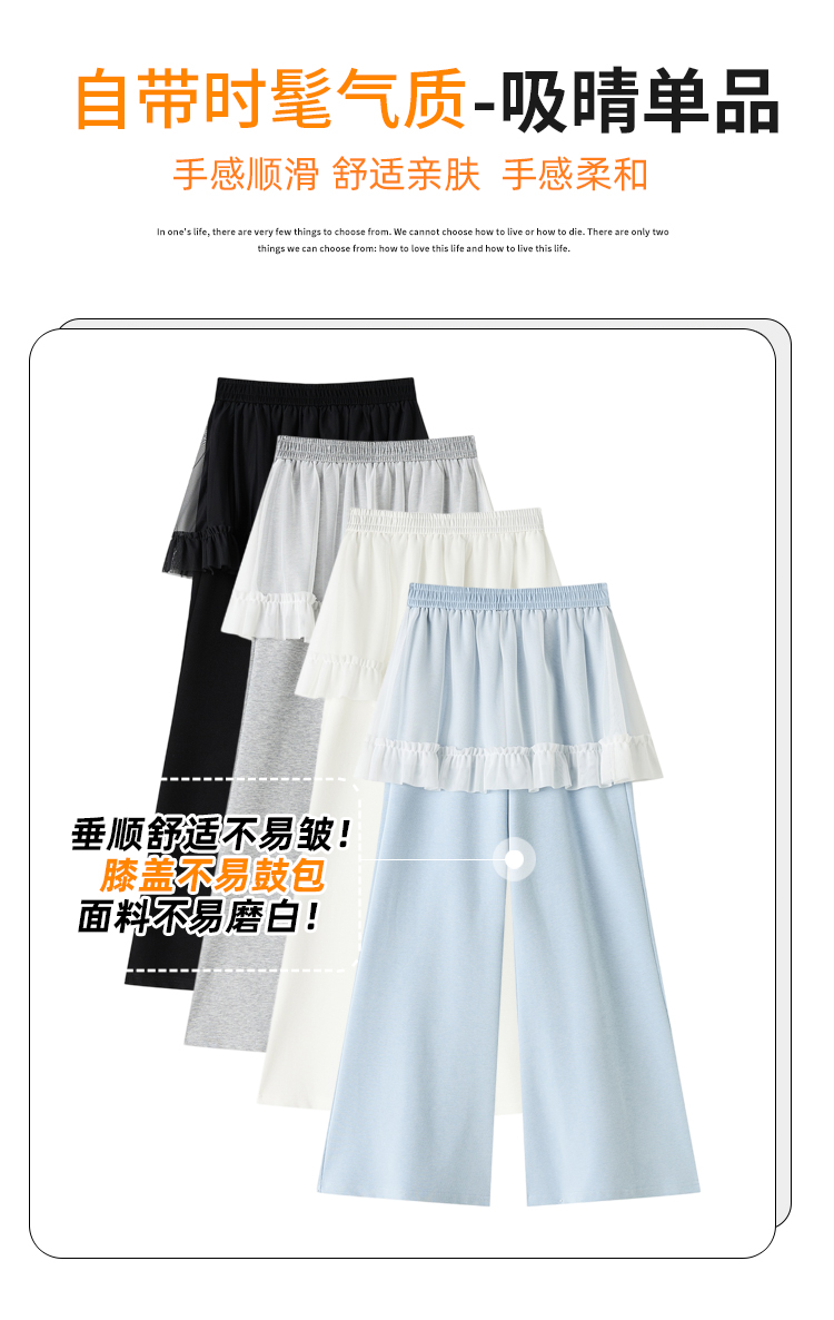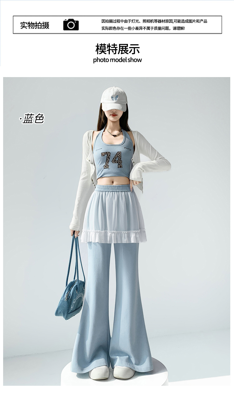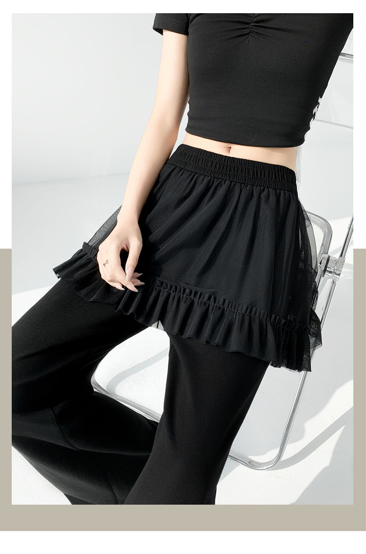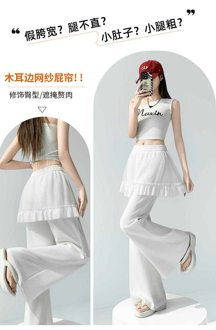 实拍网纱拼接屁帘空气棉微喇裤女2026春夏高腰显瘦休闲拖地喇叭裤