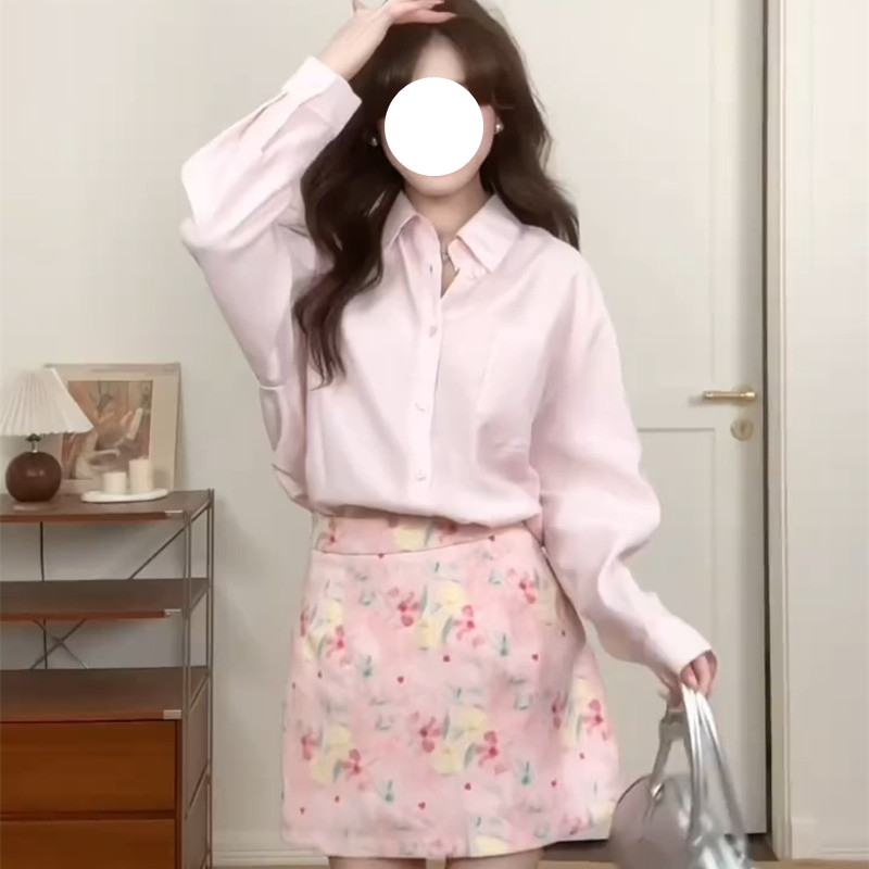 实拍中~韩系甜美感粉色长袖衬衫女春夏季宽松百搭气质衬衣