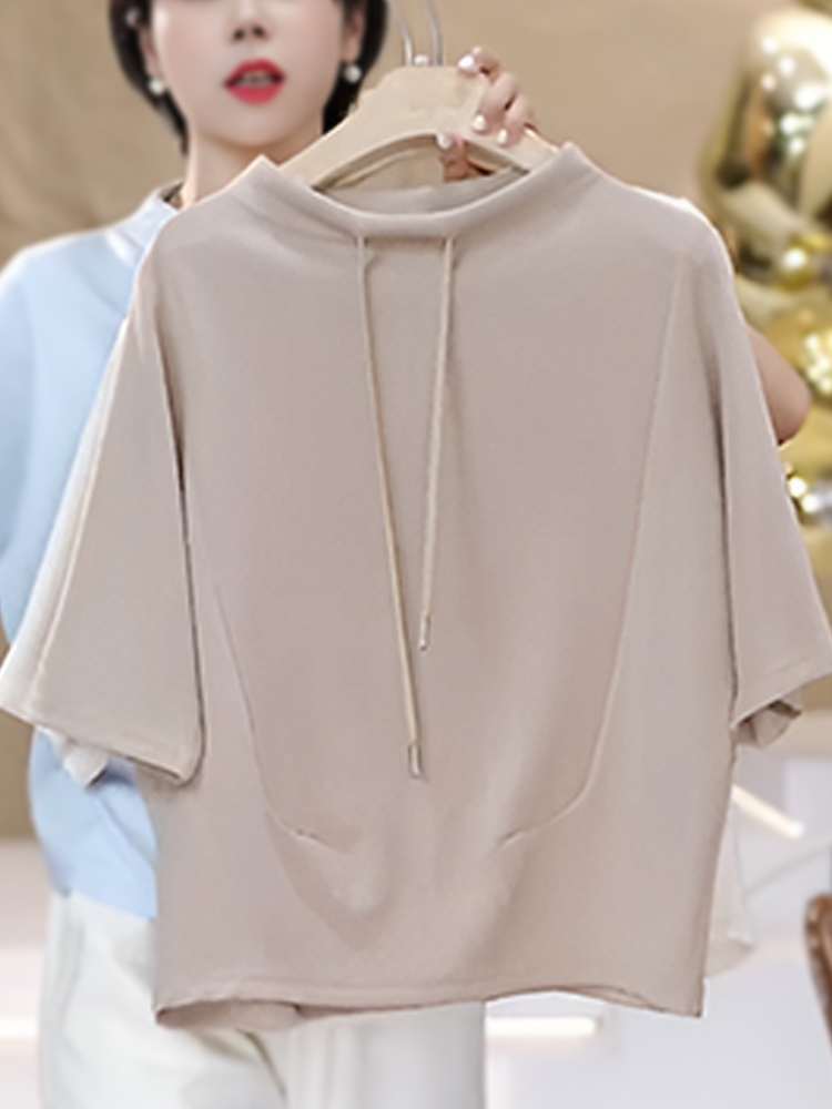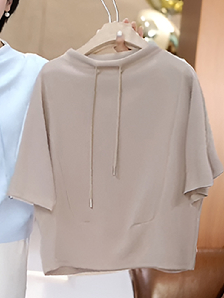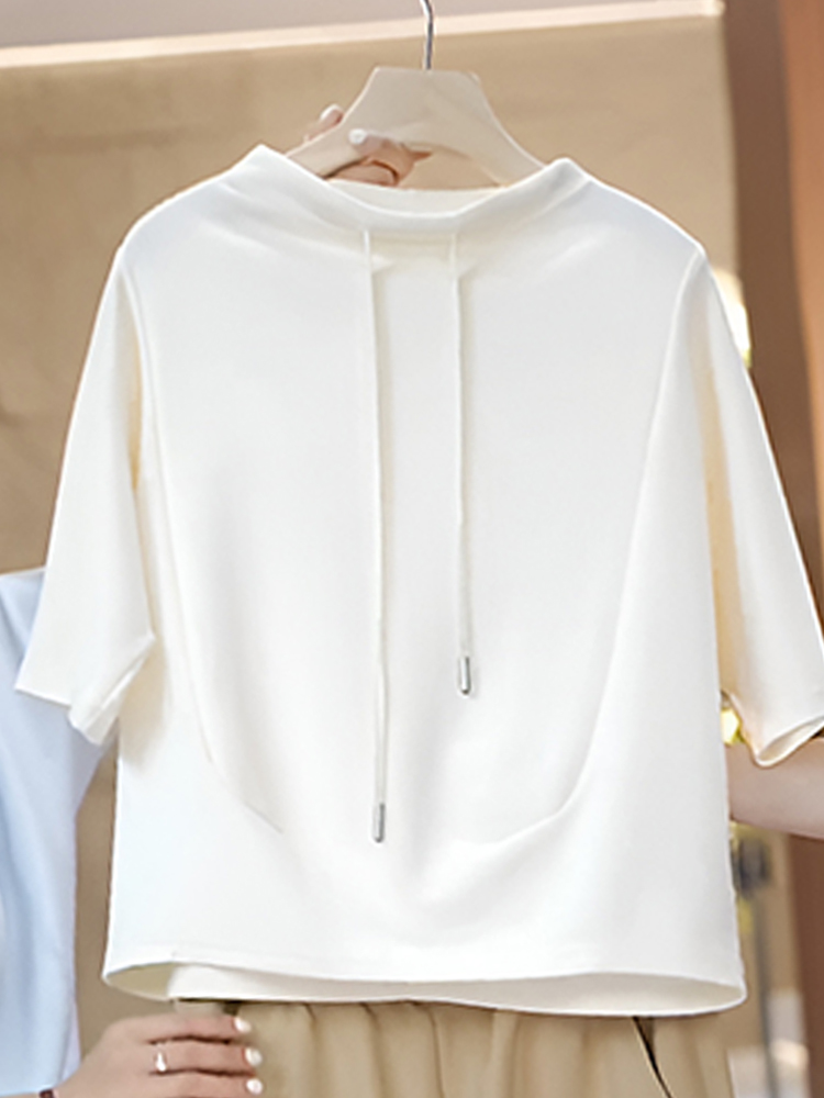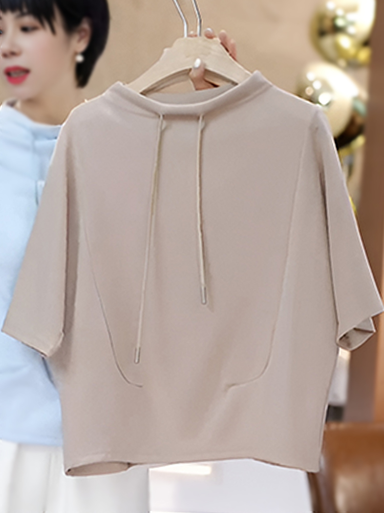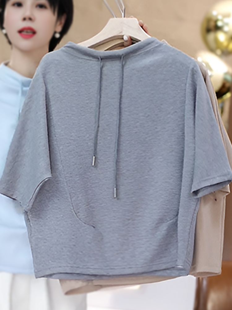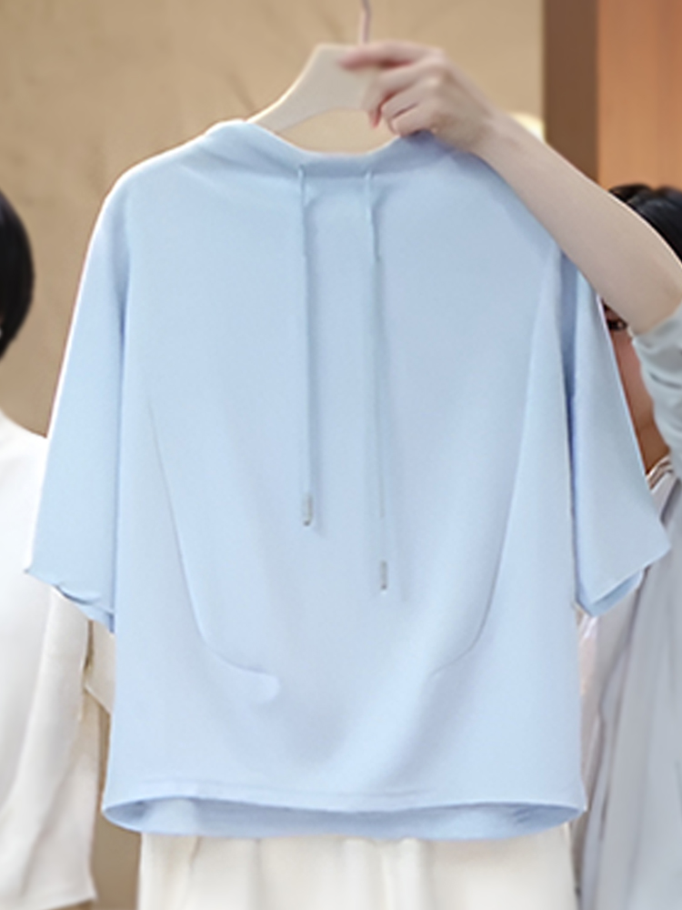 官图 高含棉时尚韩版抽绳短袖卫衣女2026夏季新款简约百搭上衣潮