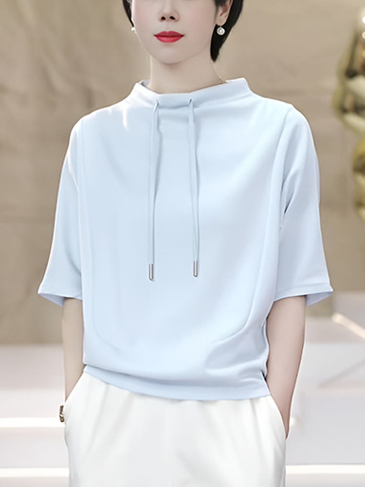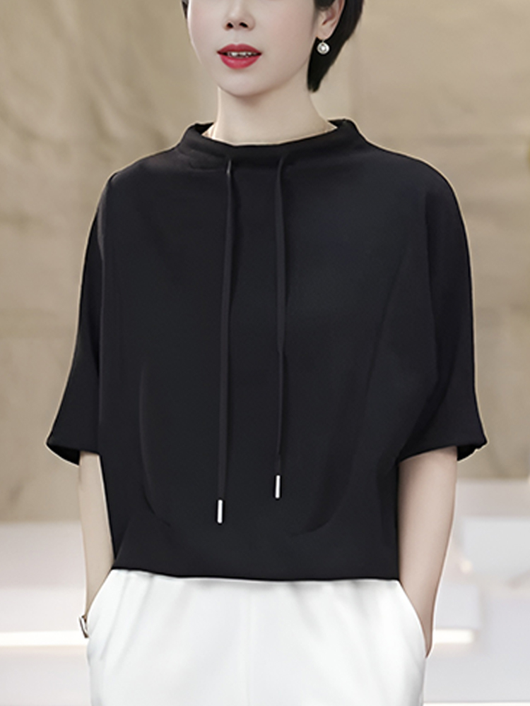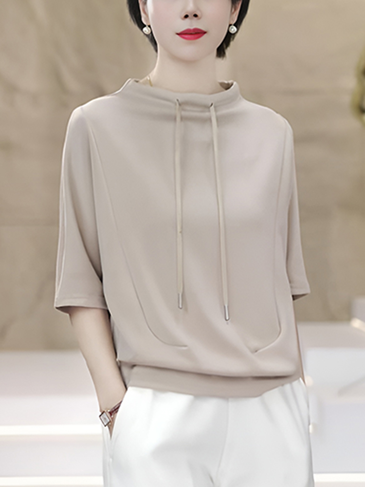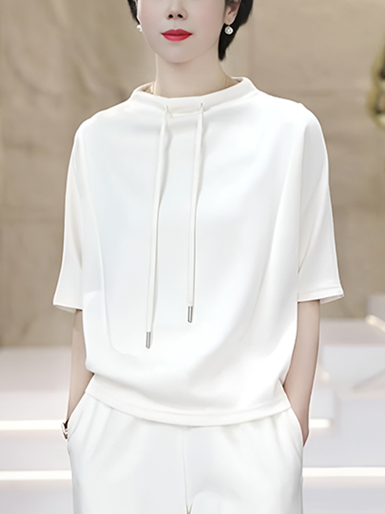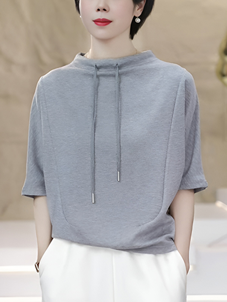 官图 高含棉时尚韩版抽绳短袖卫衣女2026夏季新款简约百搭上衣潮