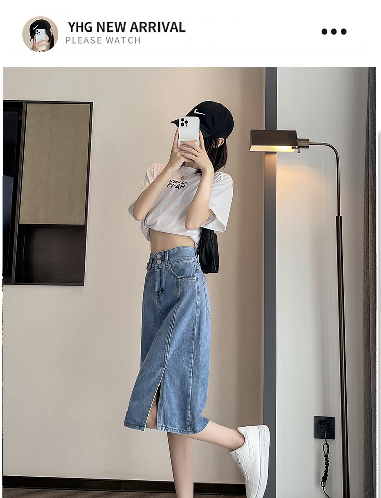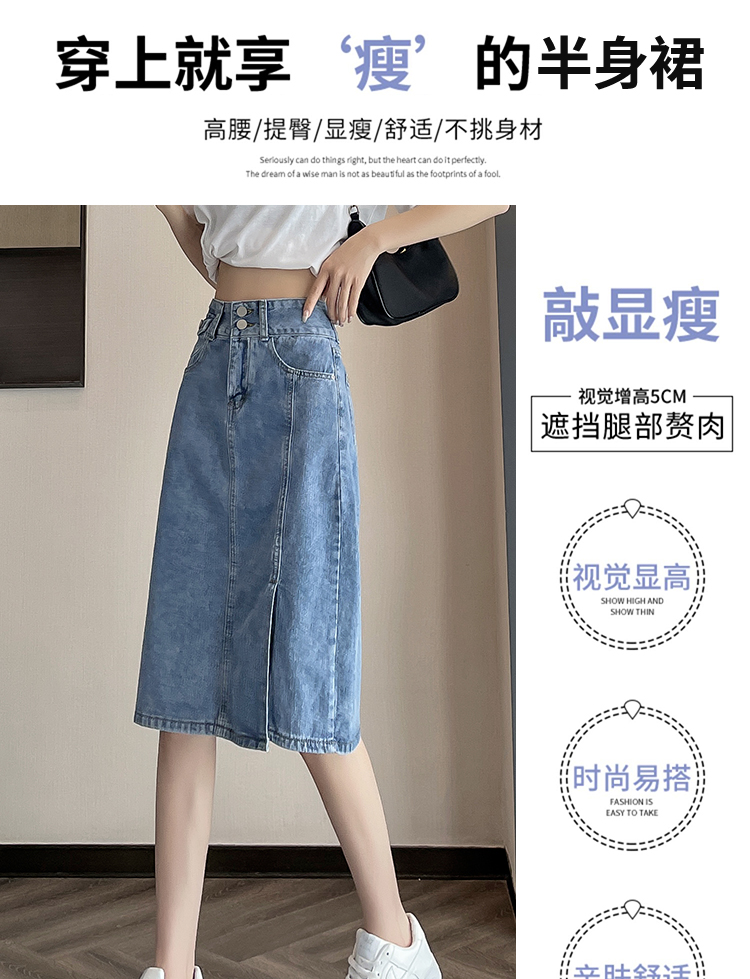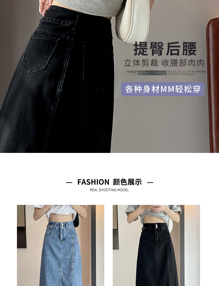 美式牛仔半身裙女春秋新款2026年夏季新款高腰中长款a字包臀裙子