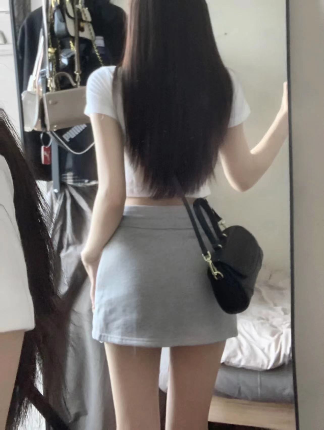 夏季小个子茶系穿搭白色短袖t恤包臀短裙纯欲风甜辣妹两件套装女