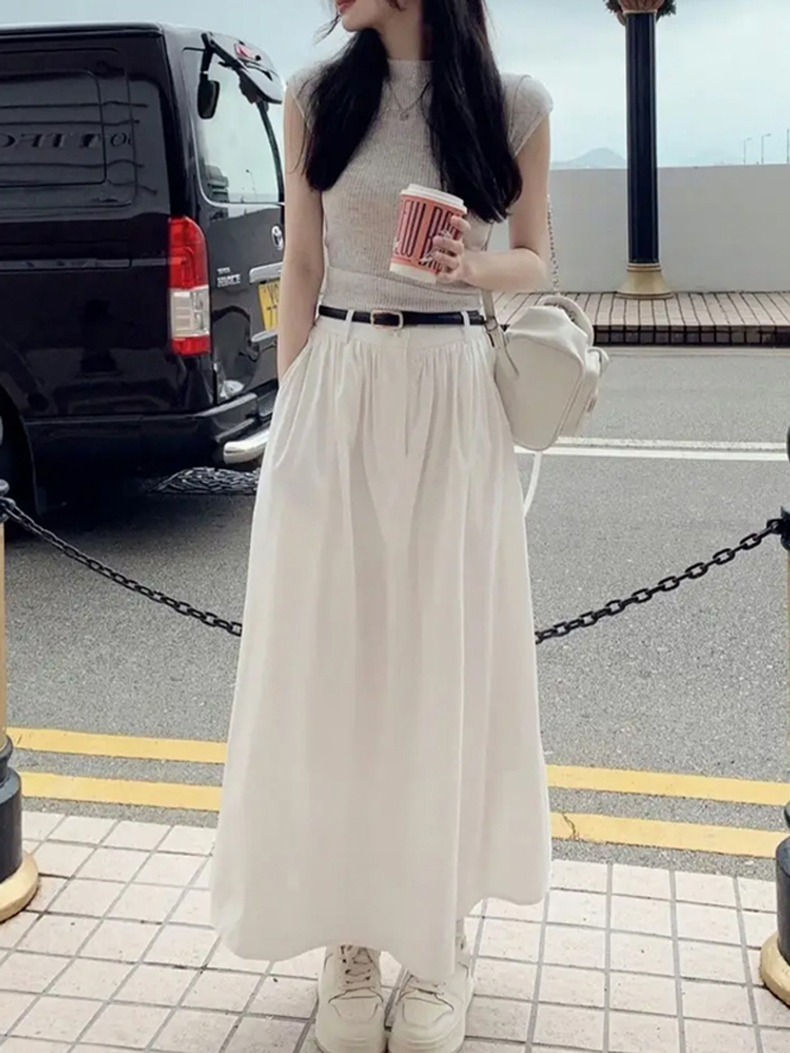 法式新款甜美气质针织衫+高腰摆裙套装