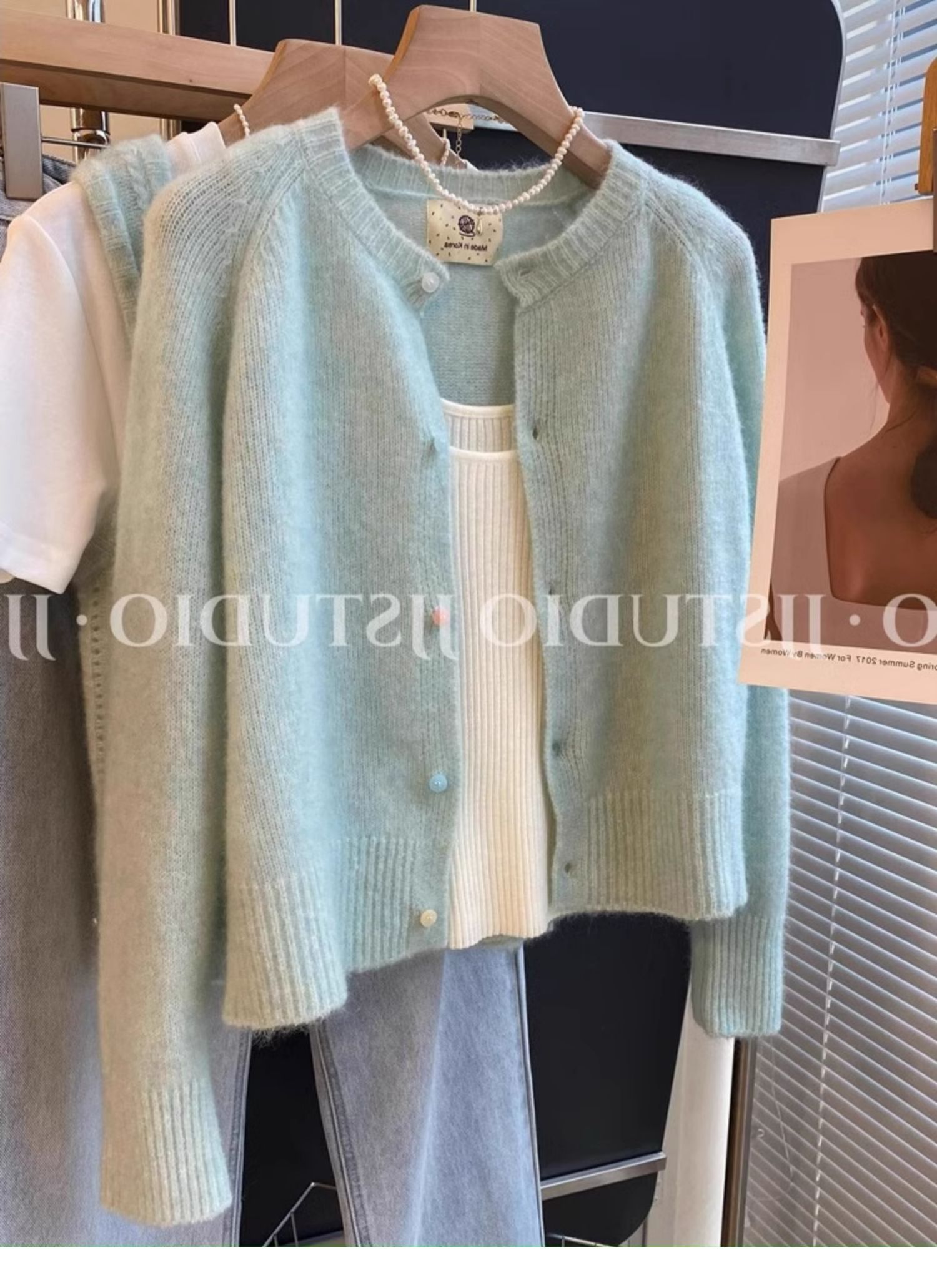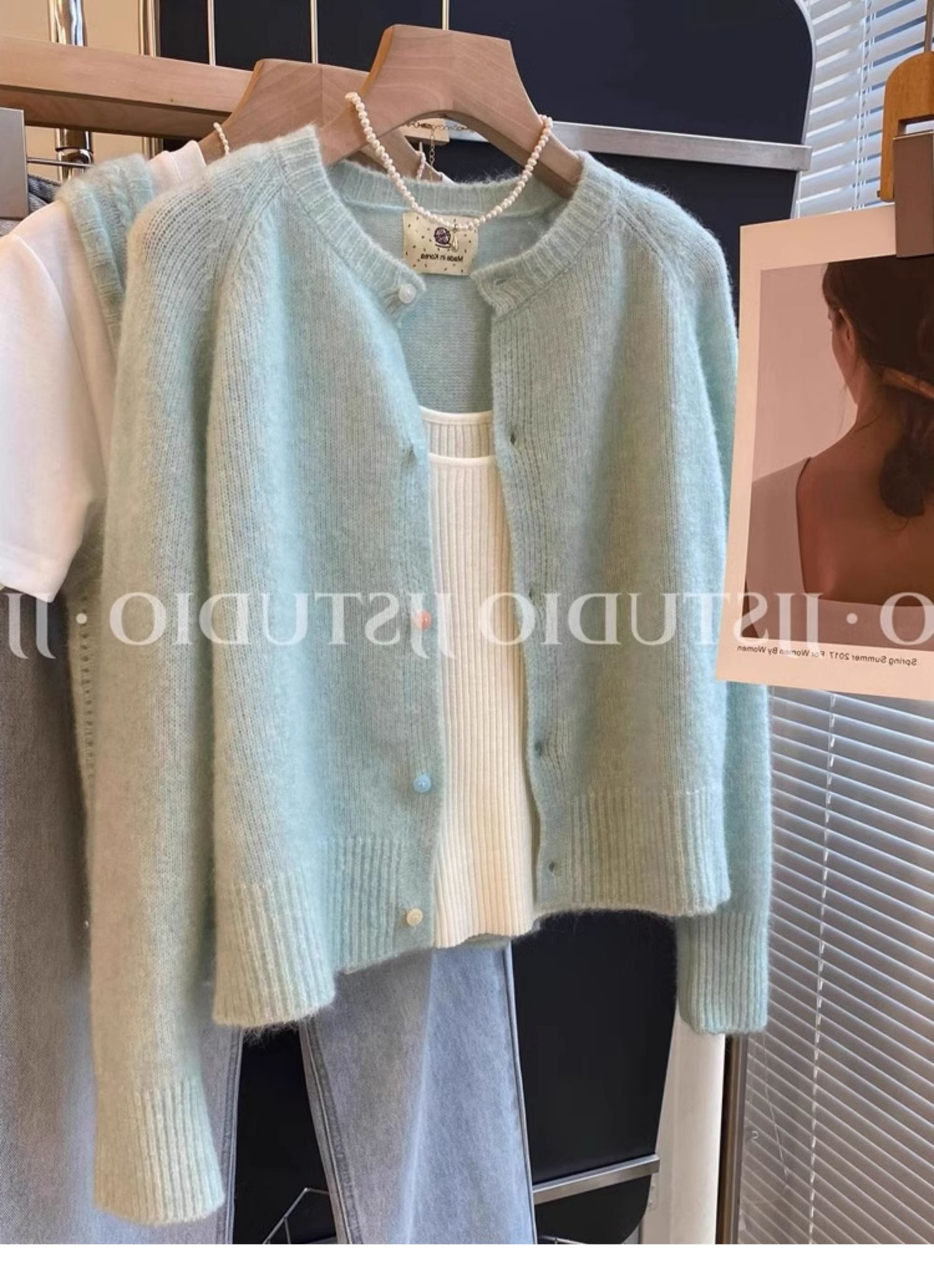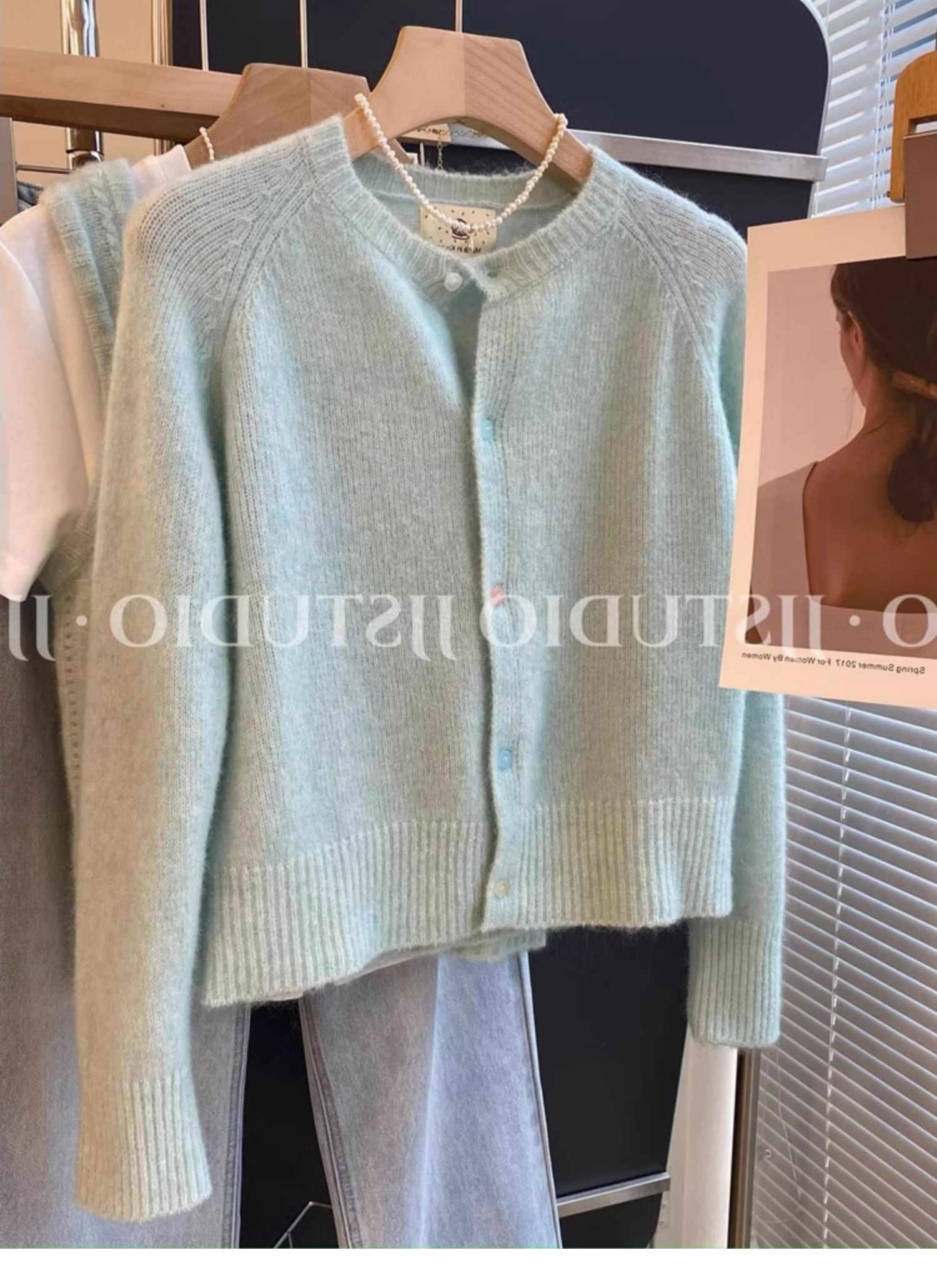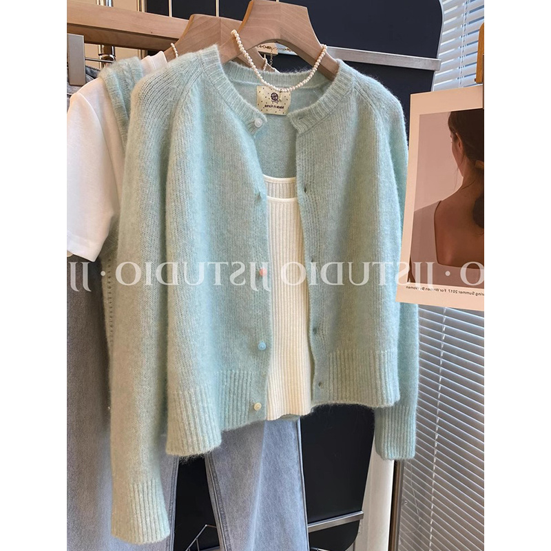 2026春季新款圆领小众设计感马海毛针织开衫薄款单排扣外套上衣