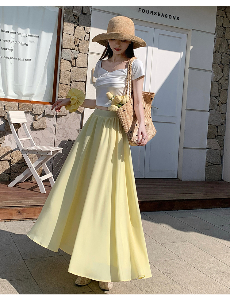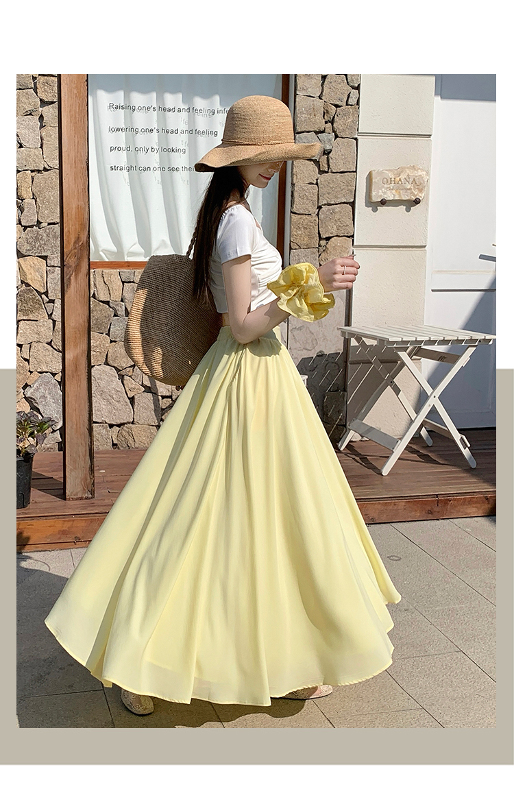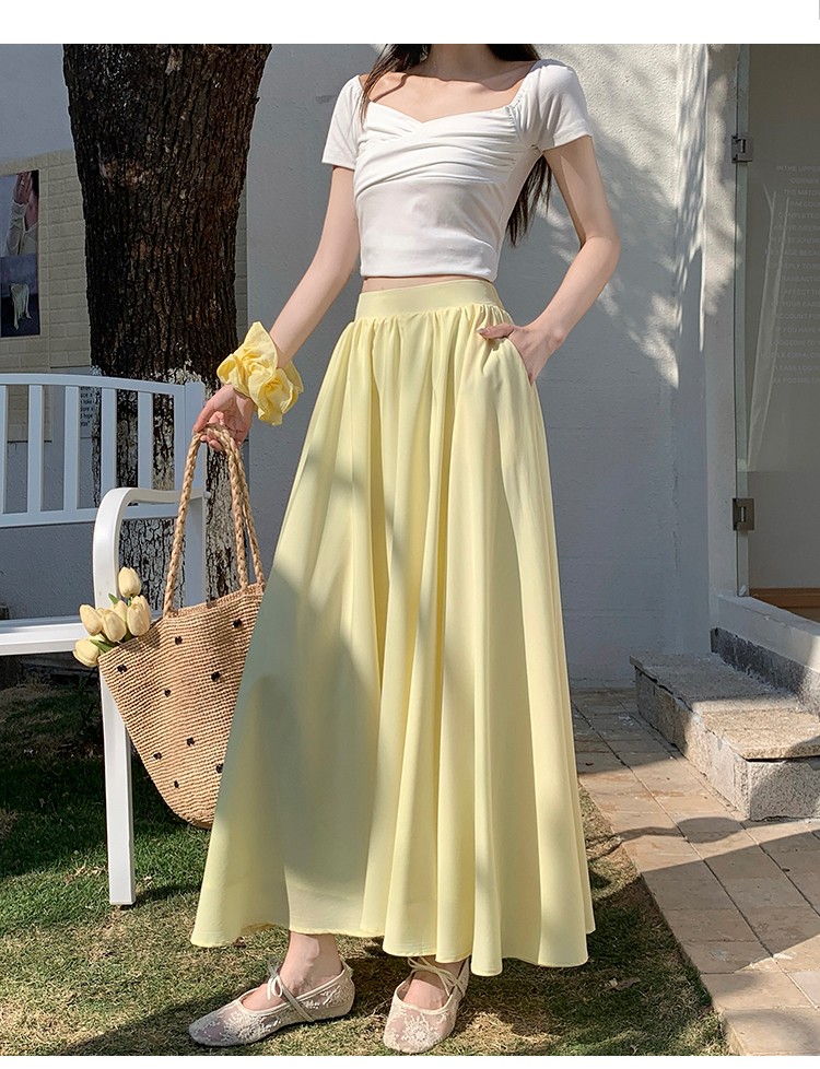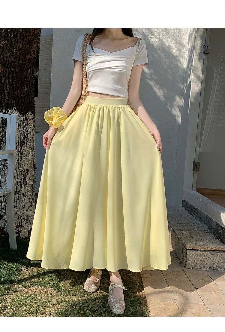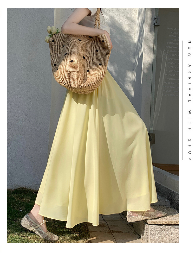 鹅黄色法式半身裙女2026春高腰显瘦a字赫本风伞裙多巴胺大摆长裙