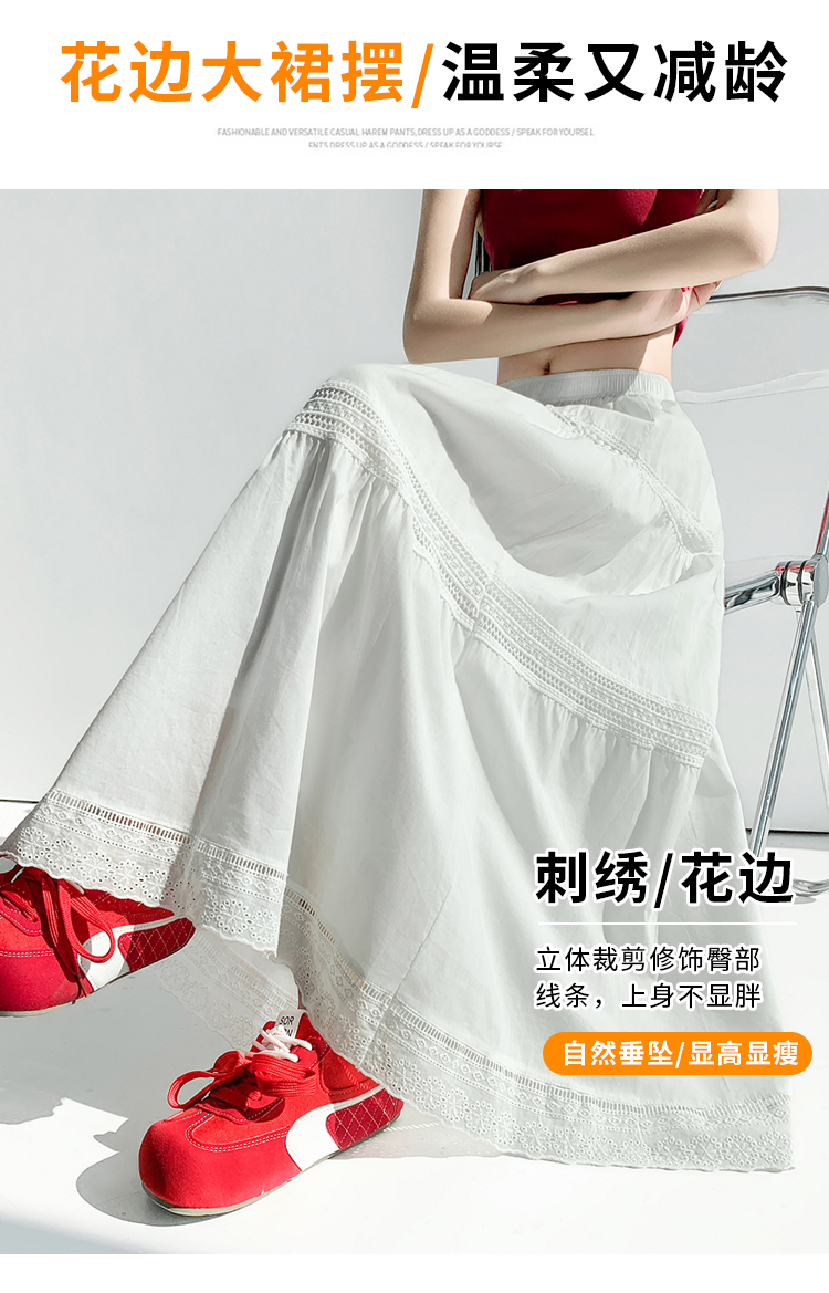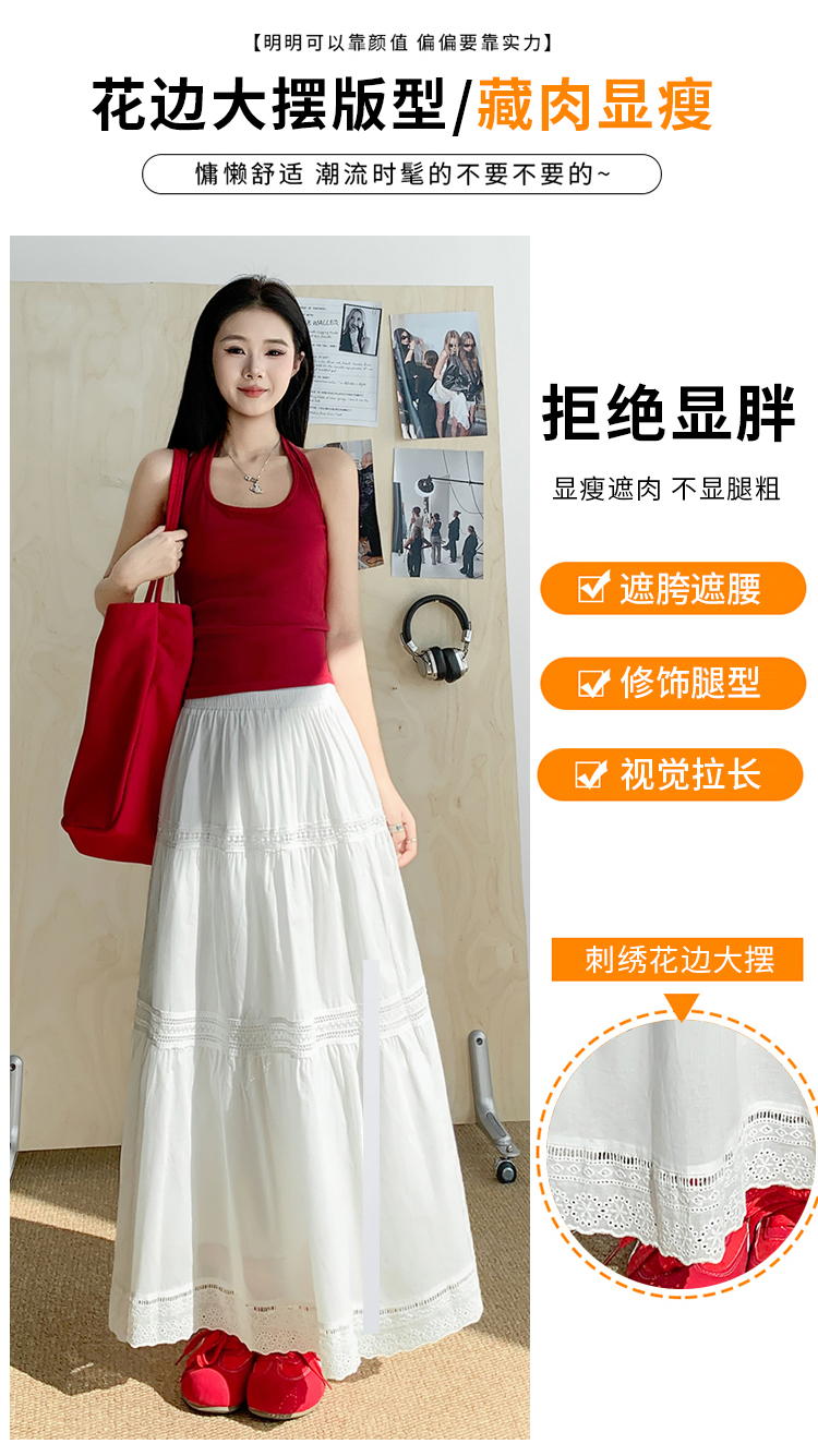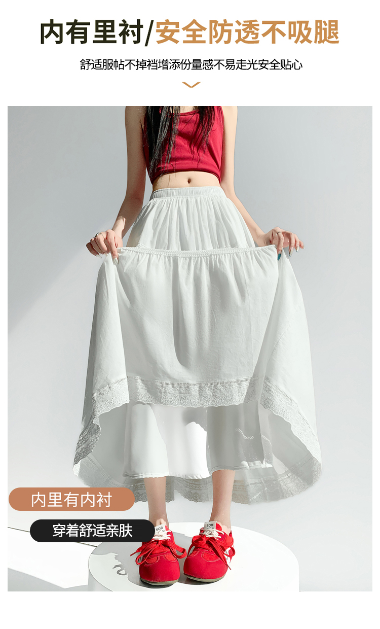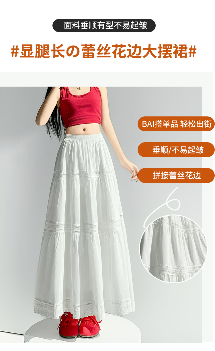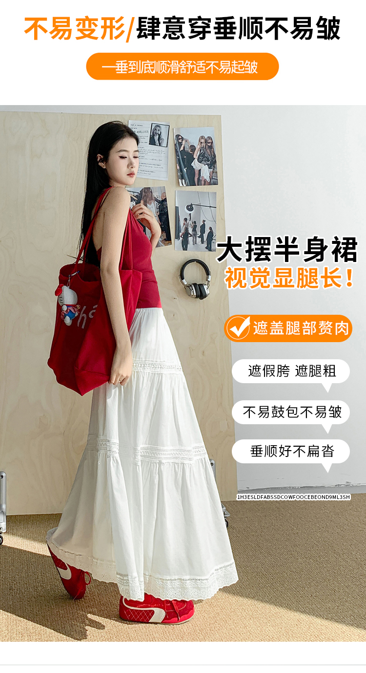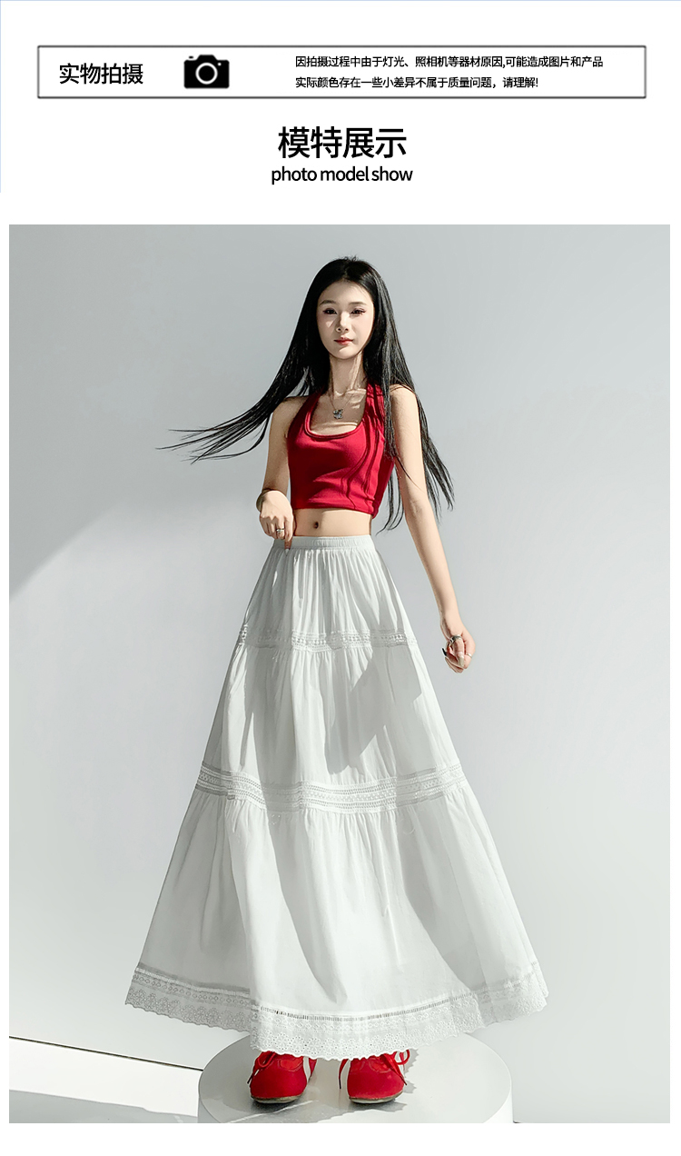 实拍 白色半身裙女2026夏A字大摆裙中长款蛋糕裙蕾丝花边蓬蓬伞裙