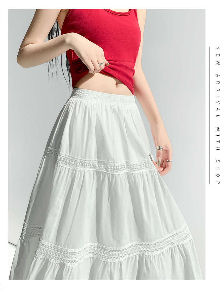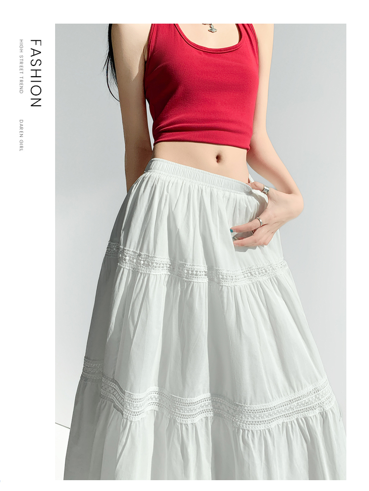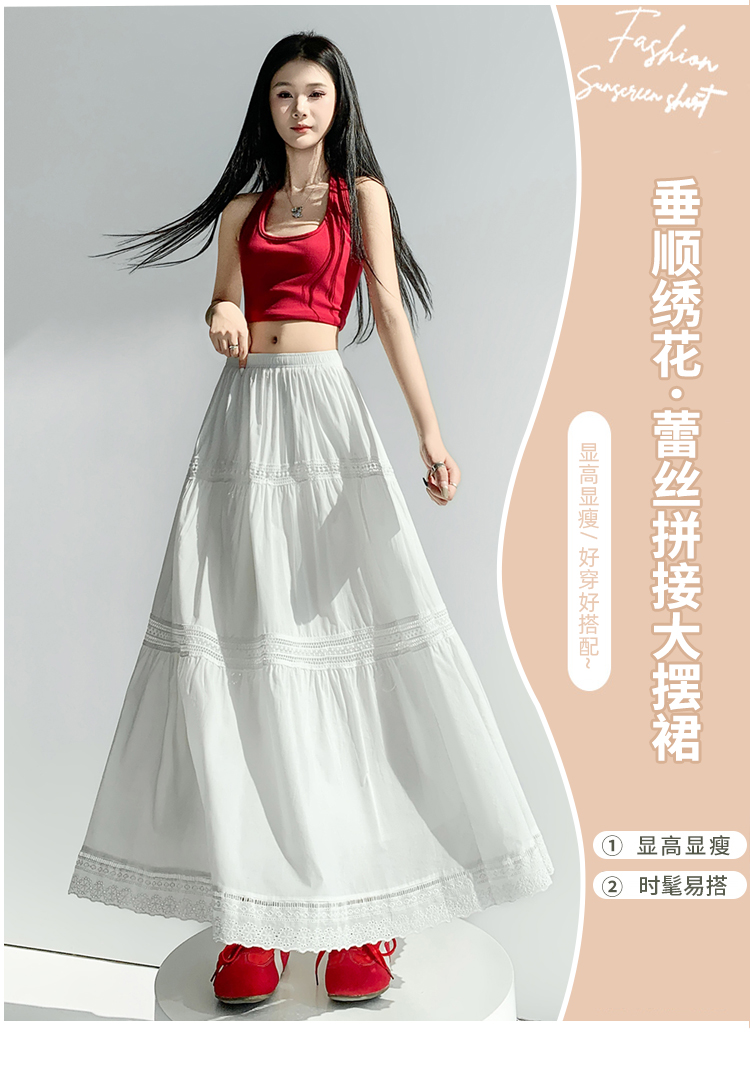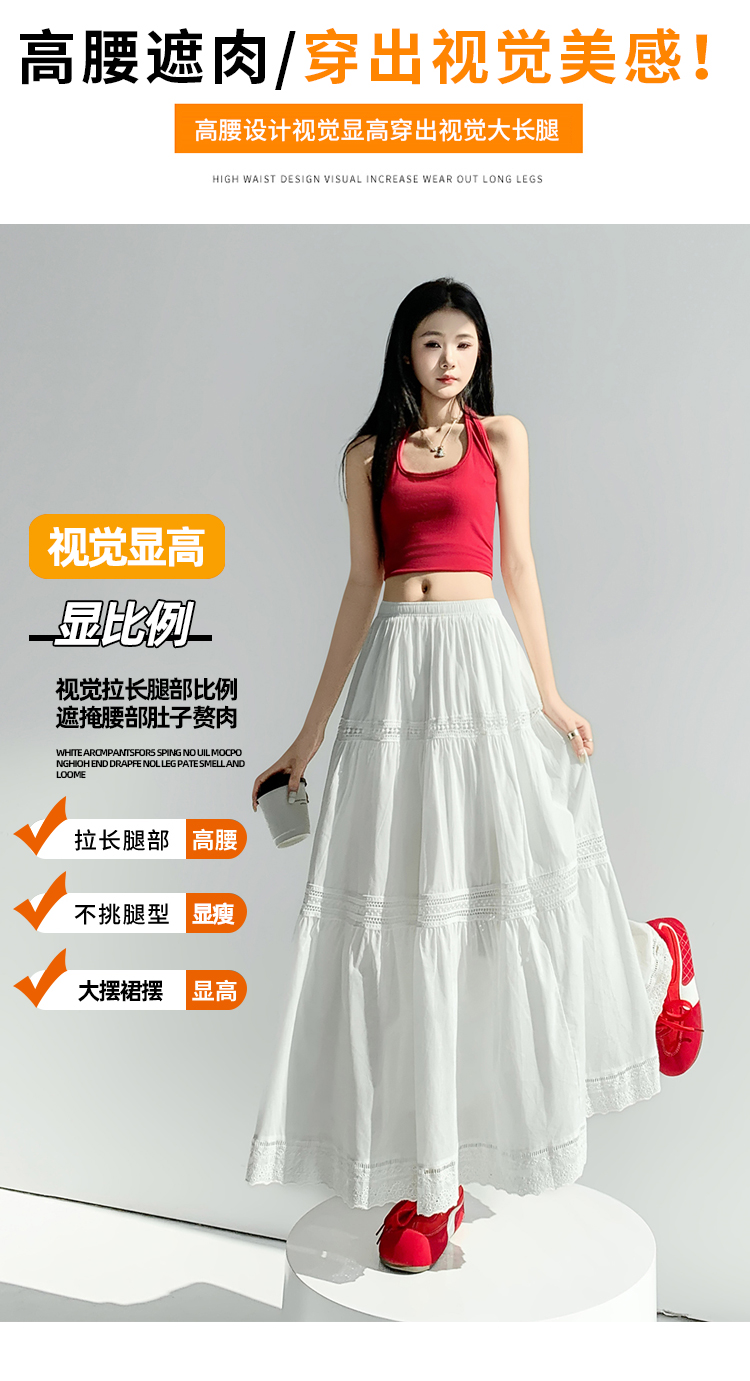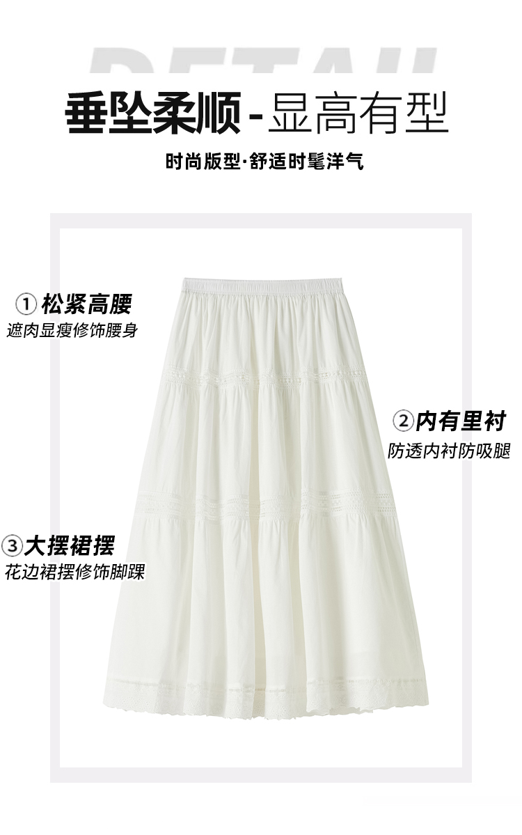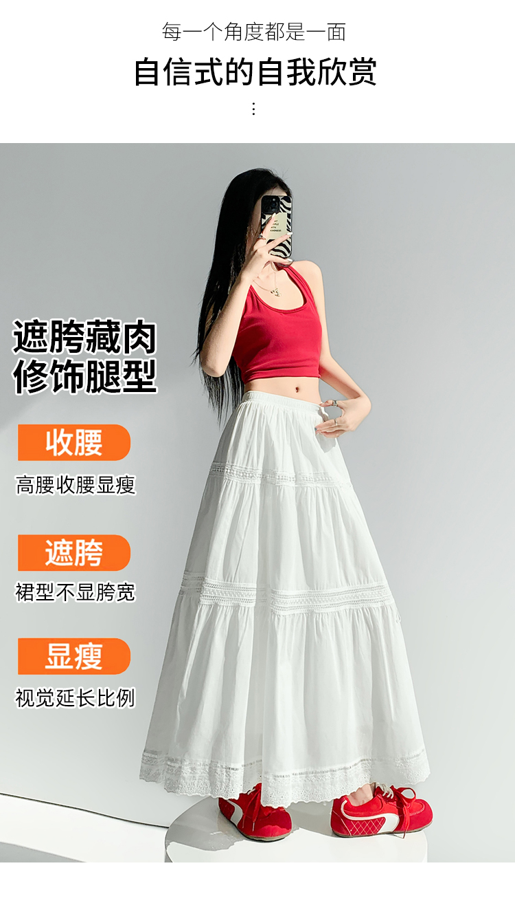 实拍 白色半身裙女2026夏A字大摆裙中长款蛋糕裙蕾丝花边蓬蓬伞裙