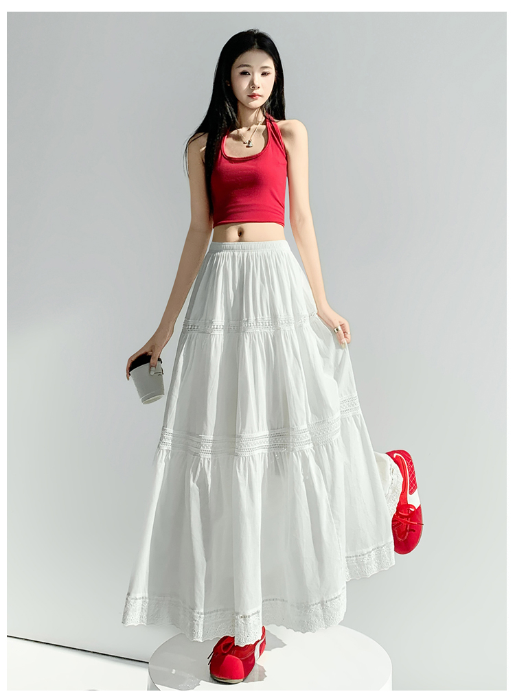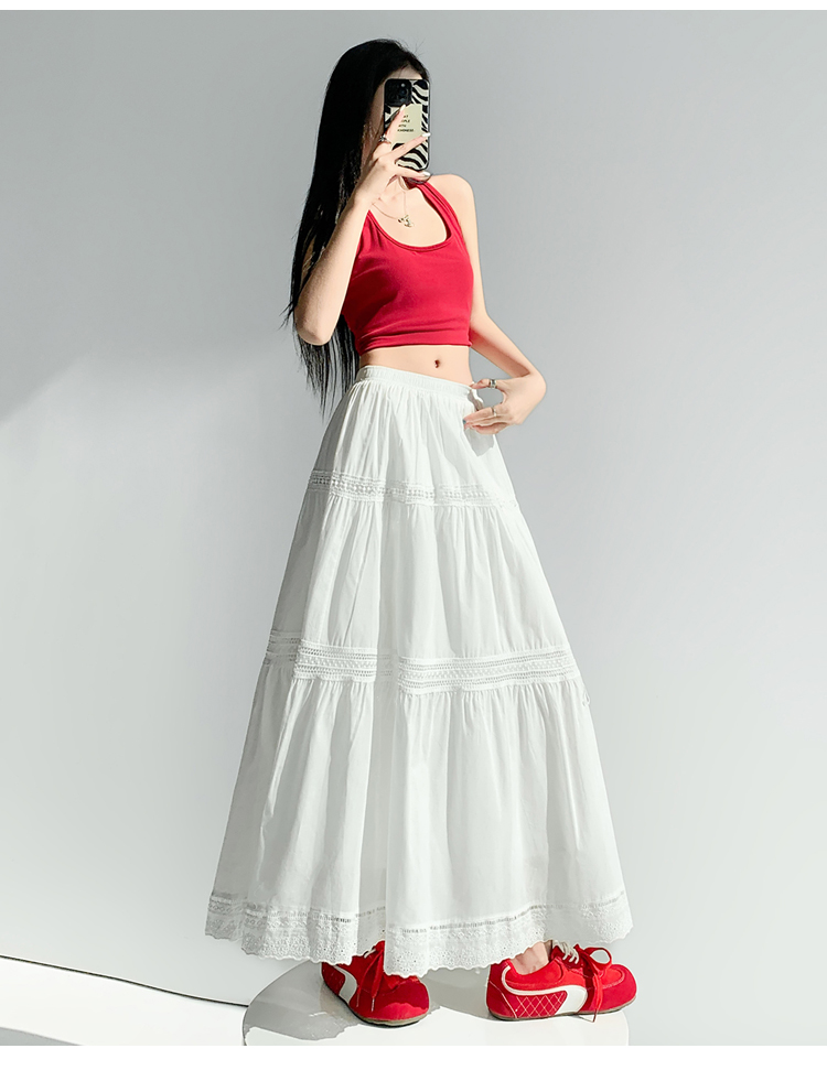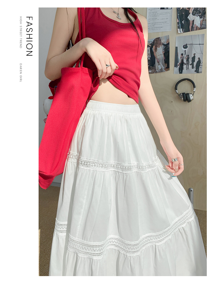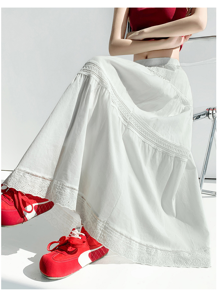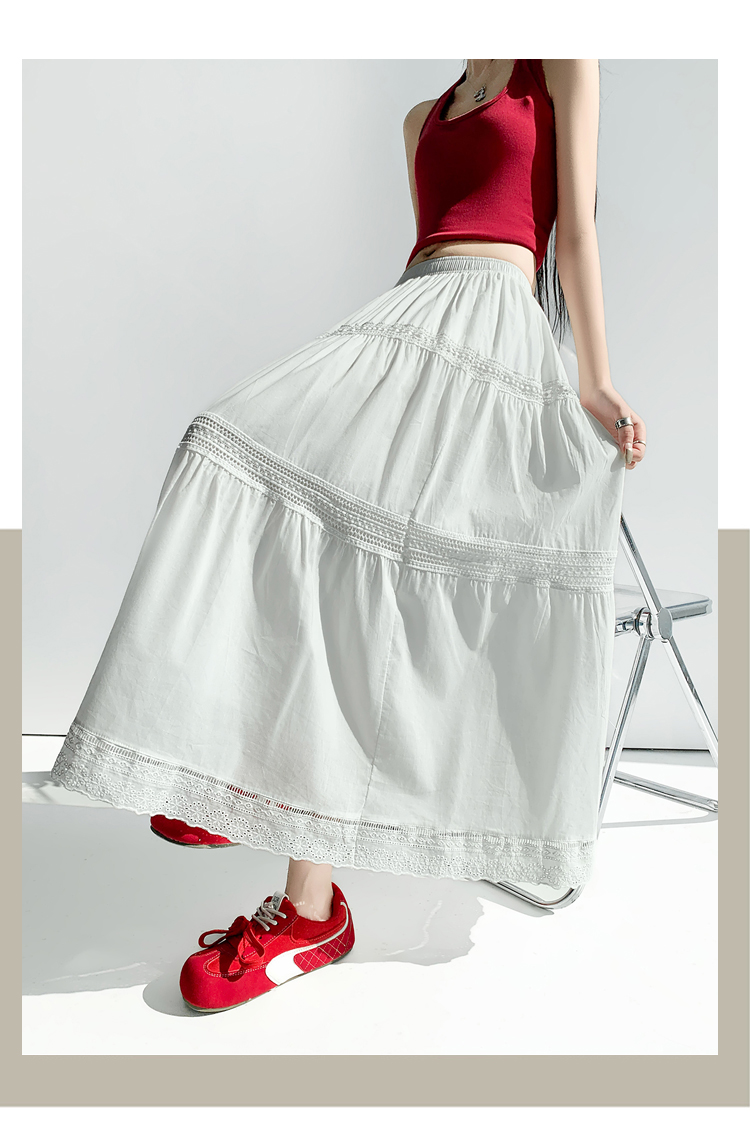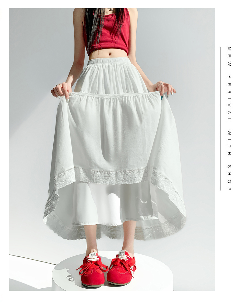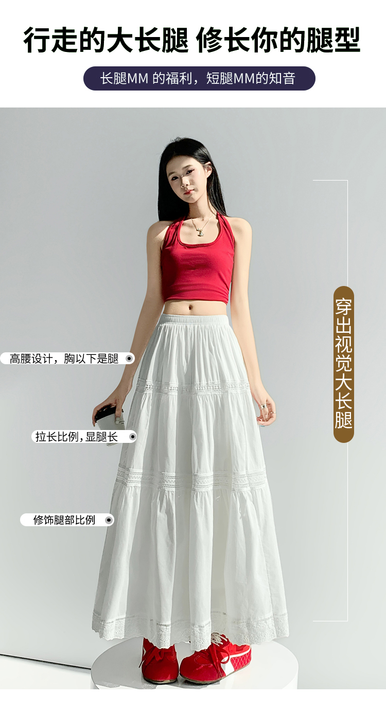 实拍 白色半身裙女2026夏A字大摆裙中长款蛋糕裙蕾丝花边蓬蓬伞裙
