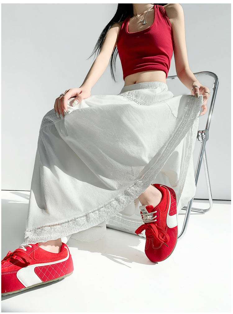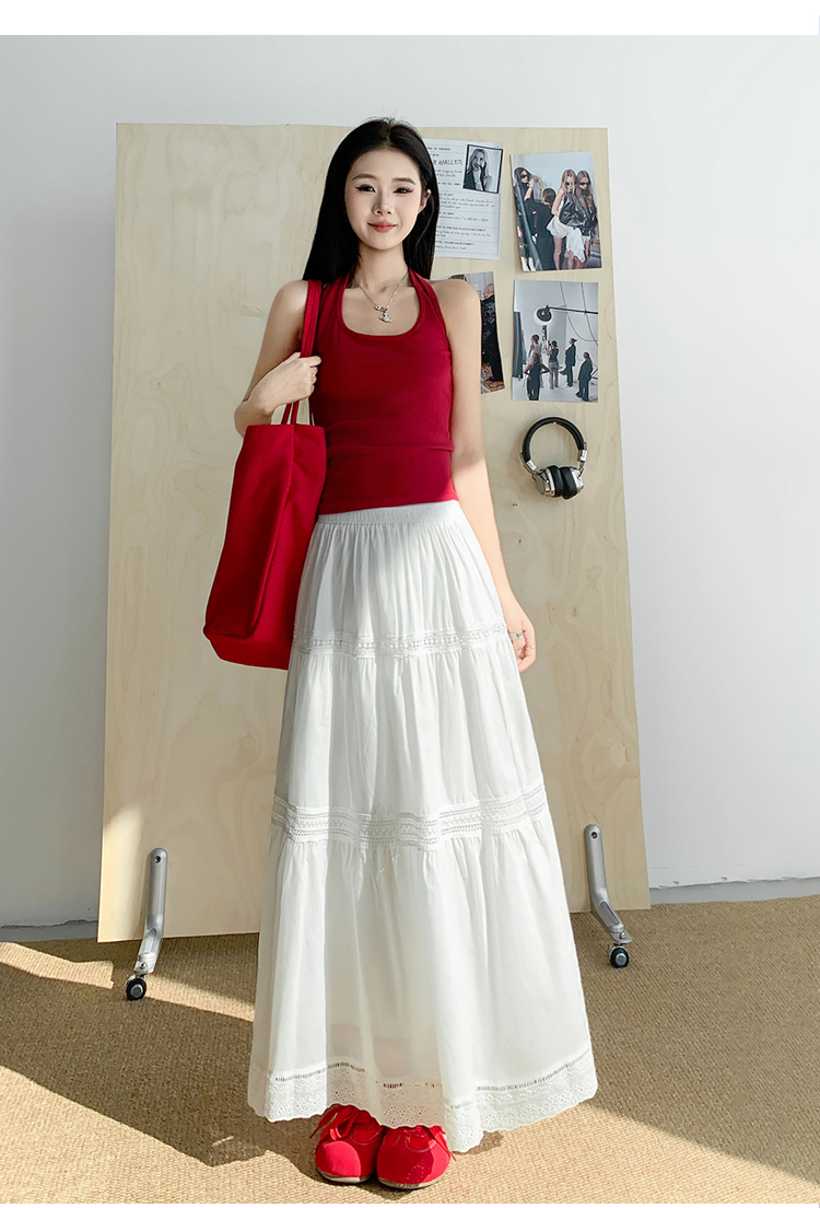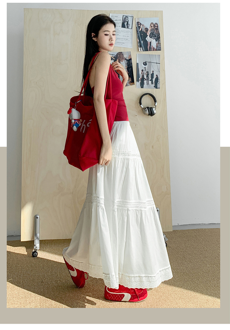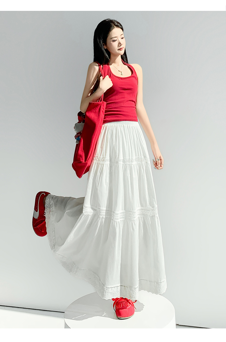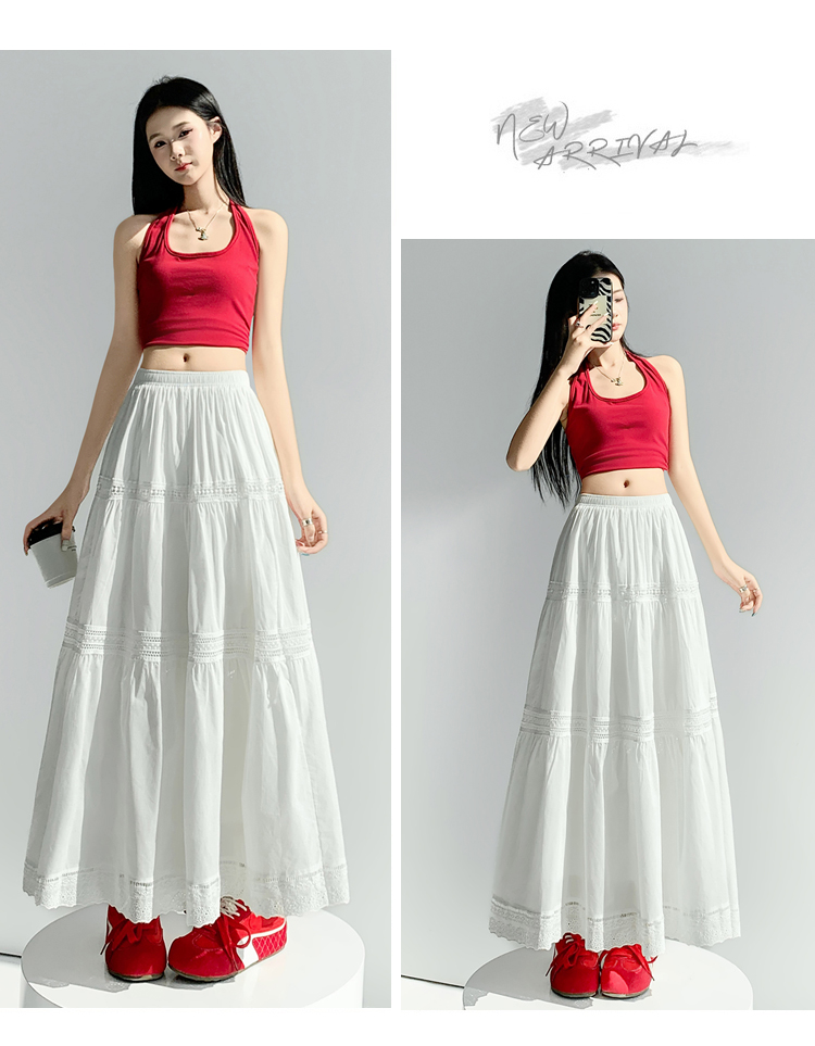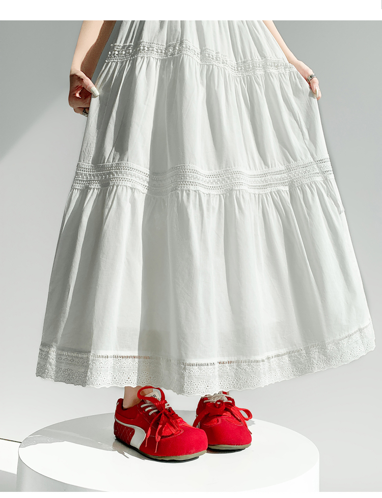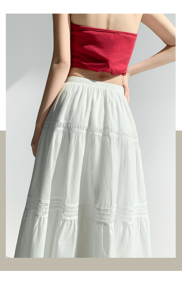 实拍 白色半身裙女2026夏A字大摆裙中长款蛋糕裙蕾丝花边蓬蓬伞裙