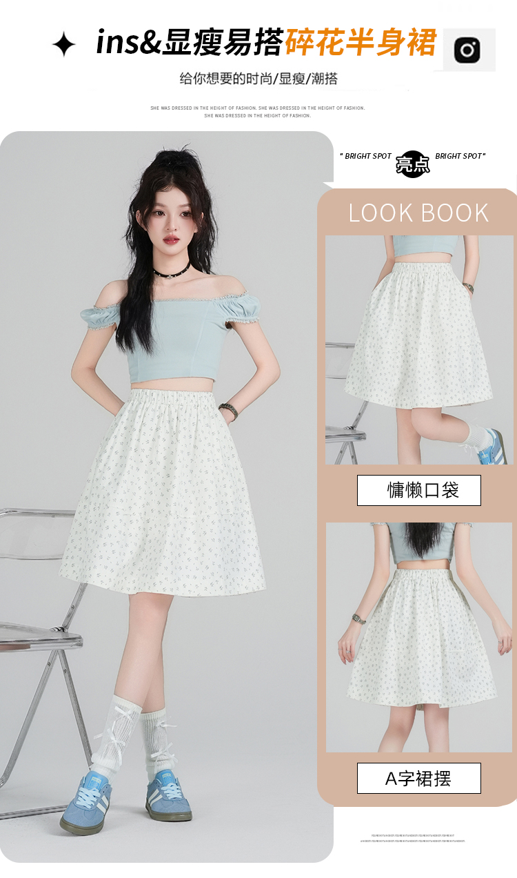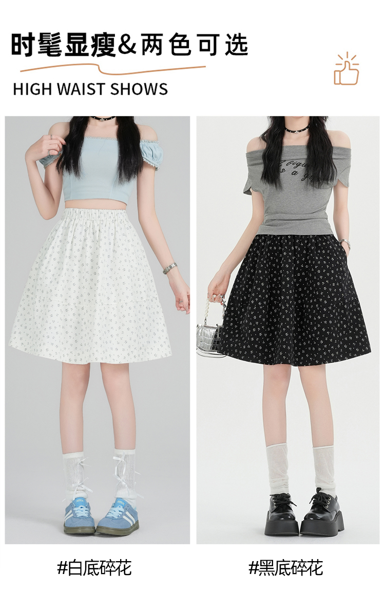 实拍碎花短裙女2026春夏新款中裙松紧腰高腰显瘦a字蓬蓬半身裙女