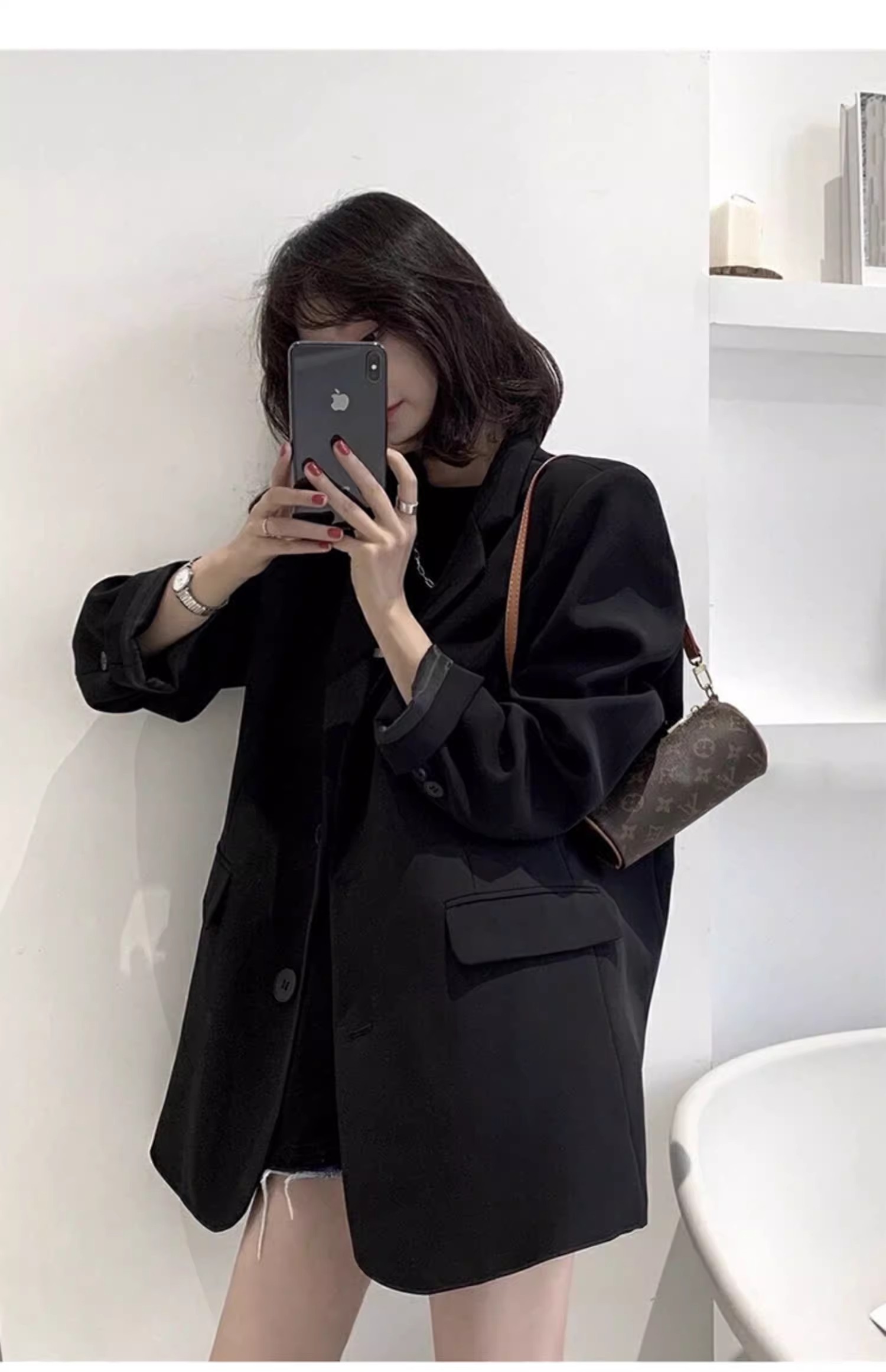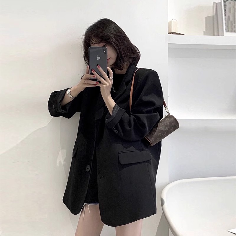 原版做法高级感黑色西装外套女早春秋新款韩版宽松小个子西服上衣
