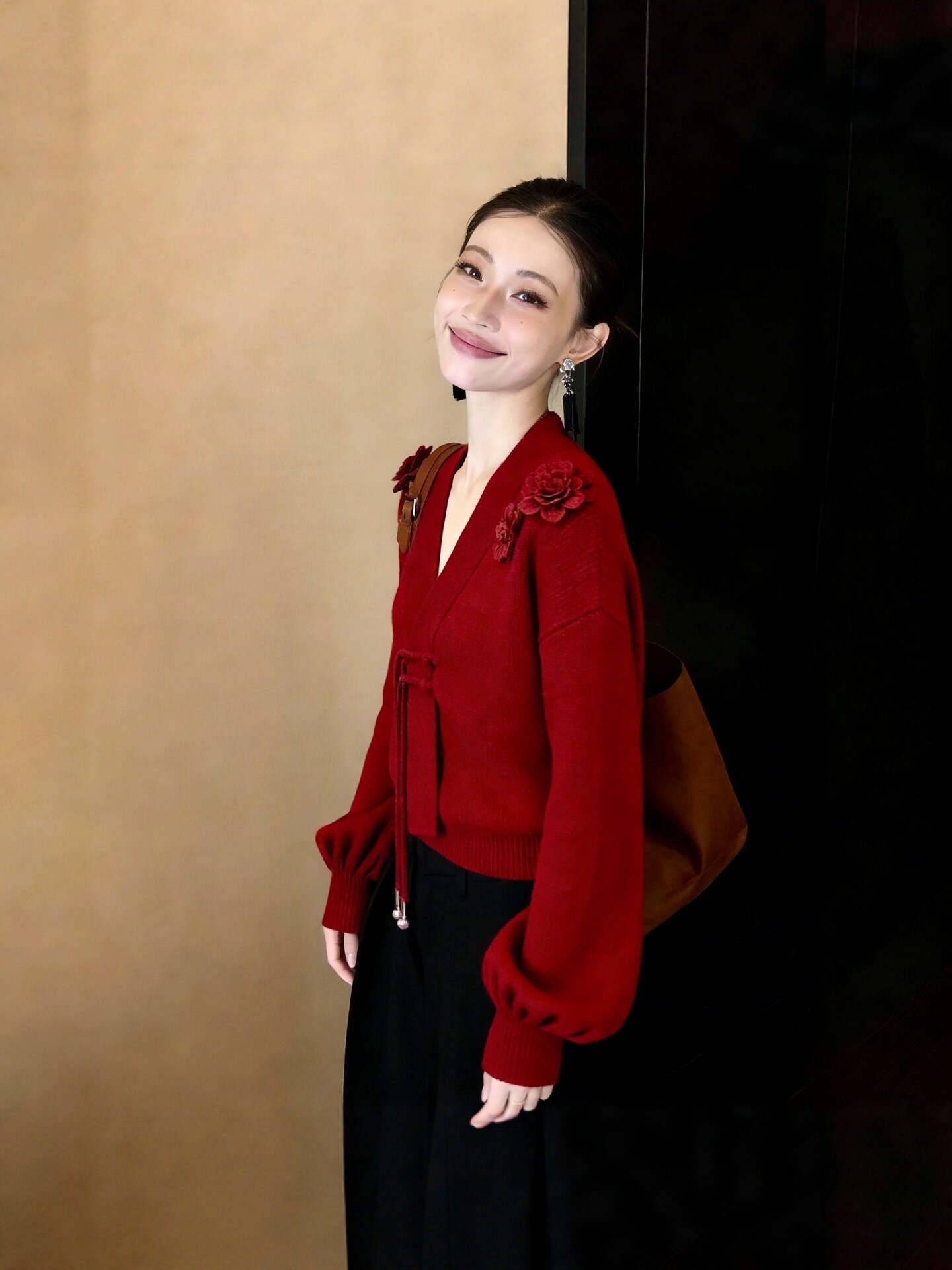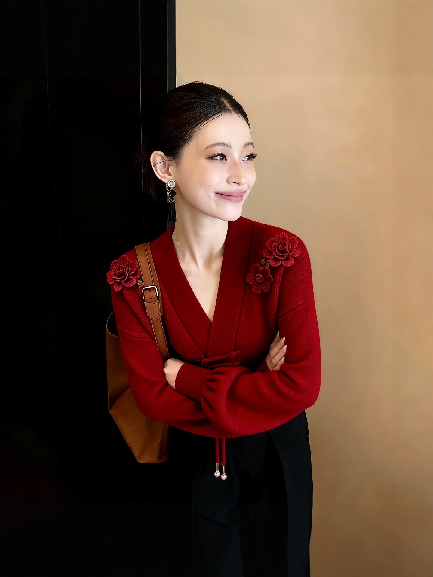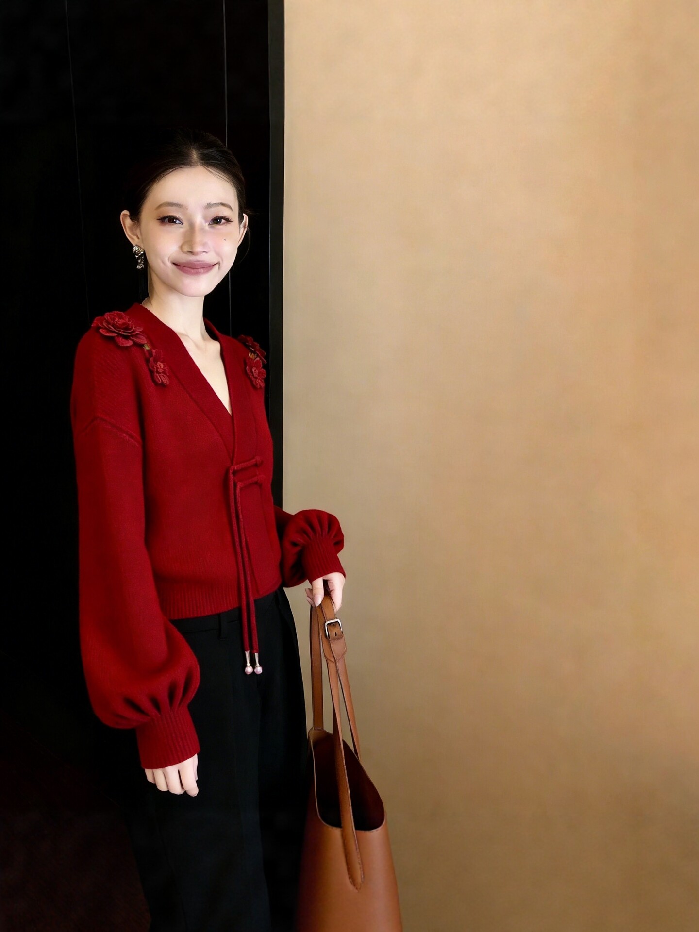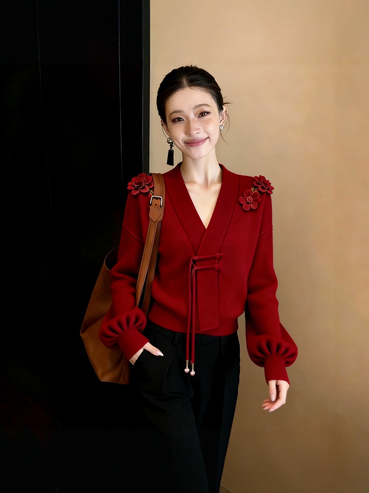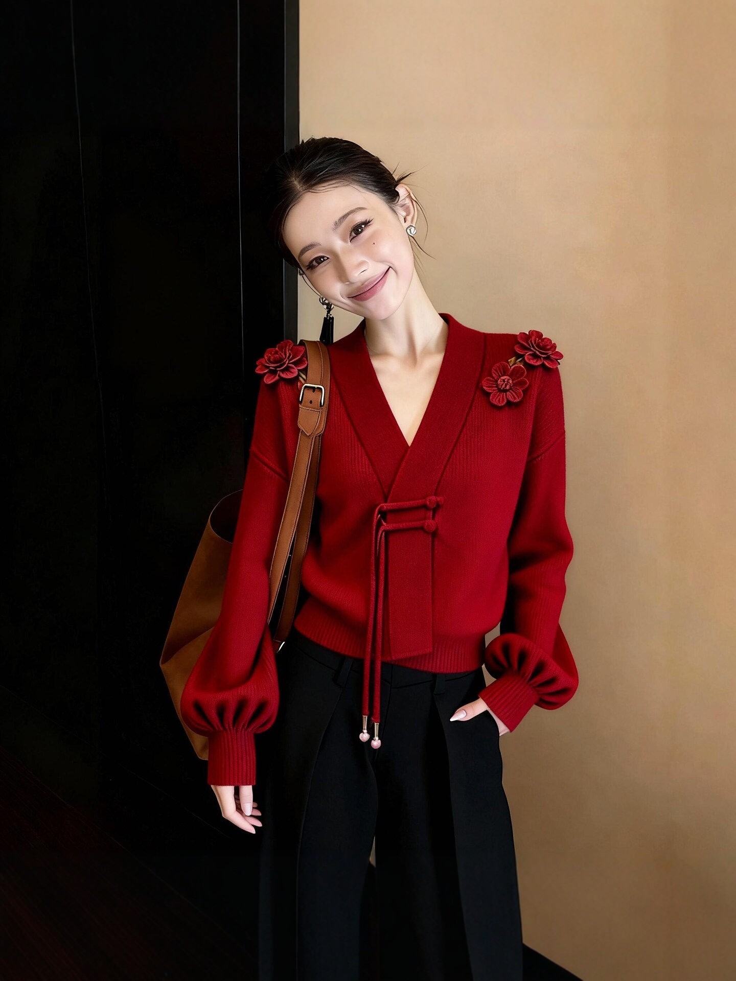 法式轻熟风高级感V领针织衫女2026早秋新款立体花朵设计减龄上衣
