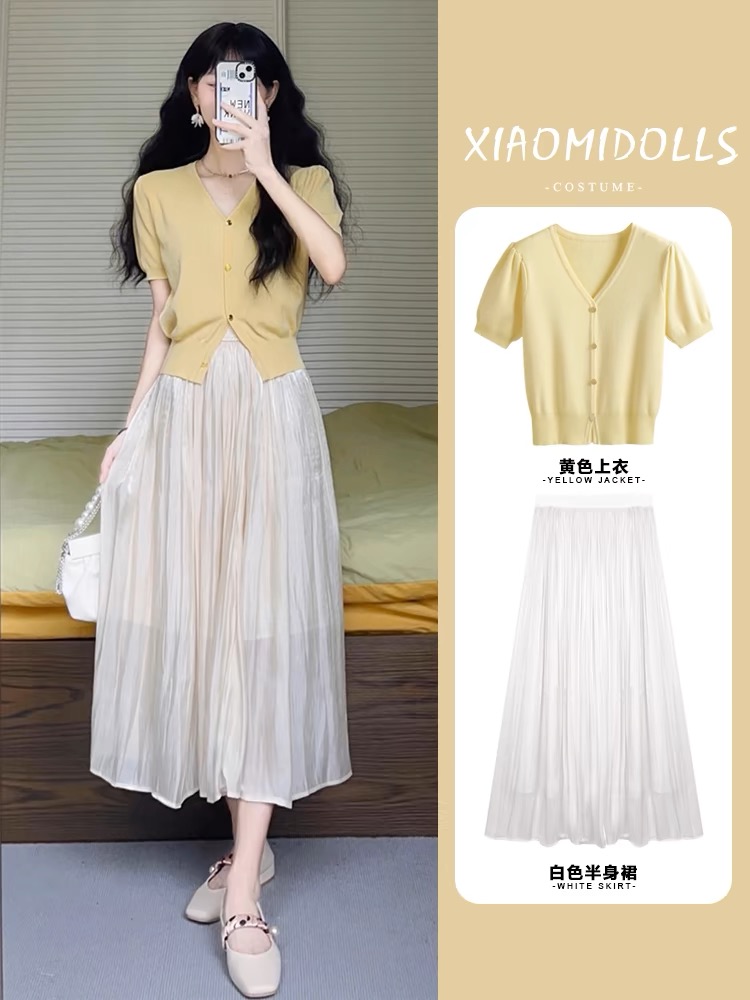 夏装搭配一整套茶系穿搭别致绝美小香风高级感连衣裙子套装女
