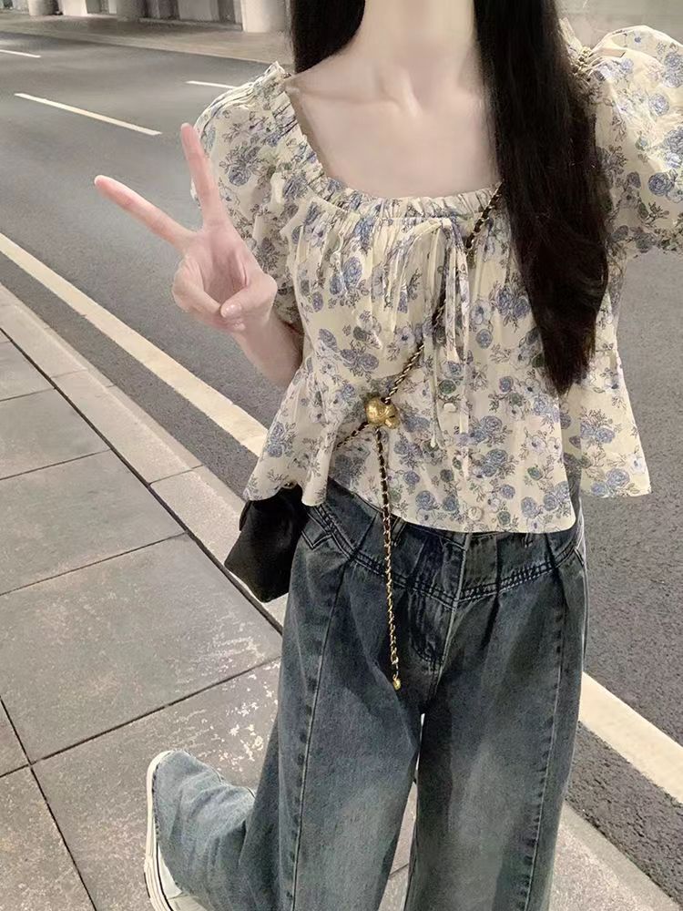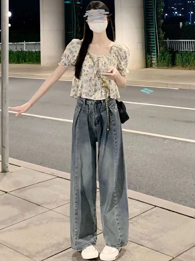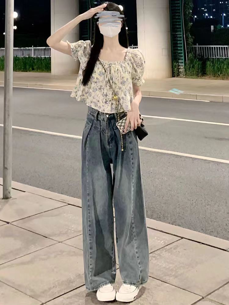 夏季新款盐系穿搭轻熟气质高级感甜姐风显瘦质感上衣阔腿裤两件套
