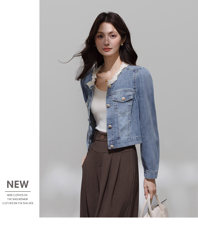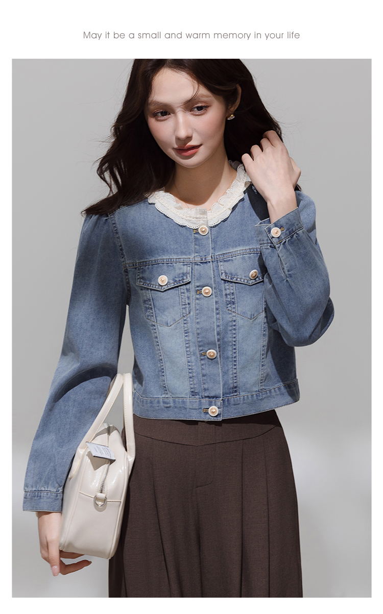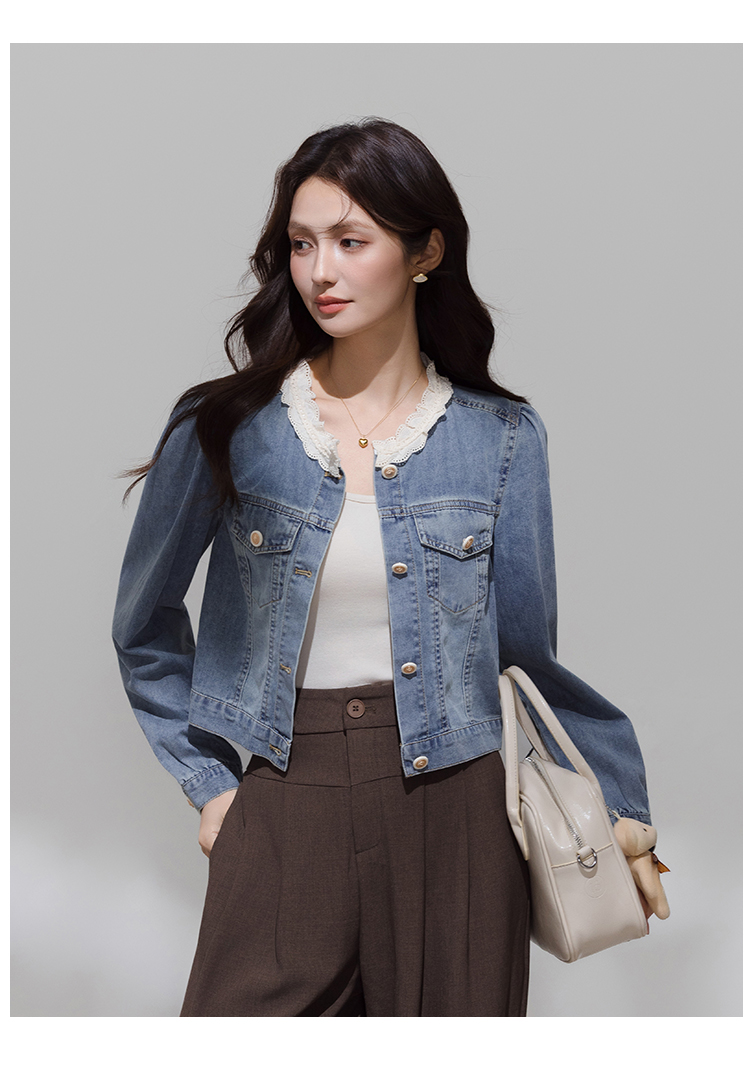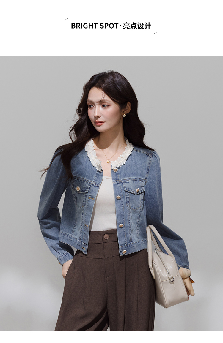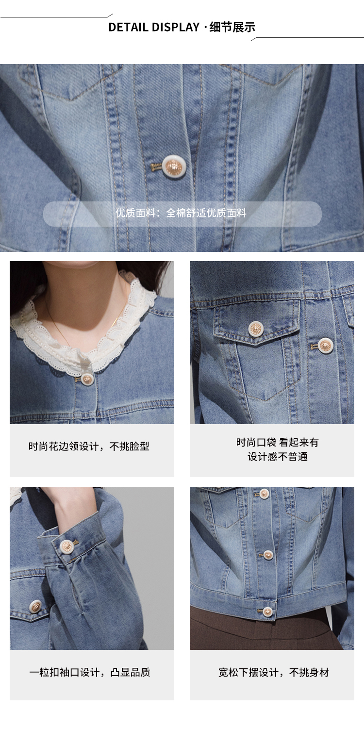 实拍 韩系蕾丝花边拼接牛仔外套女秋季薄款甜美减龄休闲开衫上衣