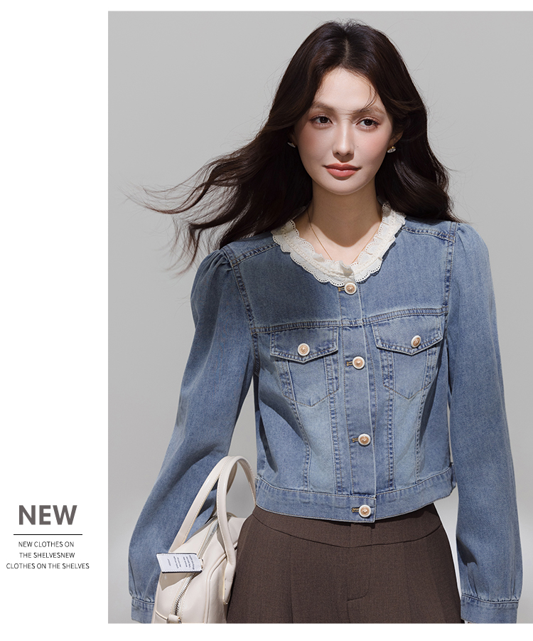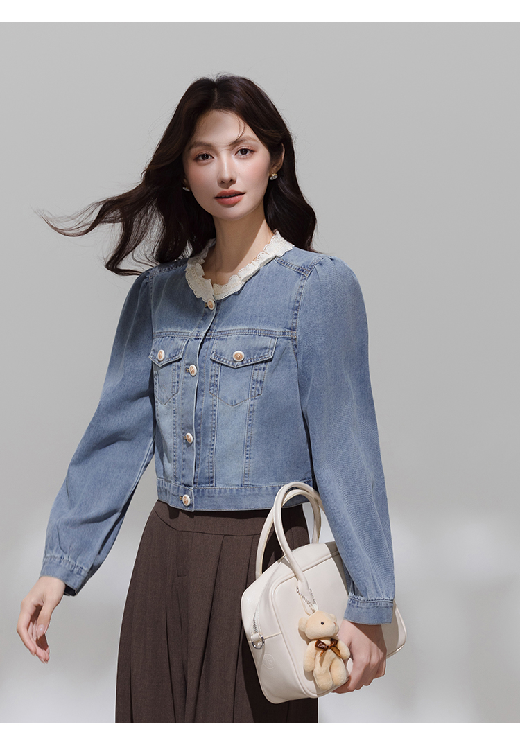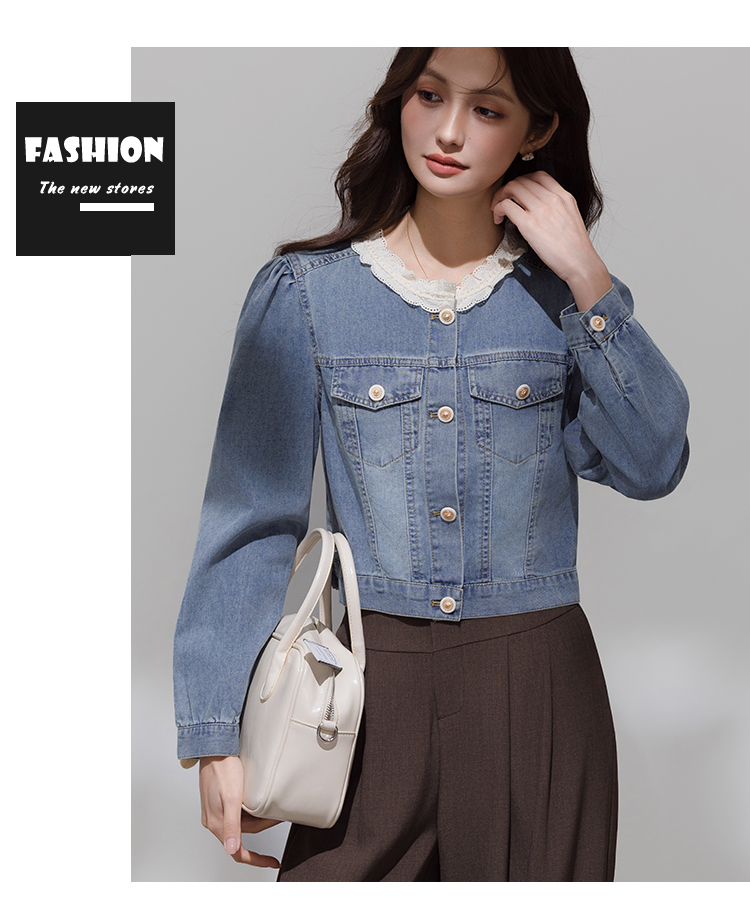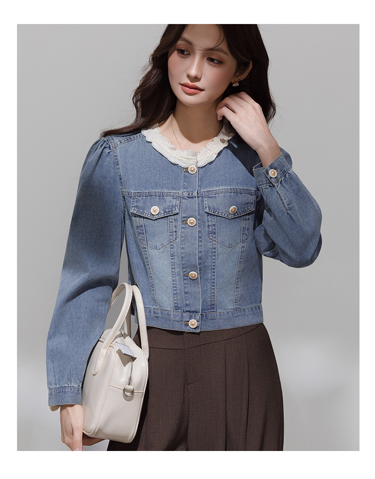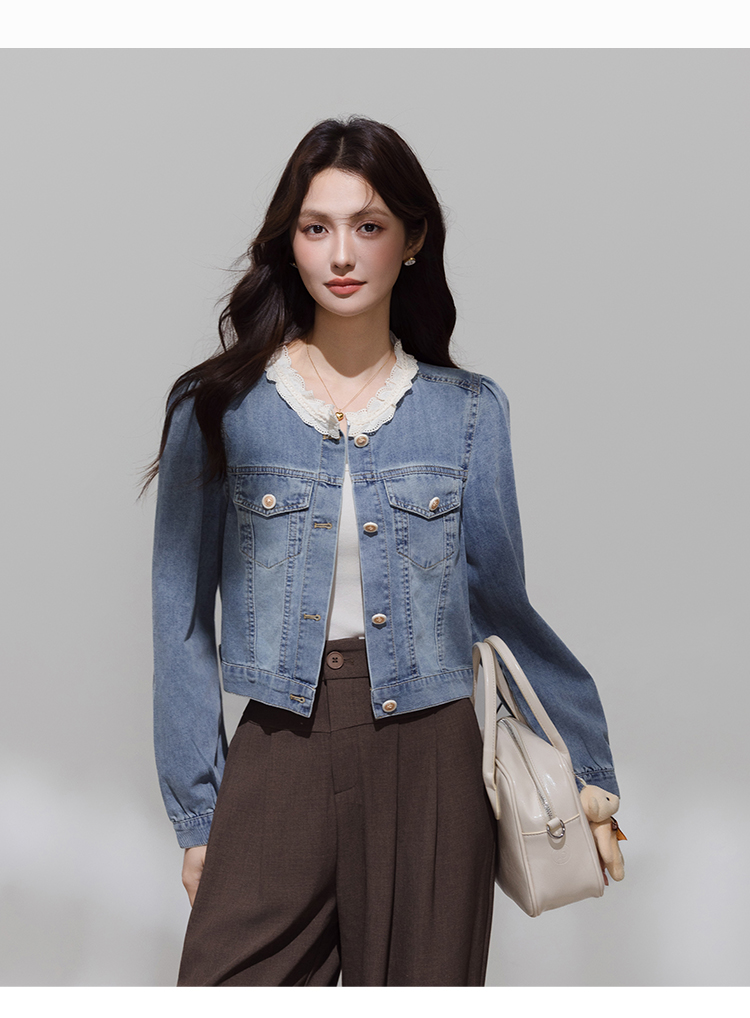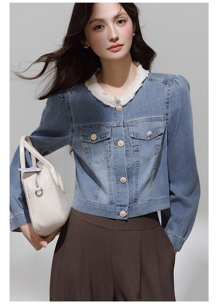 实拍 韩系蕾丝花边拼接牛仔外套女秋季薄款甜美减龄休闲开衫上衣