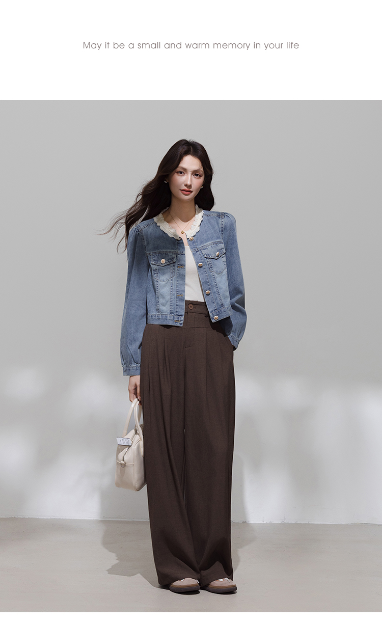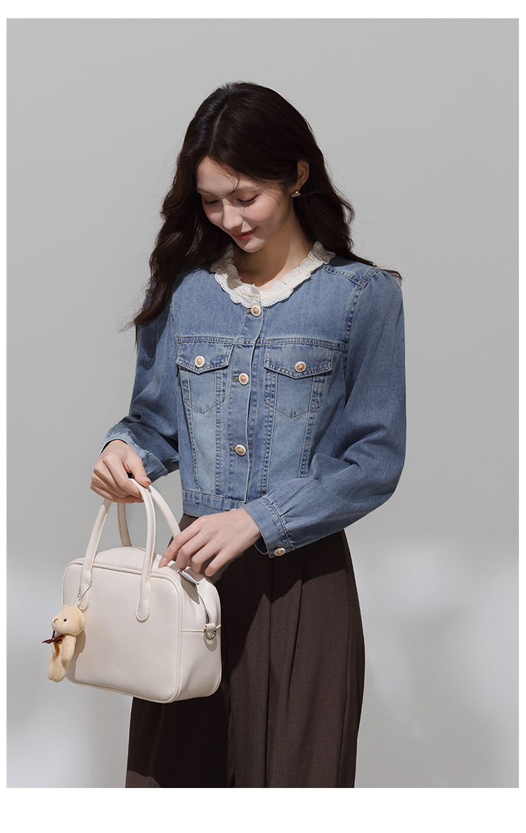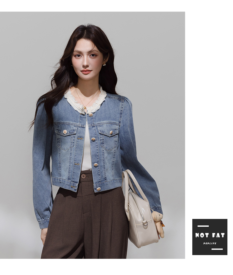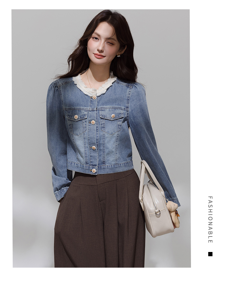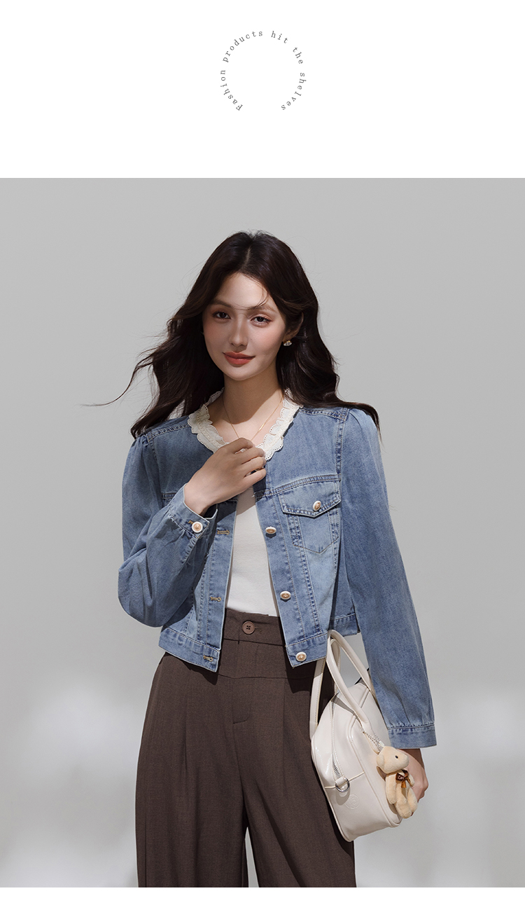 实拍 韩系蕾丝花边拼接牛仔外套女秋季薄款甜美减龄休闲开衫上衣