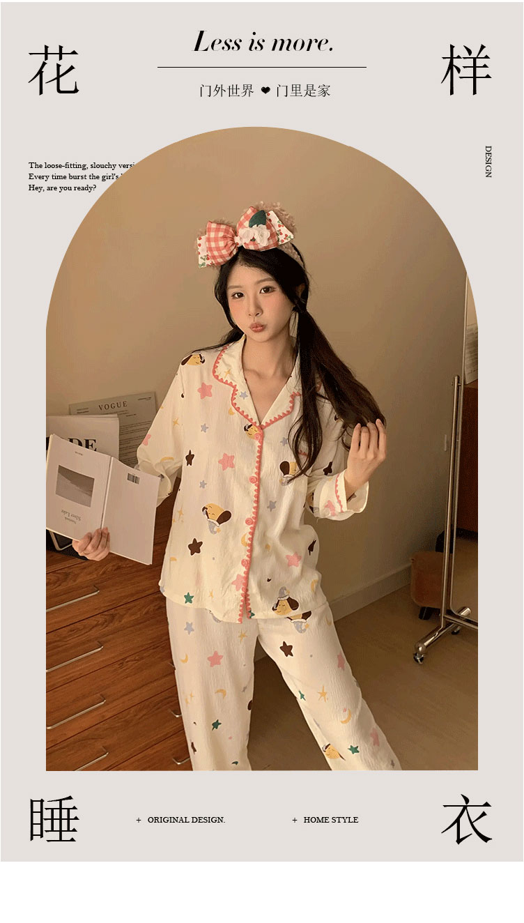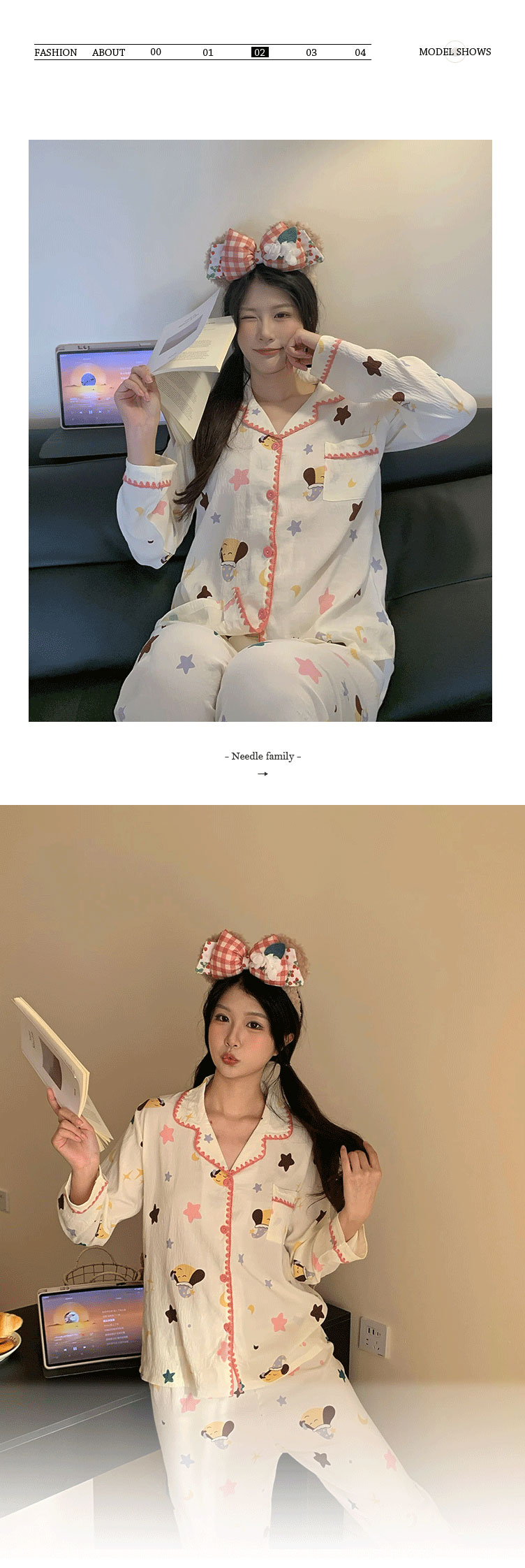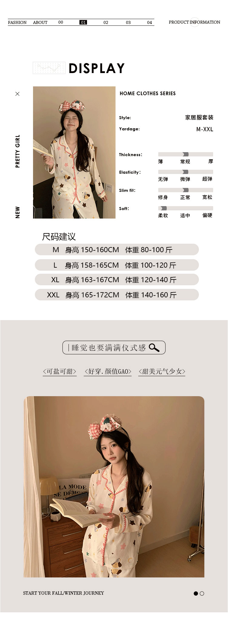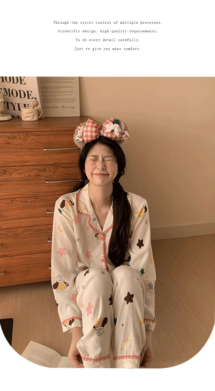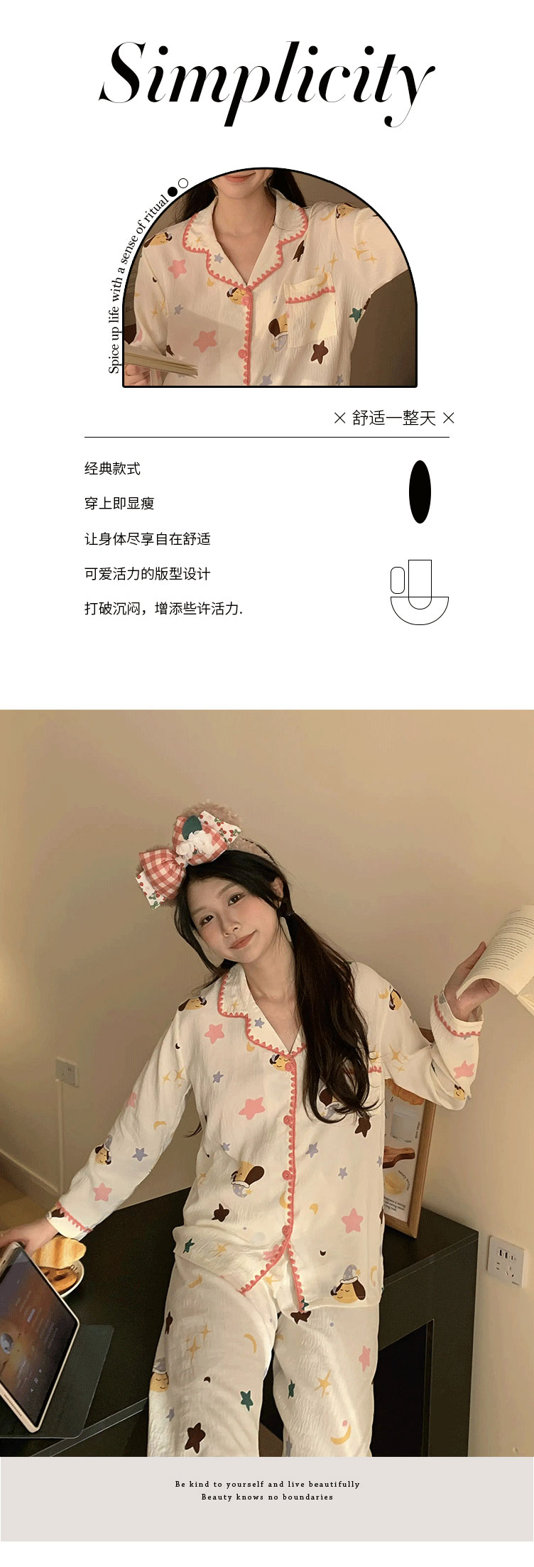 卡馨 春夏季长袖长裤云朵棉薄款睡衣女开衫返利卡通月牙重工家居