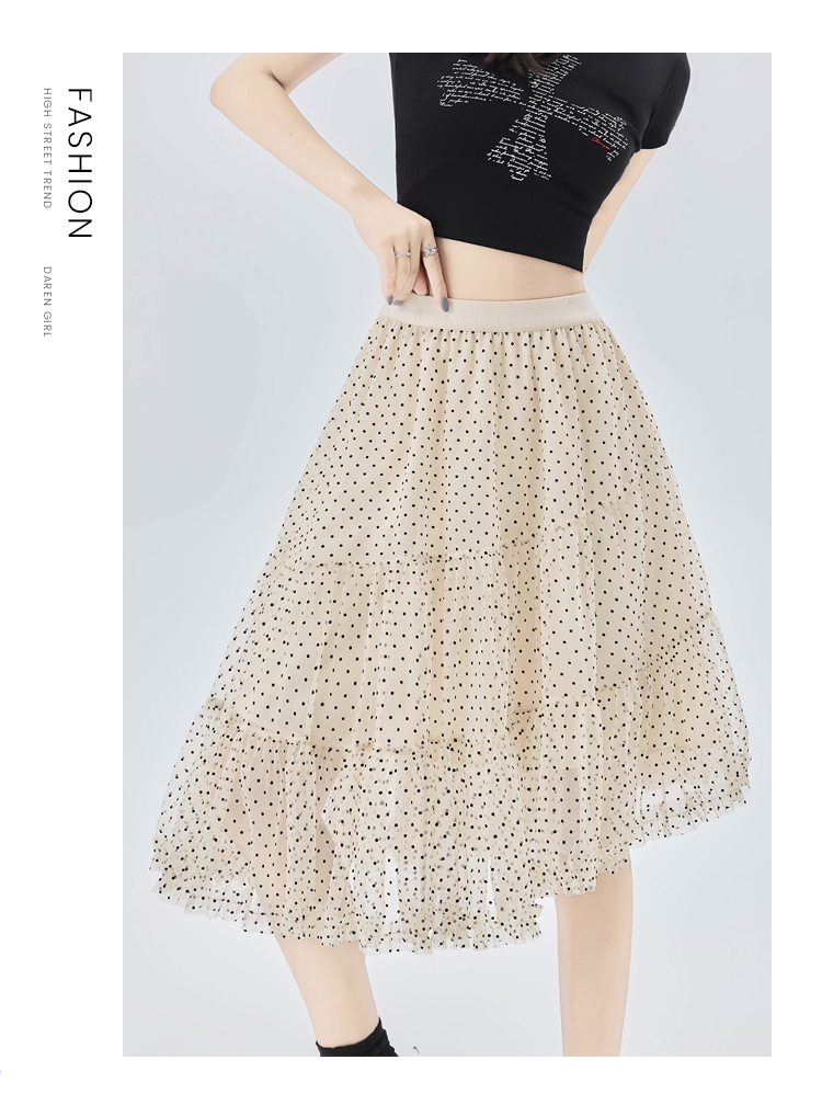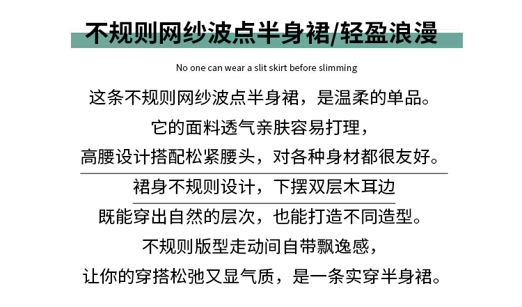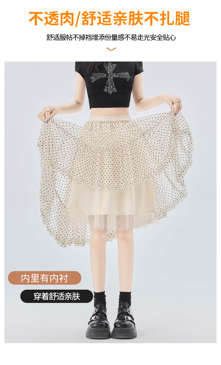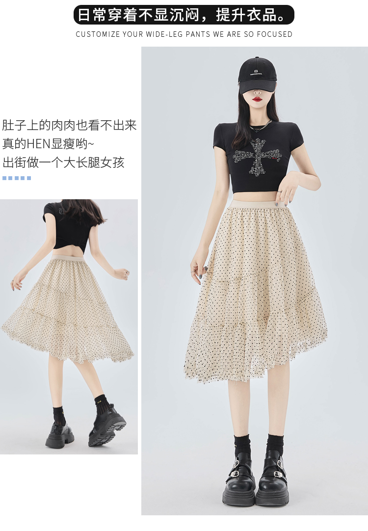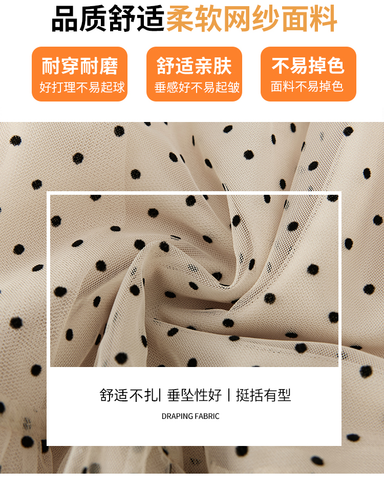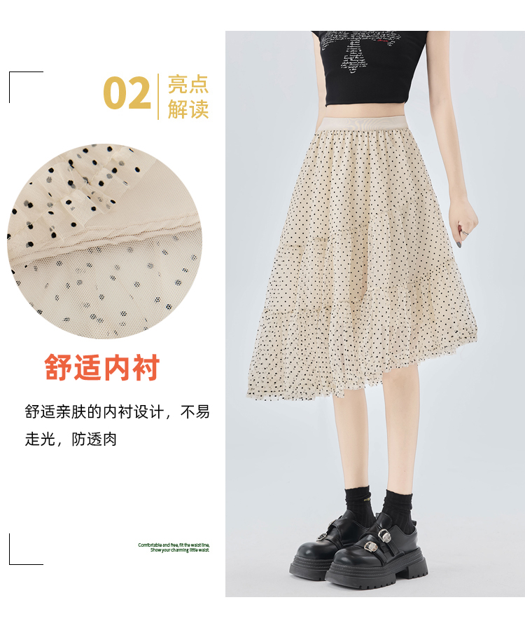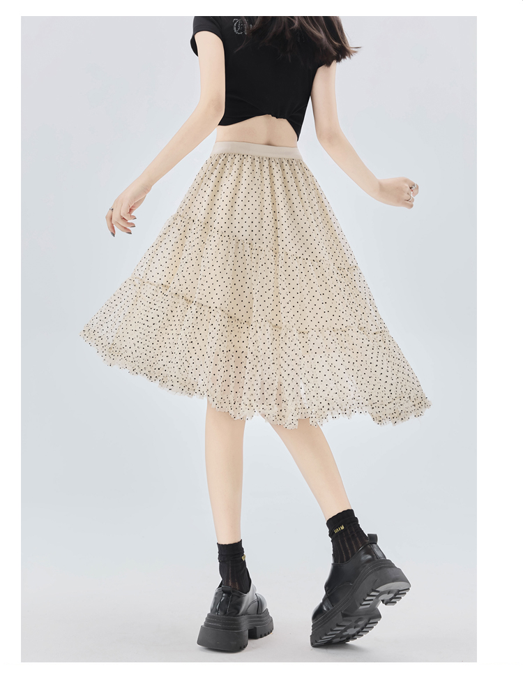 实拍 不规则网纱波点百褶半身裙女夏季高腰显瘦木耳边a字中长裙